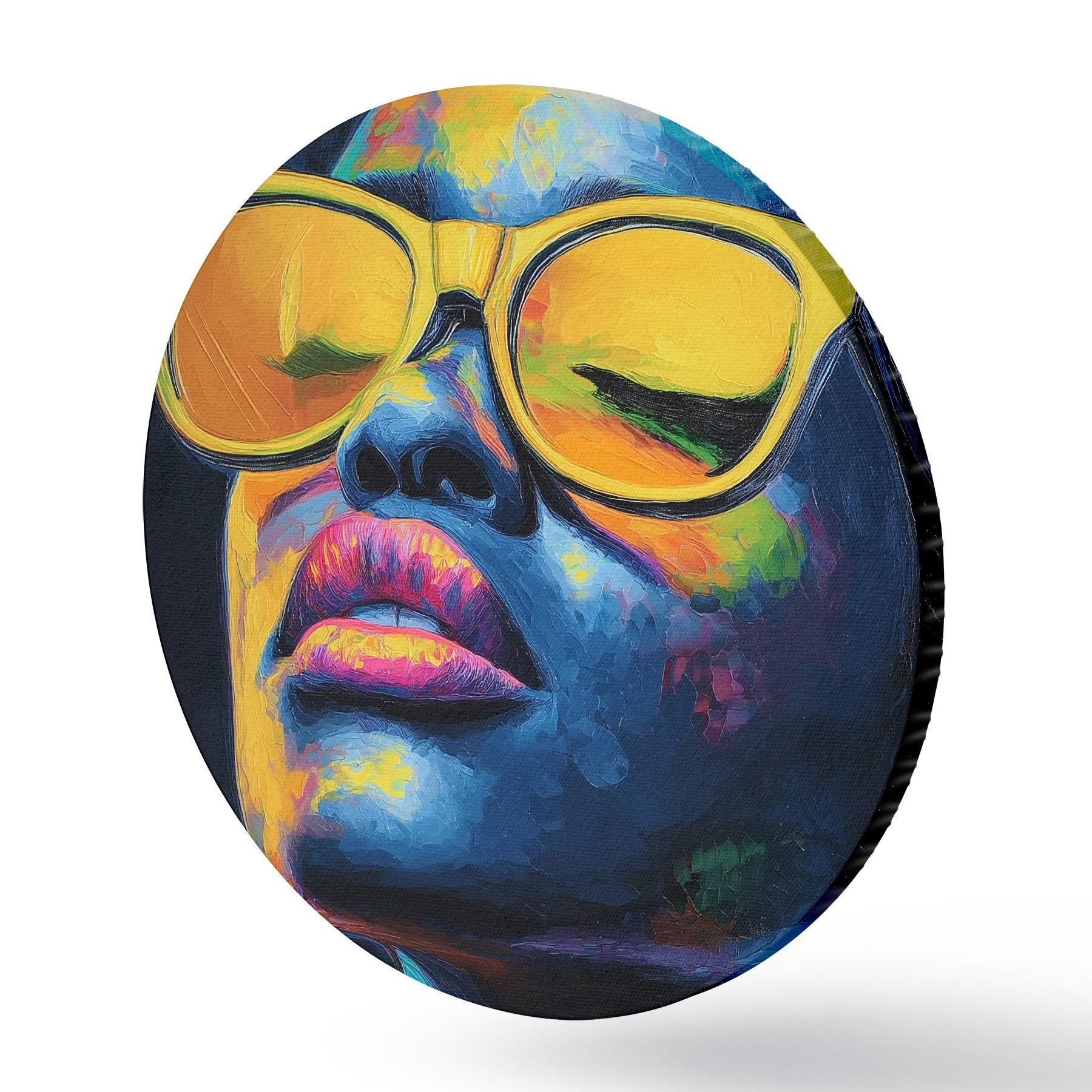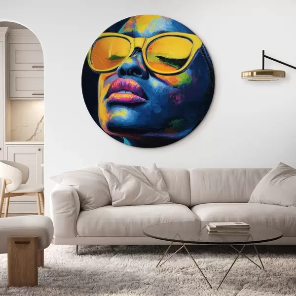 Ronde schilderijen Meisje met gele bril r44621
