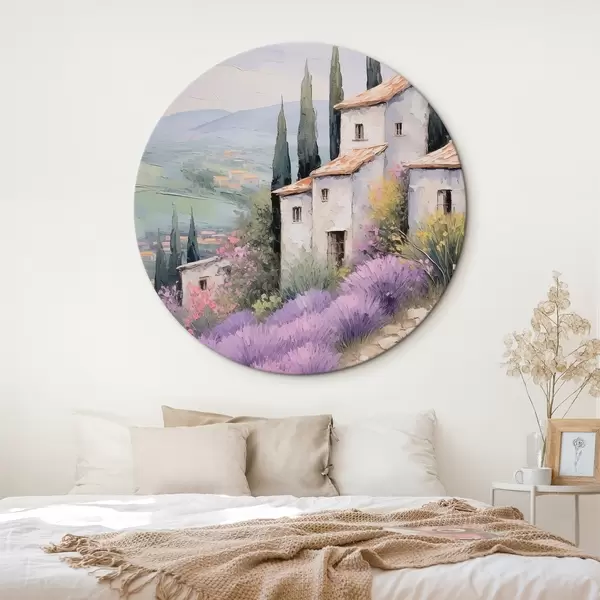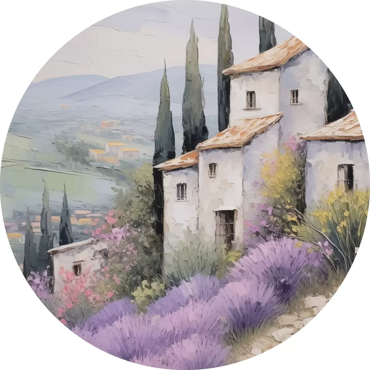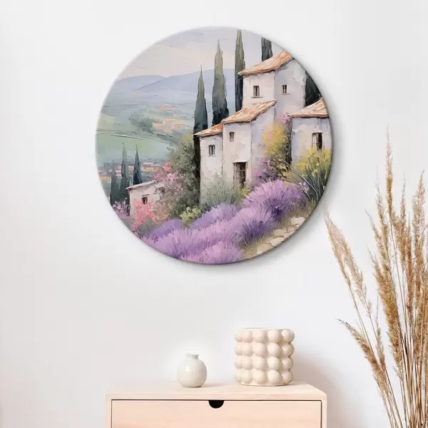 Ronde schilderijen Huis bij het lavendelveld r44641