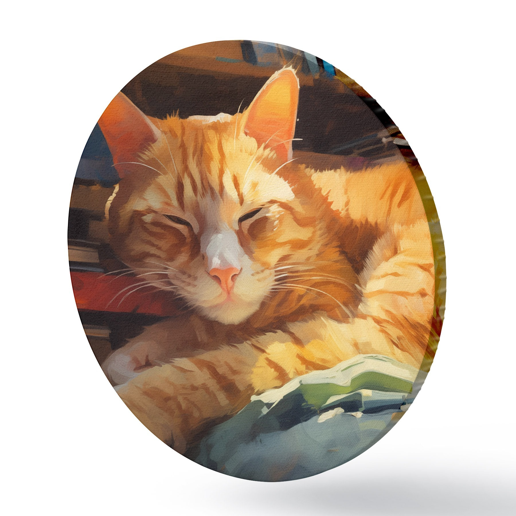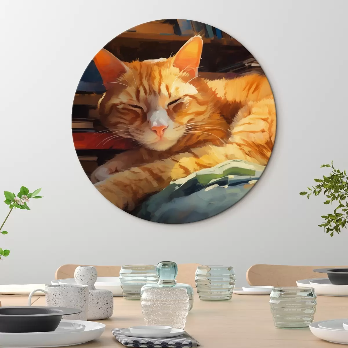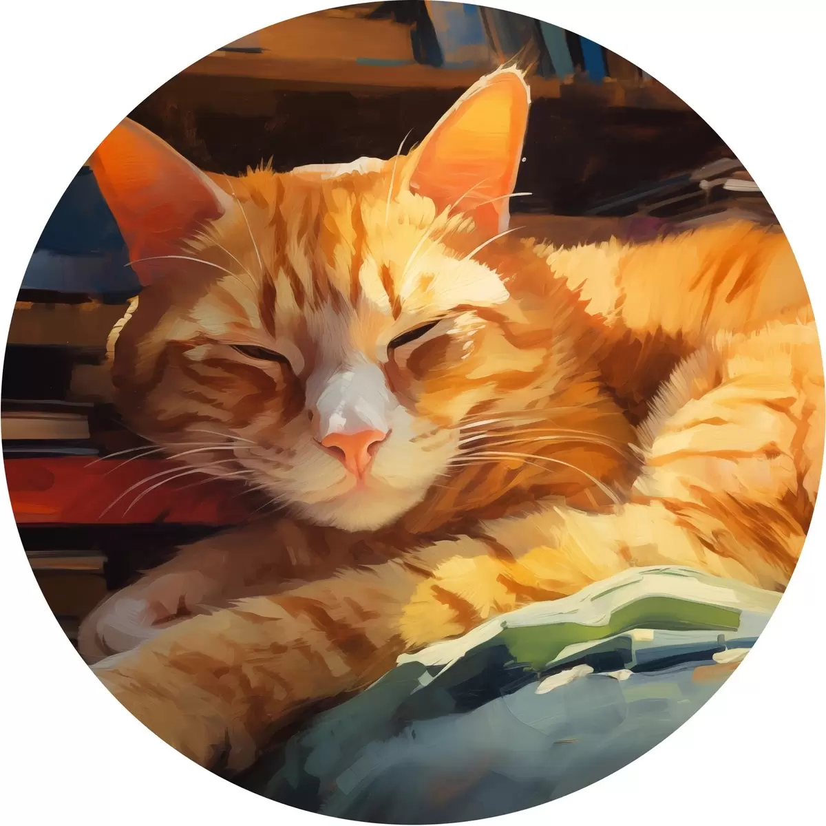 Ronde schilderijen Kat en boeken r44656