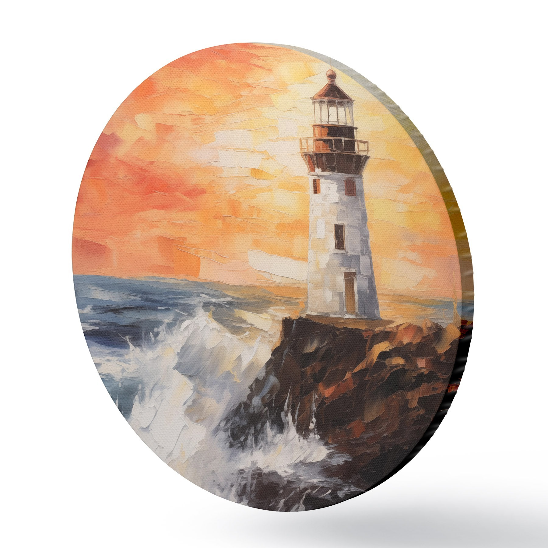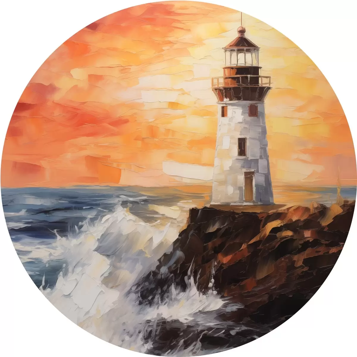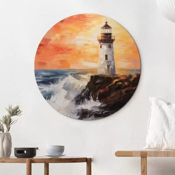 Ronde schilderijen Vuurtoren bij zonsondergang r44674