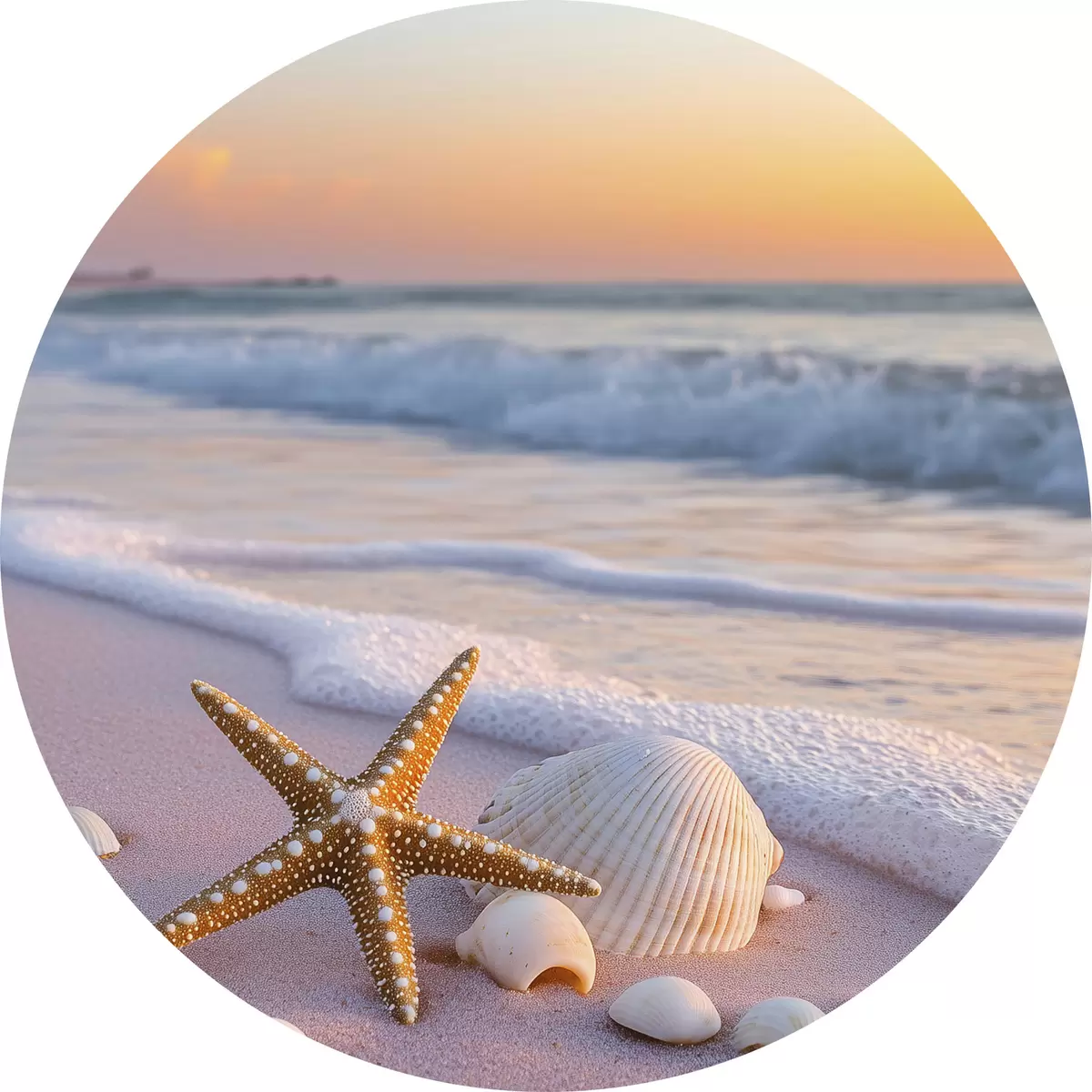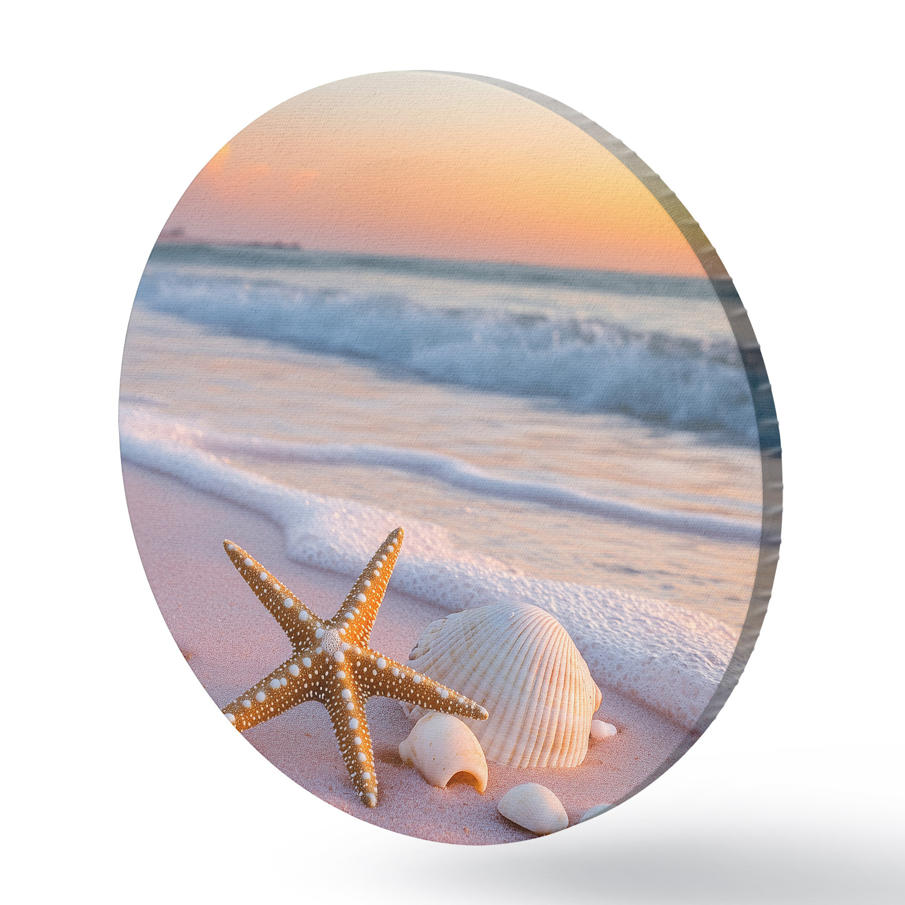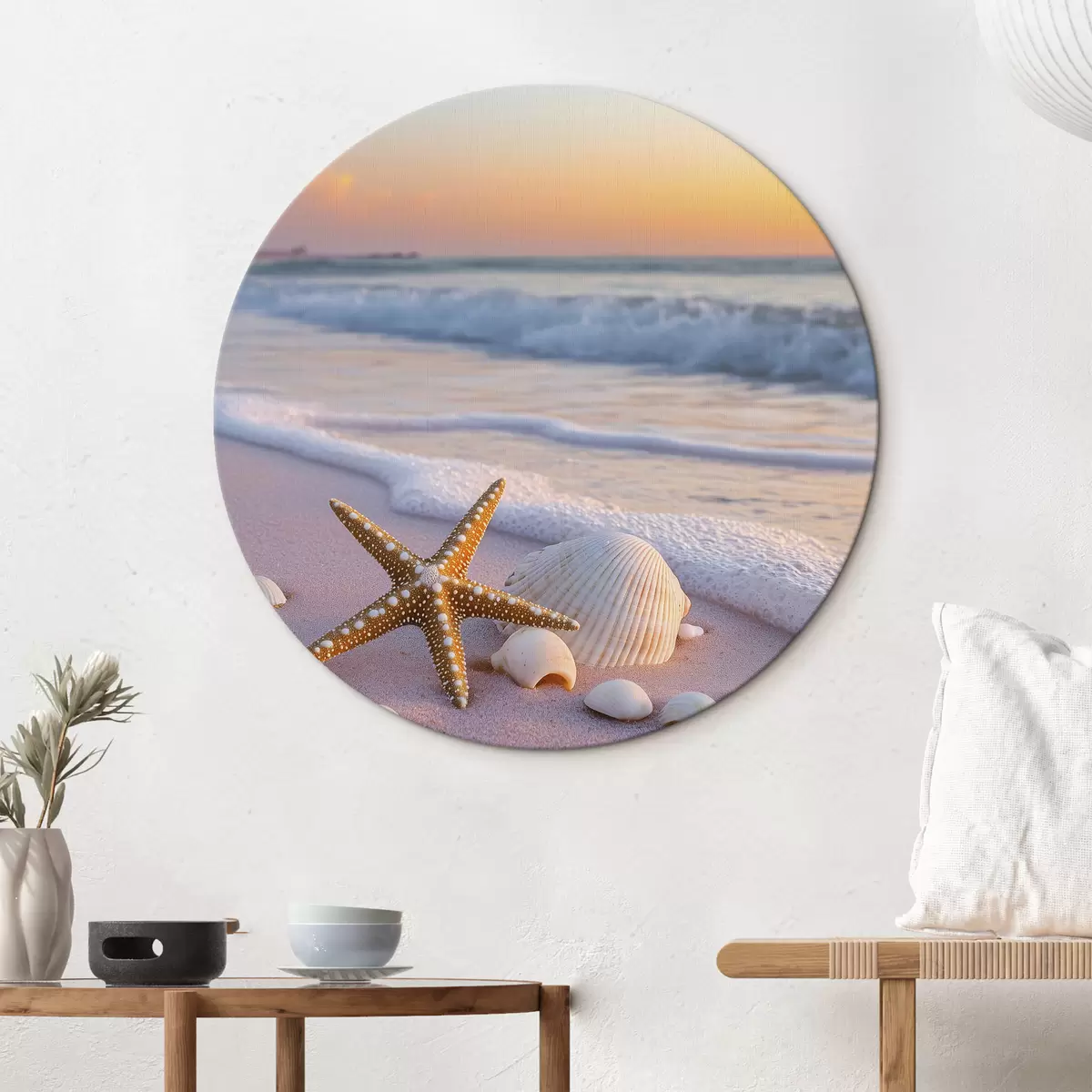 Ronde schilderijen Zeekust met zeesterren, schelpen en golven r44714