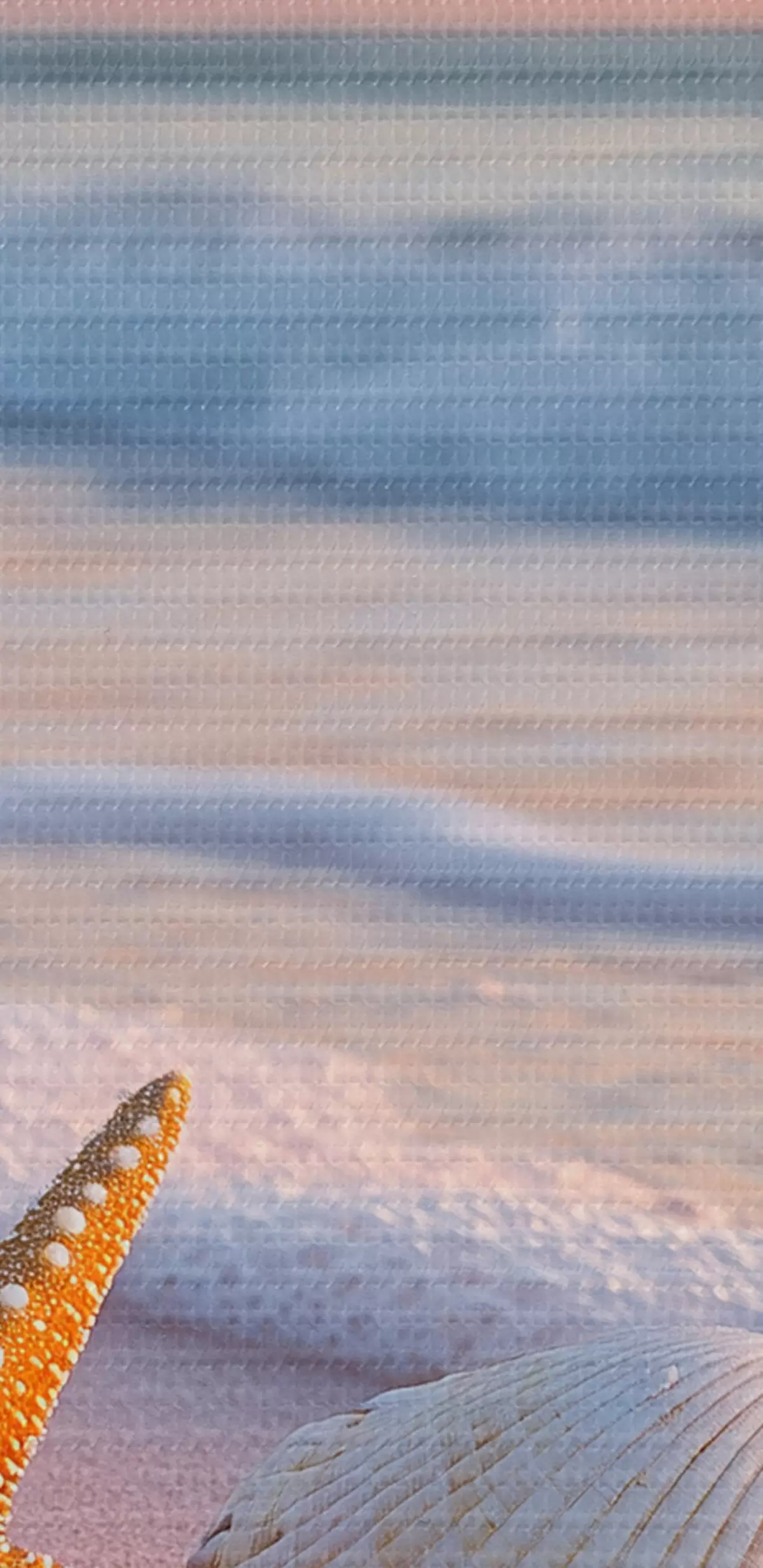 Afbeelding Zeekust met zeesterren, schelpen en golven Nr r44714