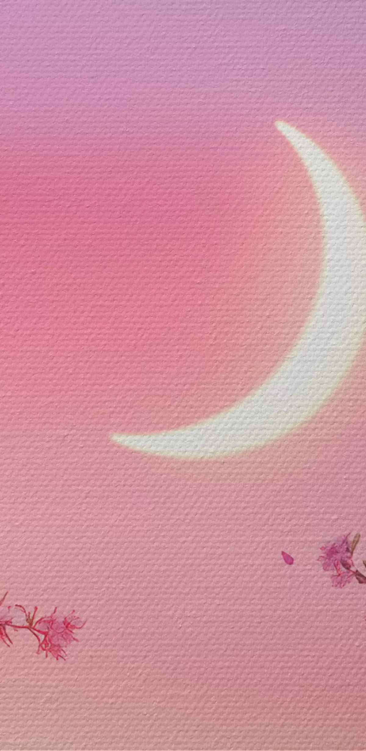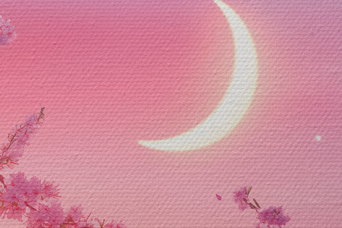 Afbeelding Kersenbloesem, roze lucht met stralende maan, realisme Nr r44715