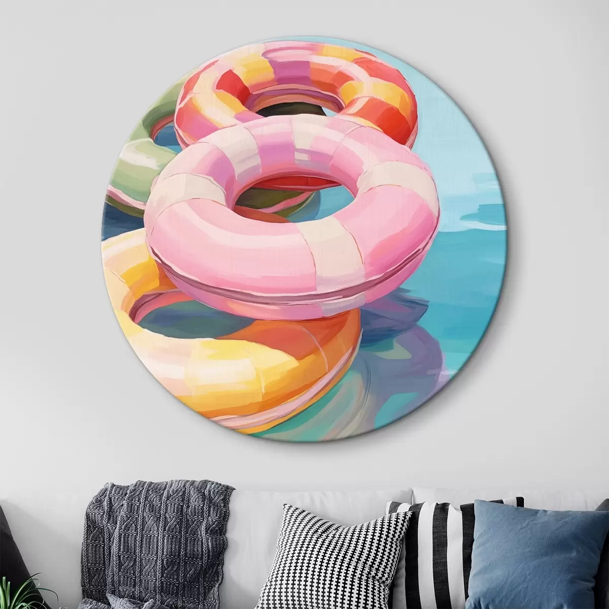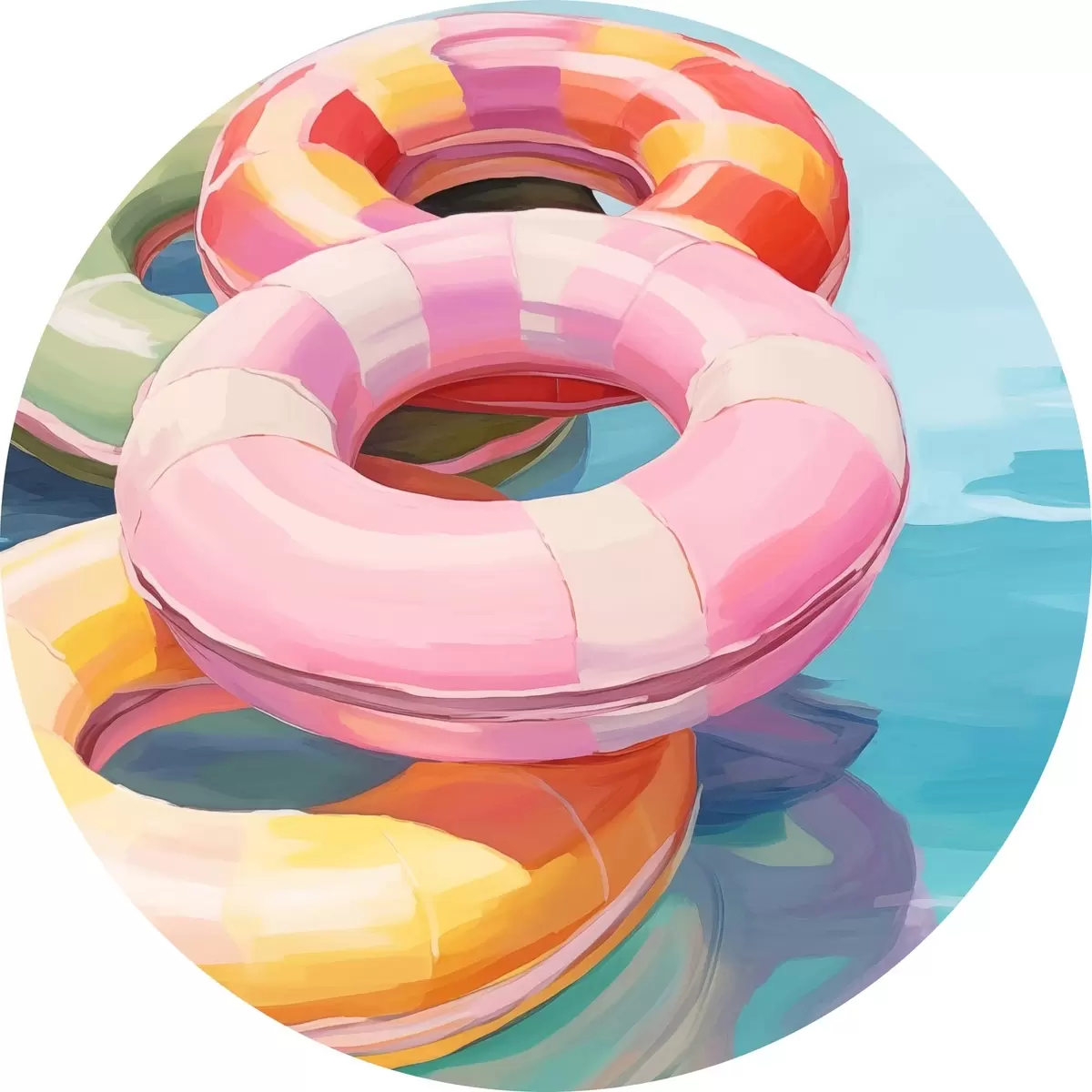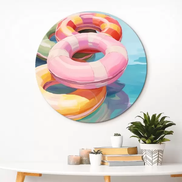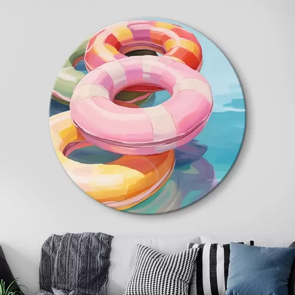 Ronde schilderijen Opblaasbare cirkels in het water r44726
