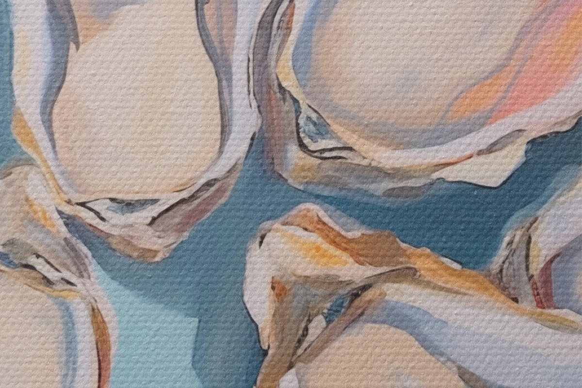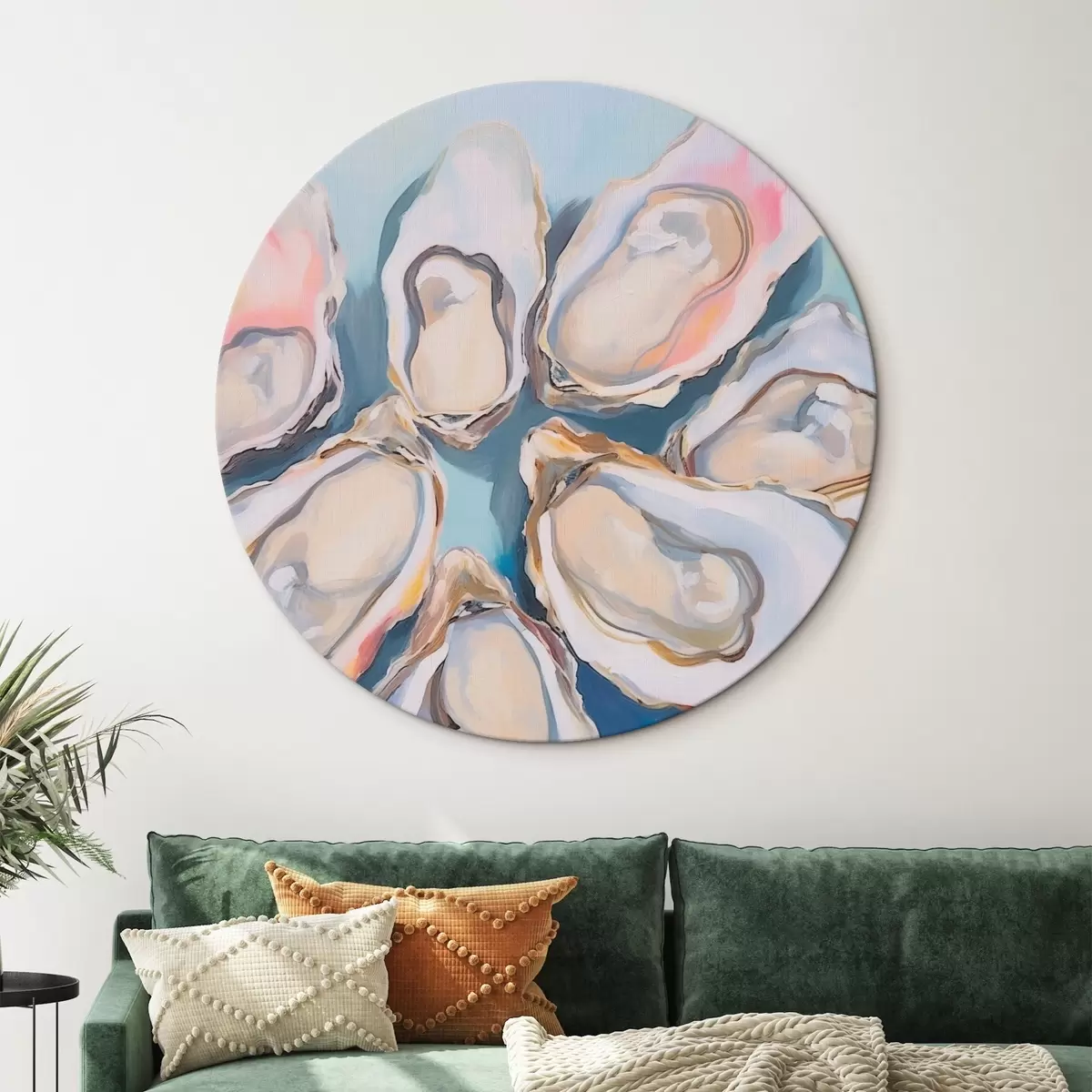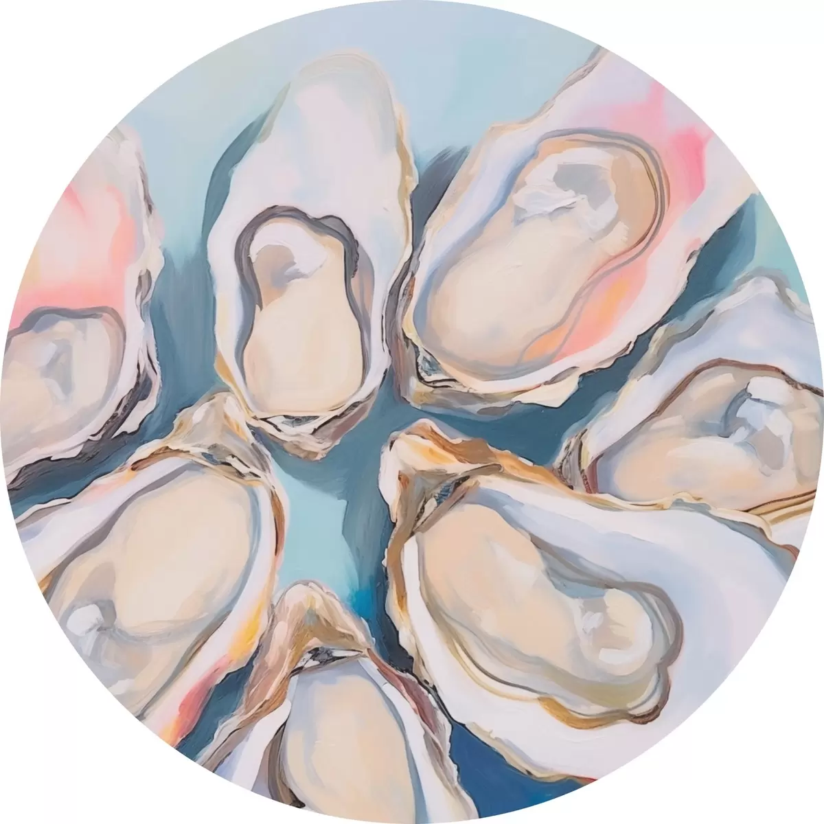 Ronde schilderijen Oesterschelpen op het strand r44734