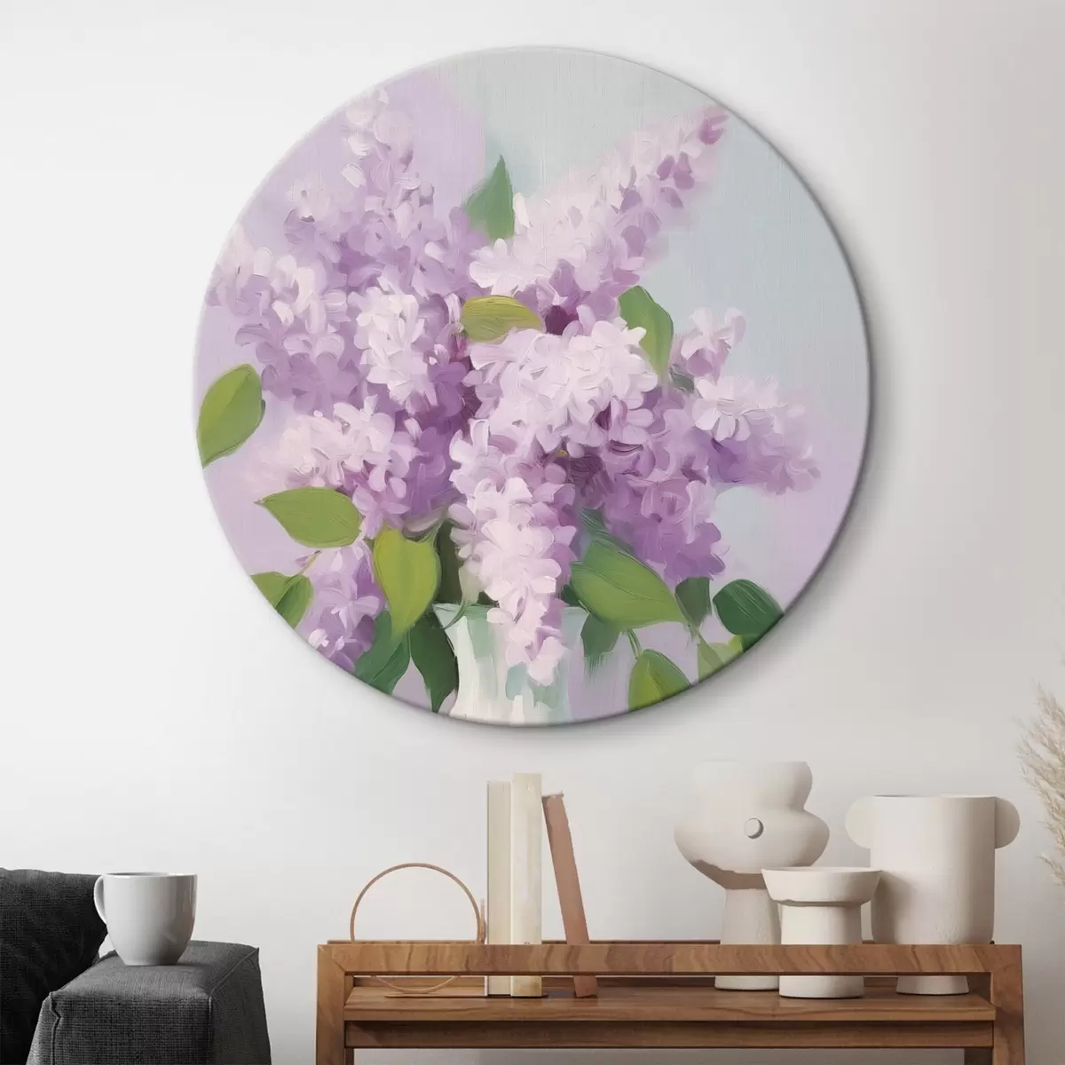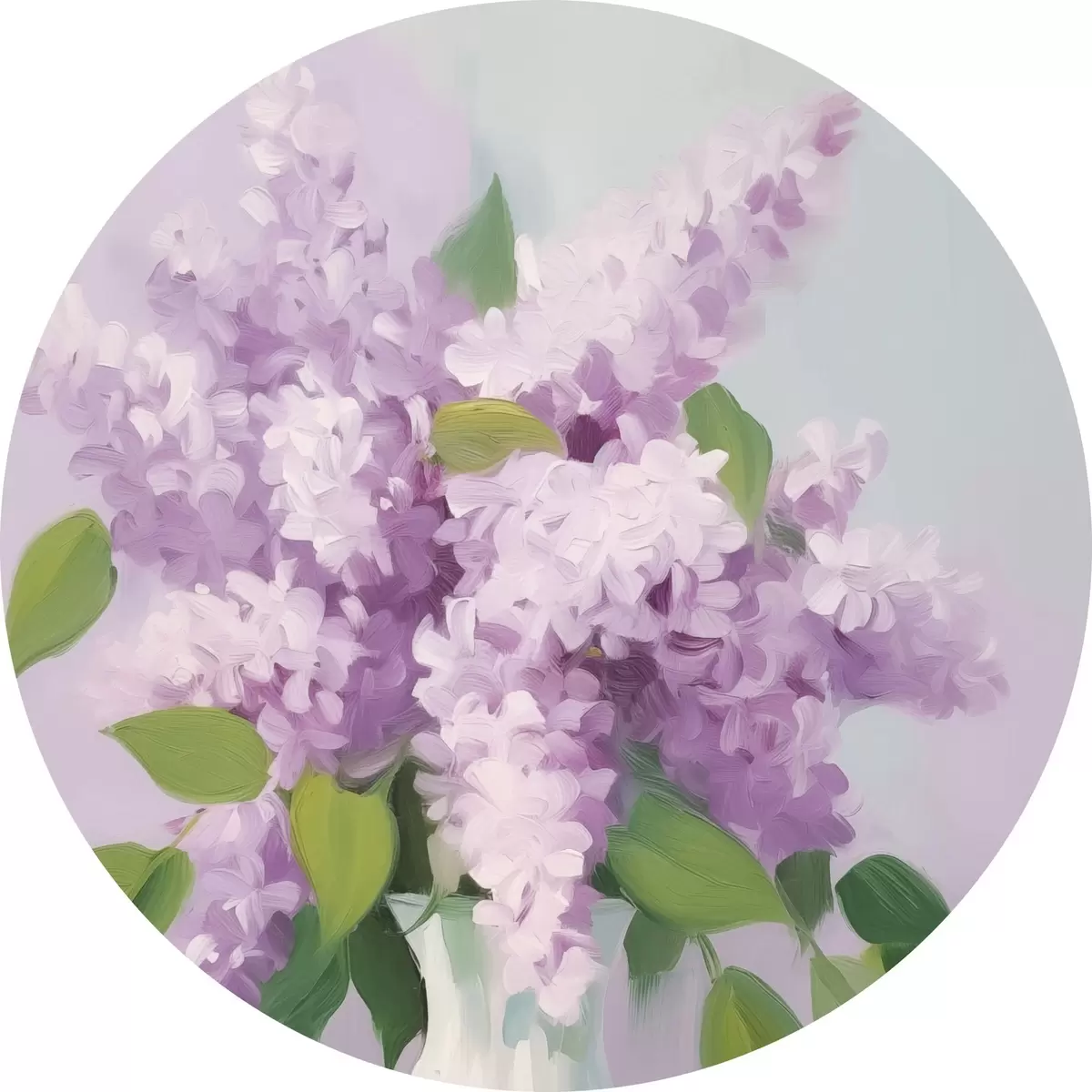 Ronde schilderijen Seringen in een witte vaas r44735