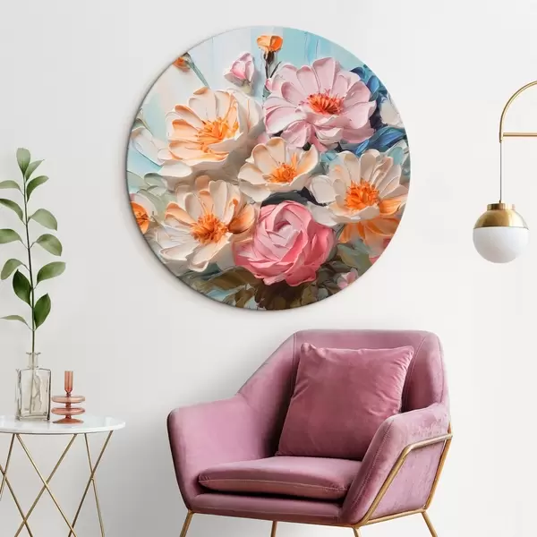 Ronde schilderijen Heldere bloemen imitatieschilderij r44765