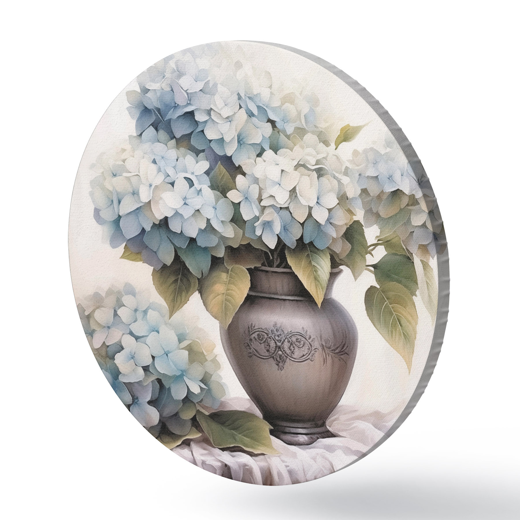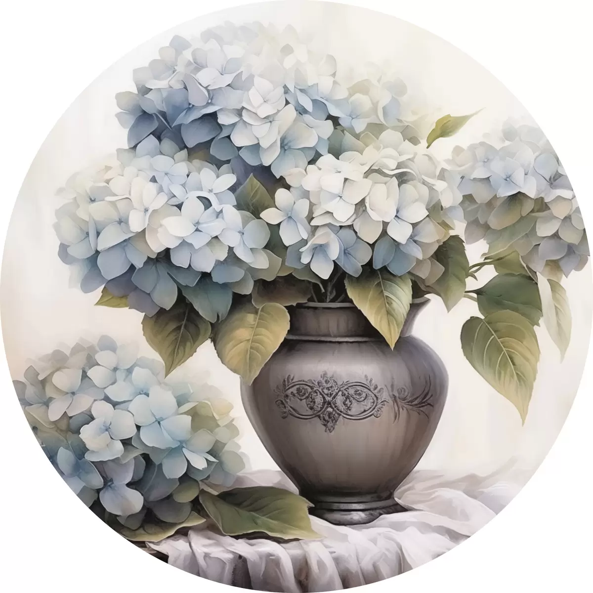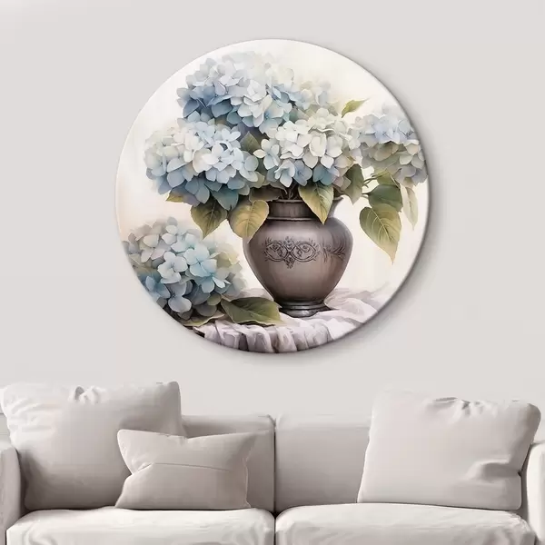 Ronde schilderijen Hortensiabloemen in een vaas r44771