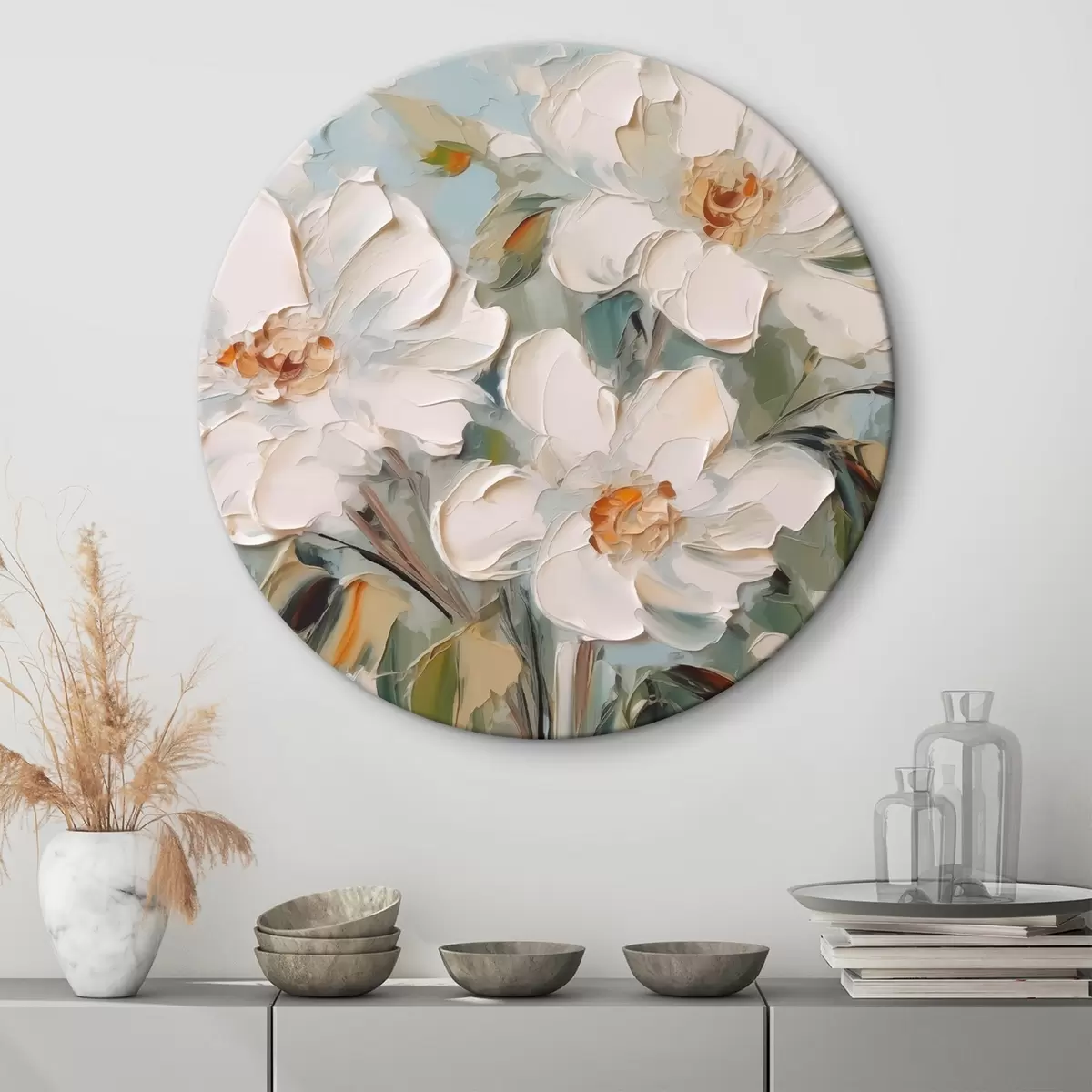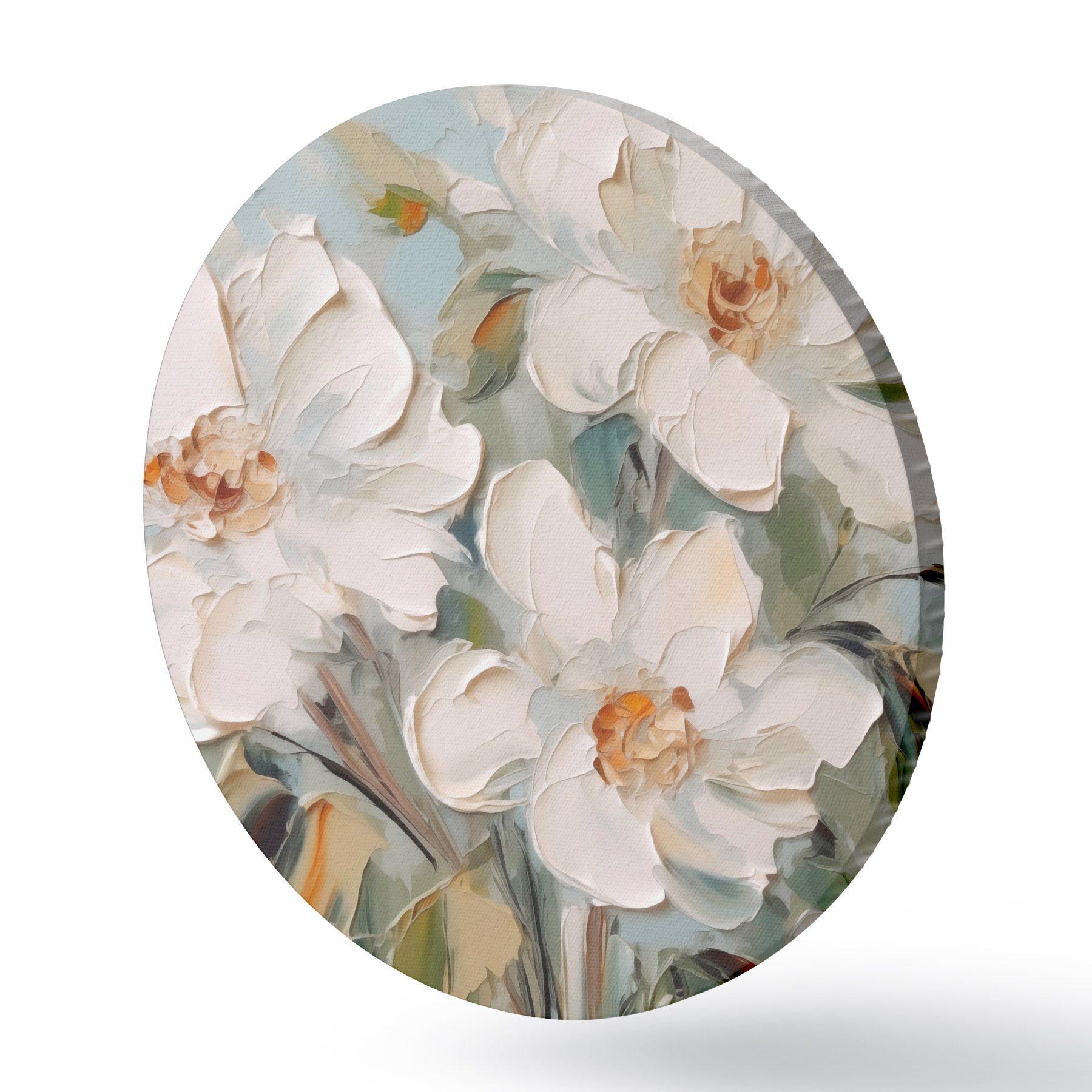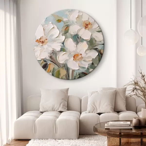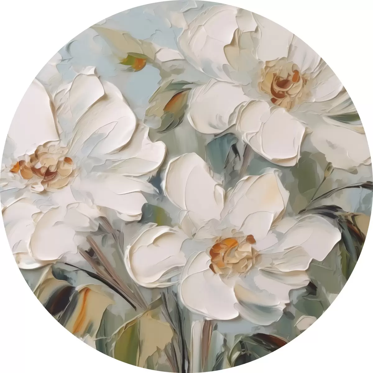 Ronde schilderijen Witte bloemen imitatieschilderij r44775