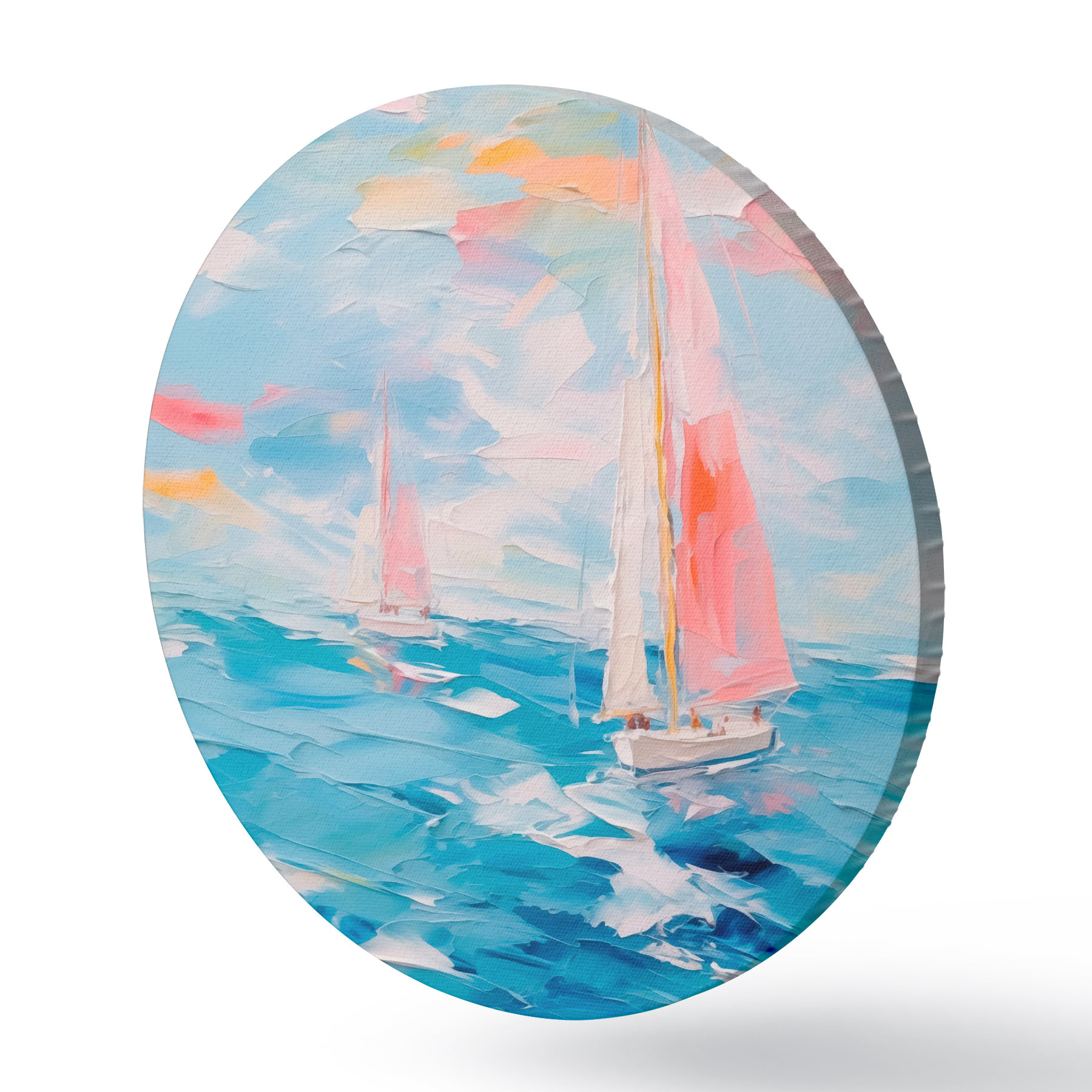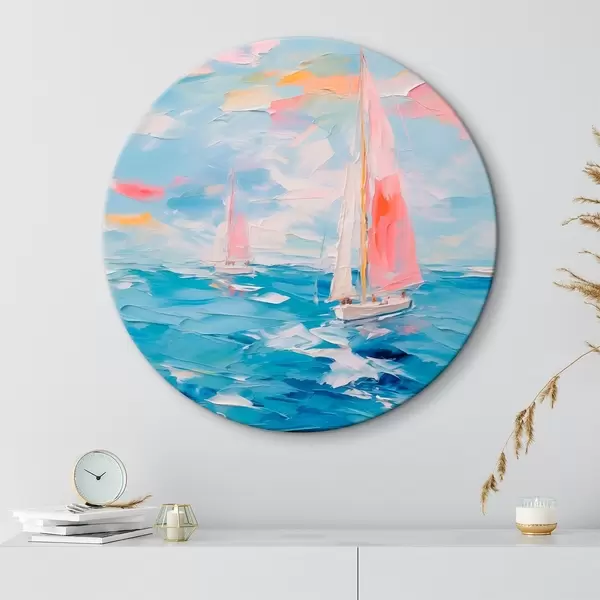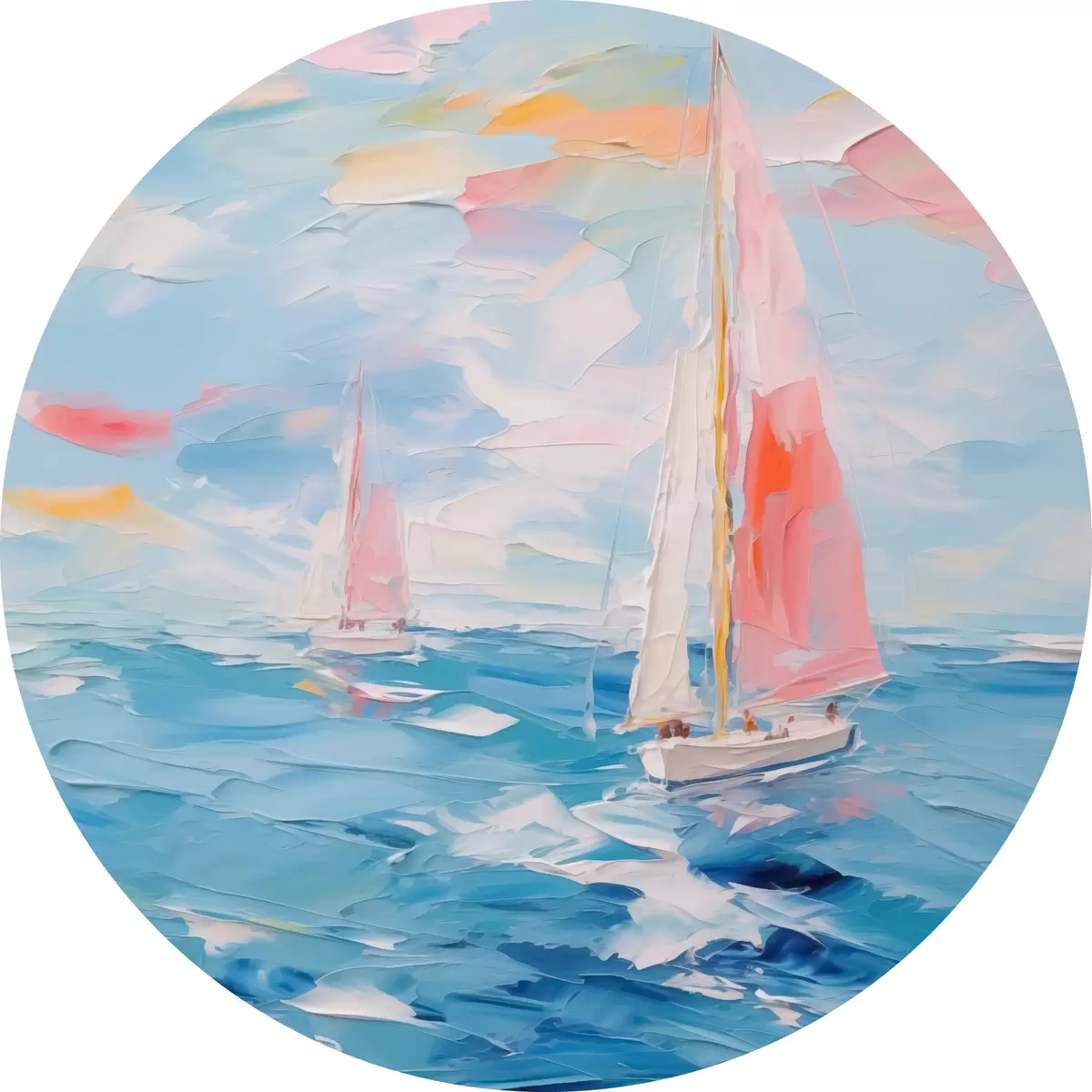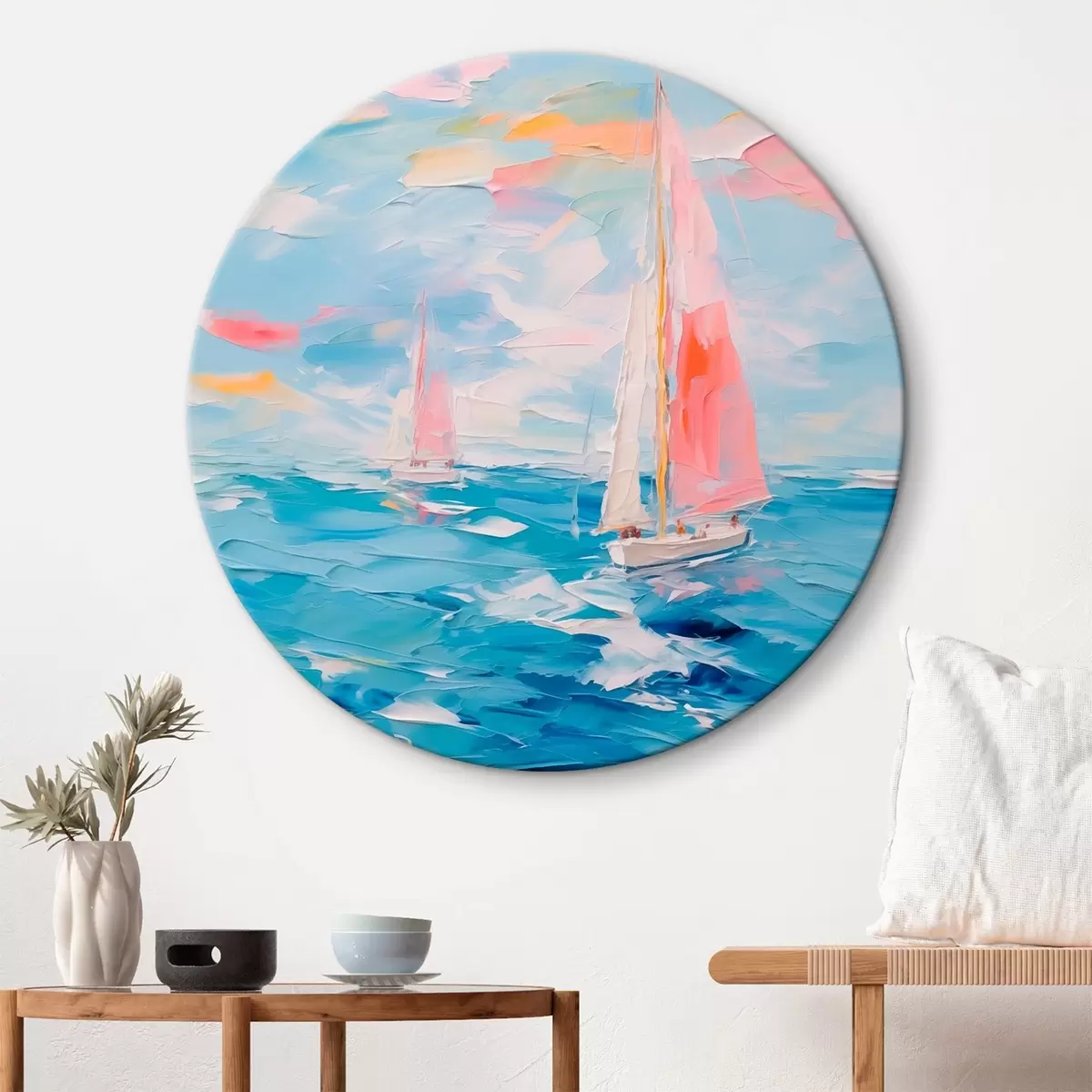Ronde schilderijen Zeilboten in de zee imitatieschilderij r44780