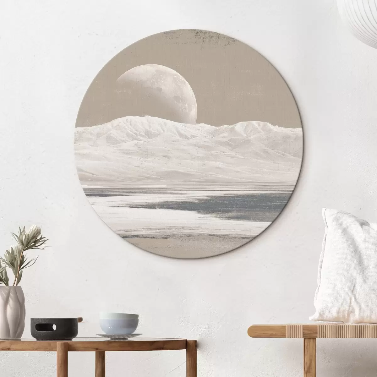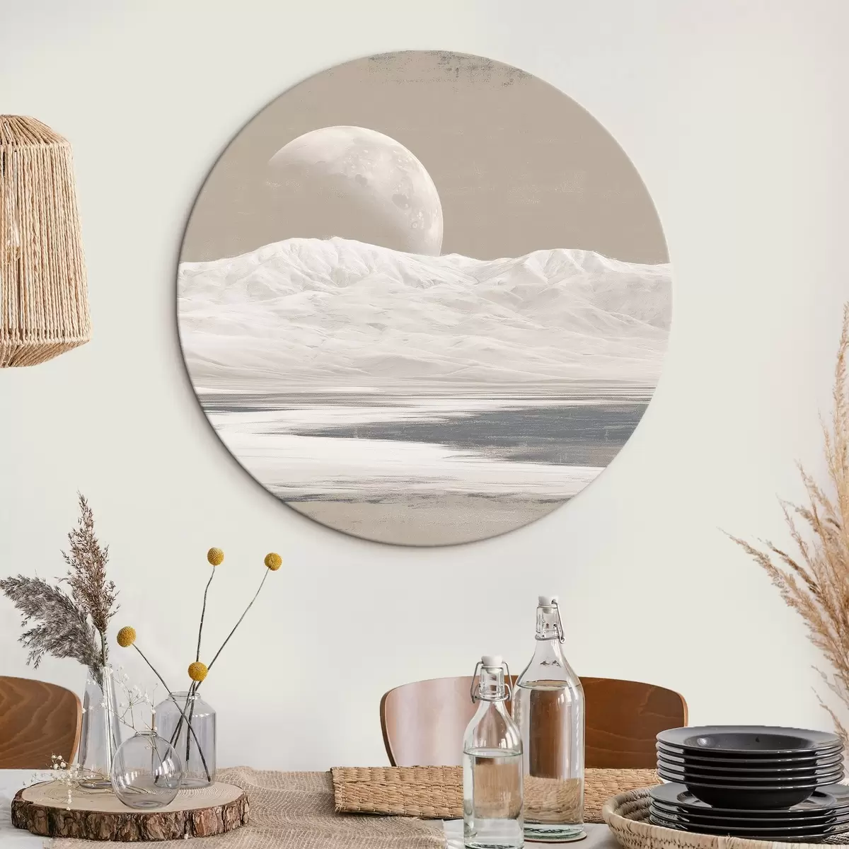 Ronde schilderijen Woestijnlandschap met maan aan de horizon r44787