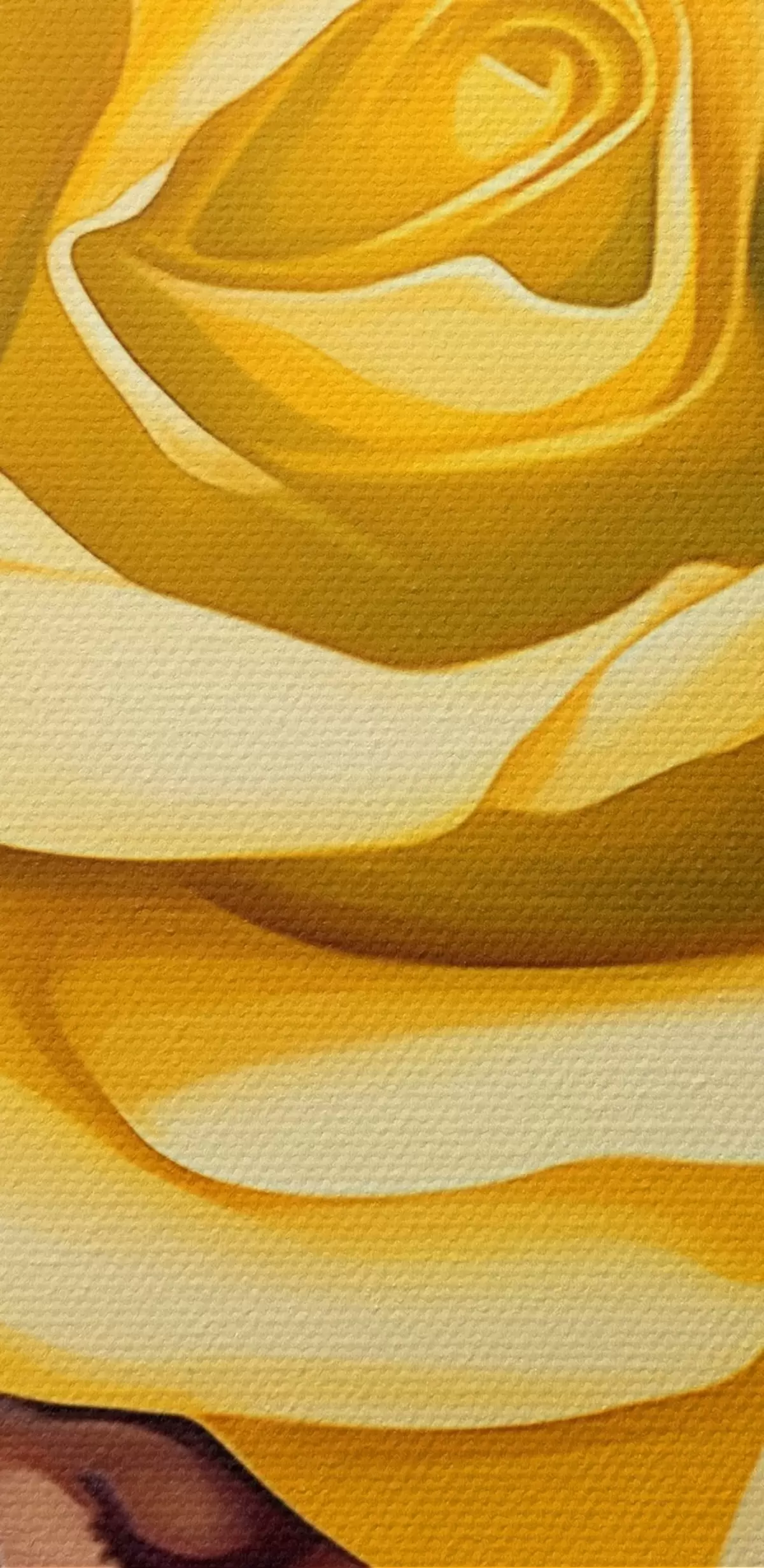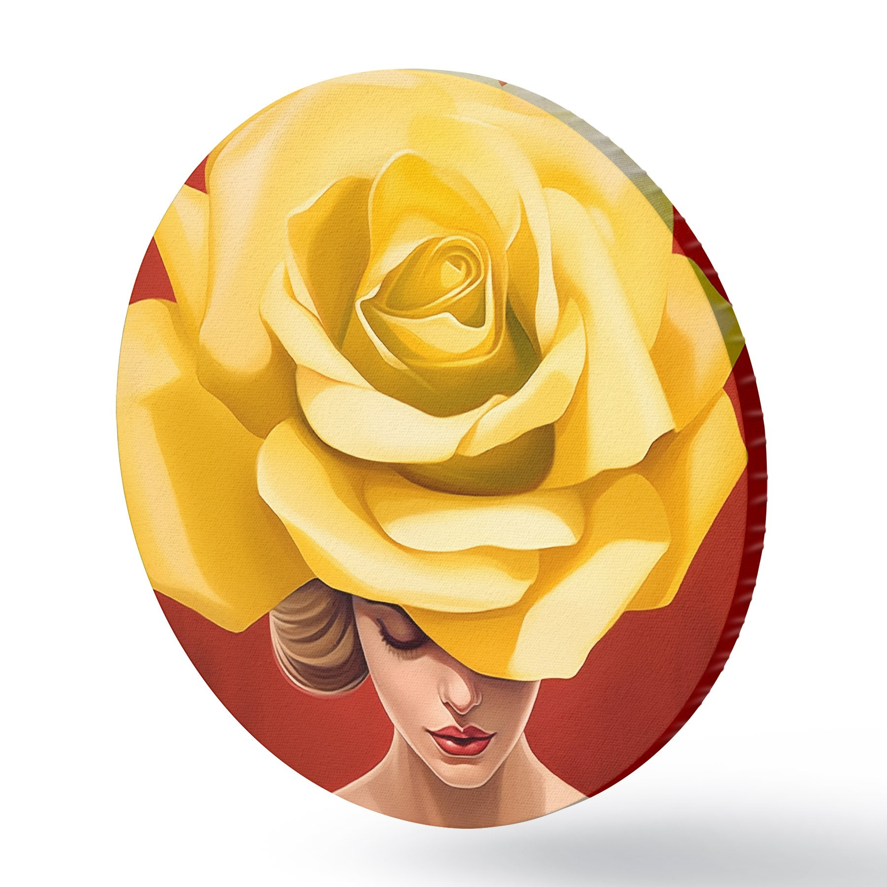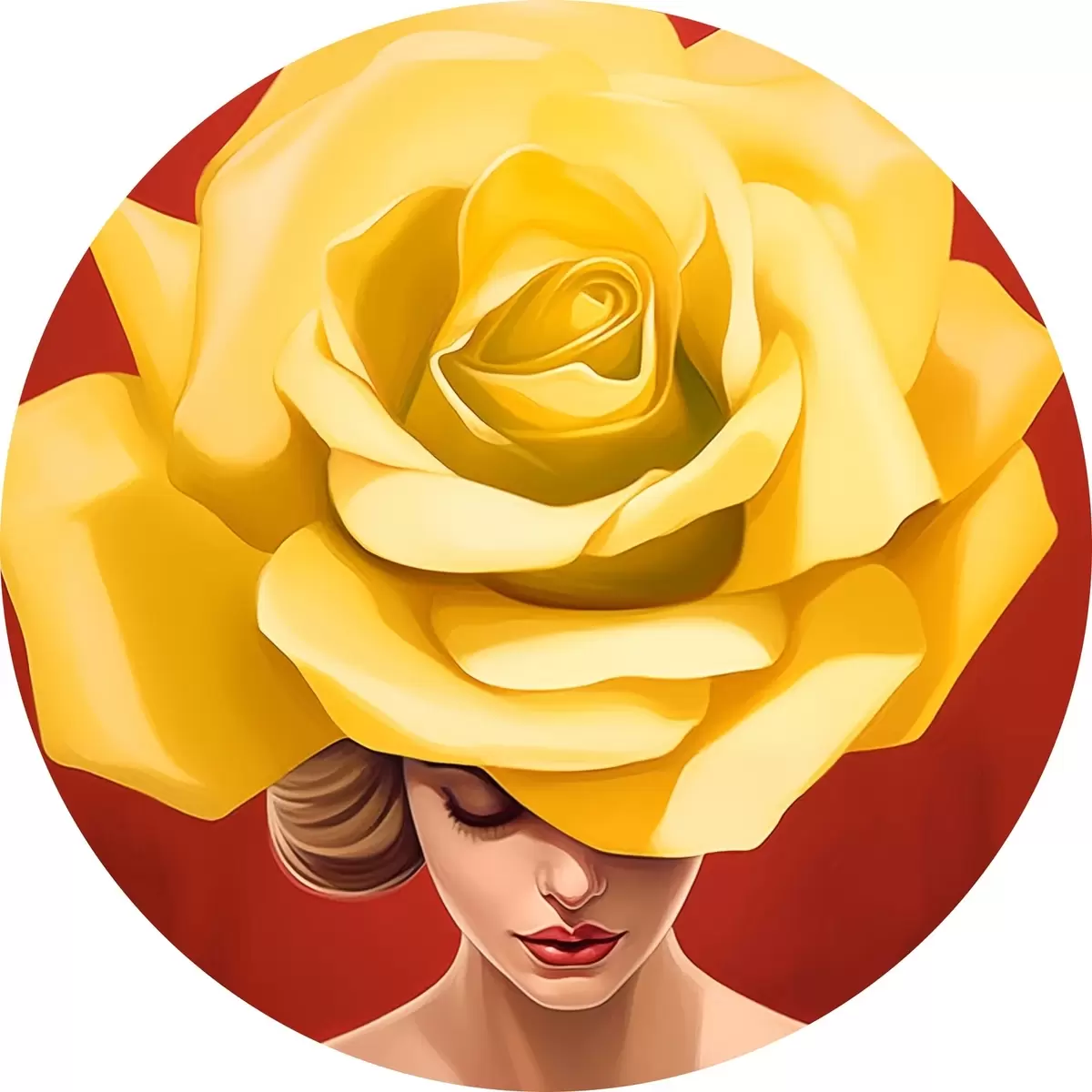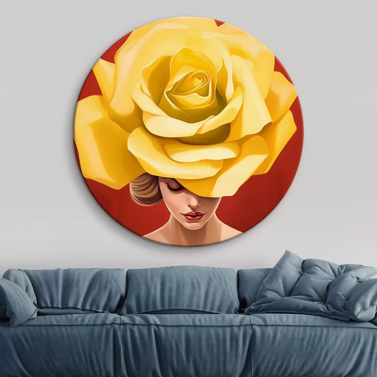 Ronde schilderijen Vrouw met gele rozenhoed r44800