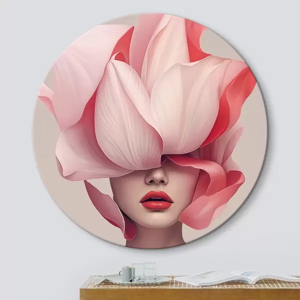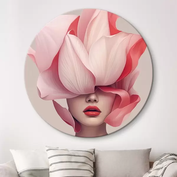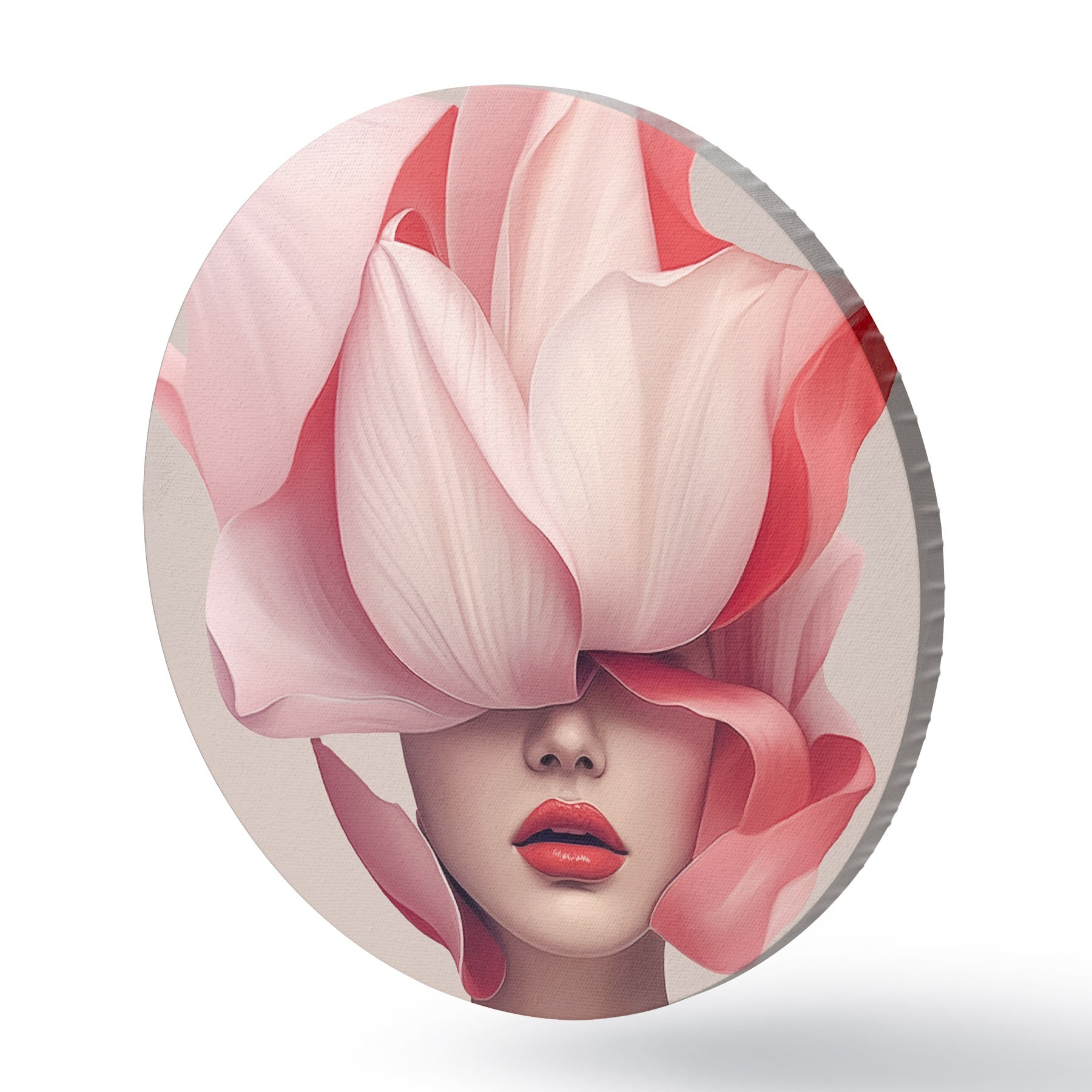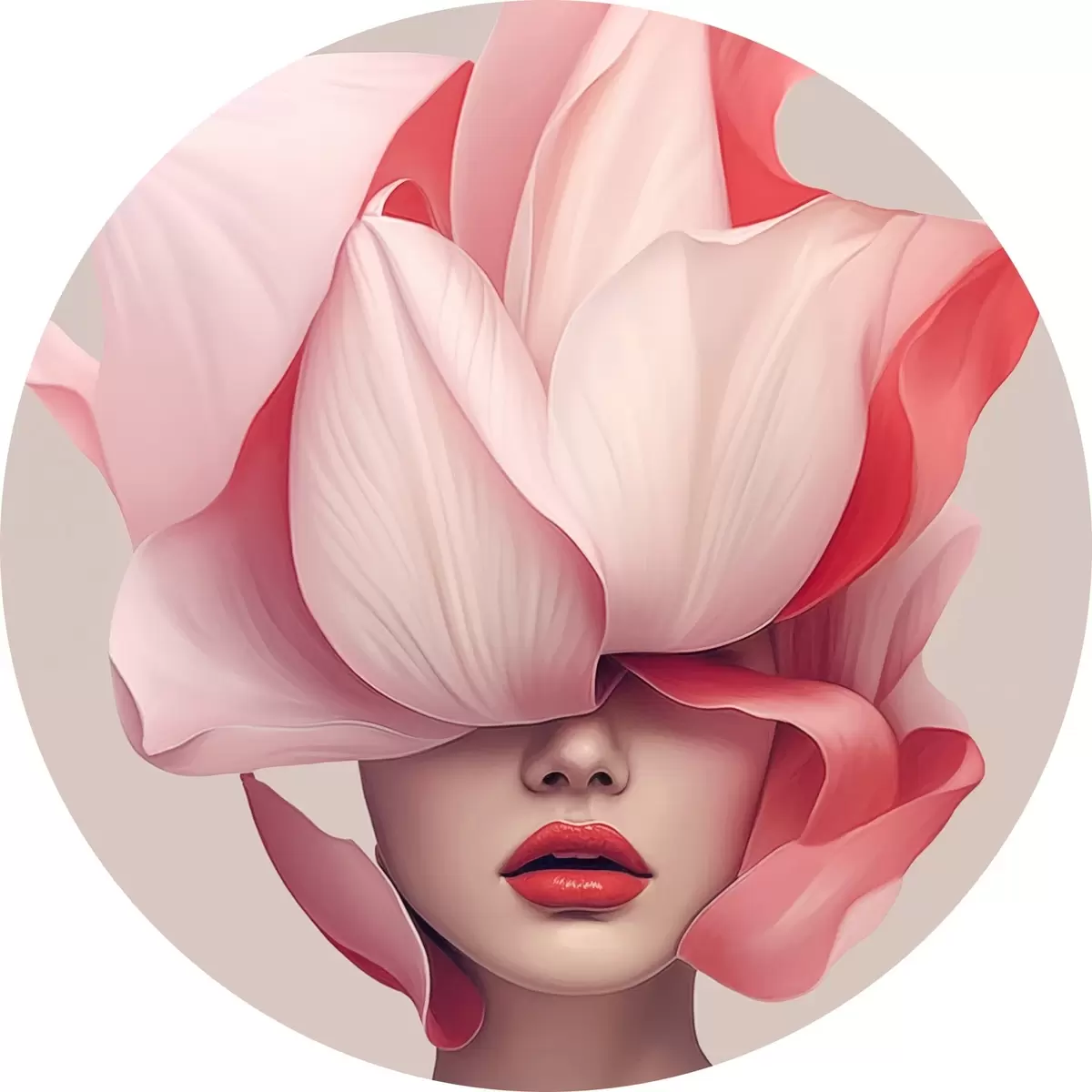 Ronde schilderijen Vrouwenportret met grote bloemblaadjes r44812