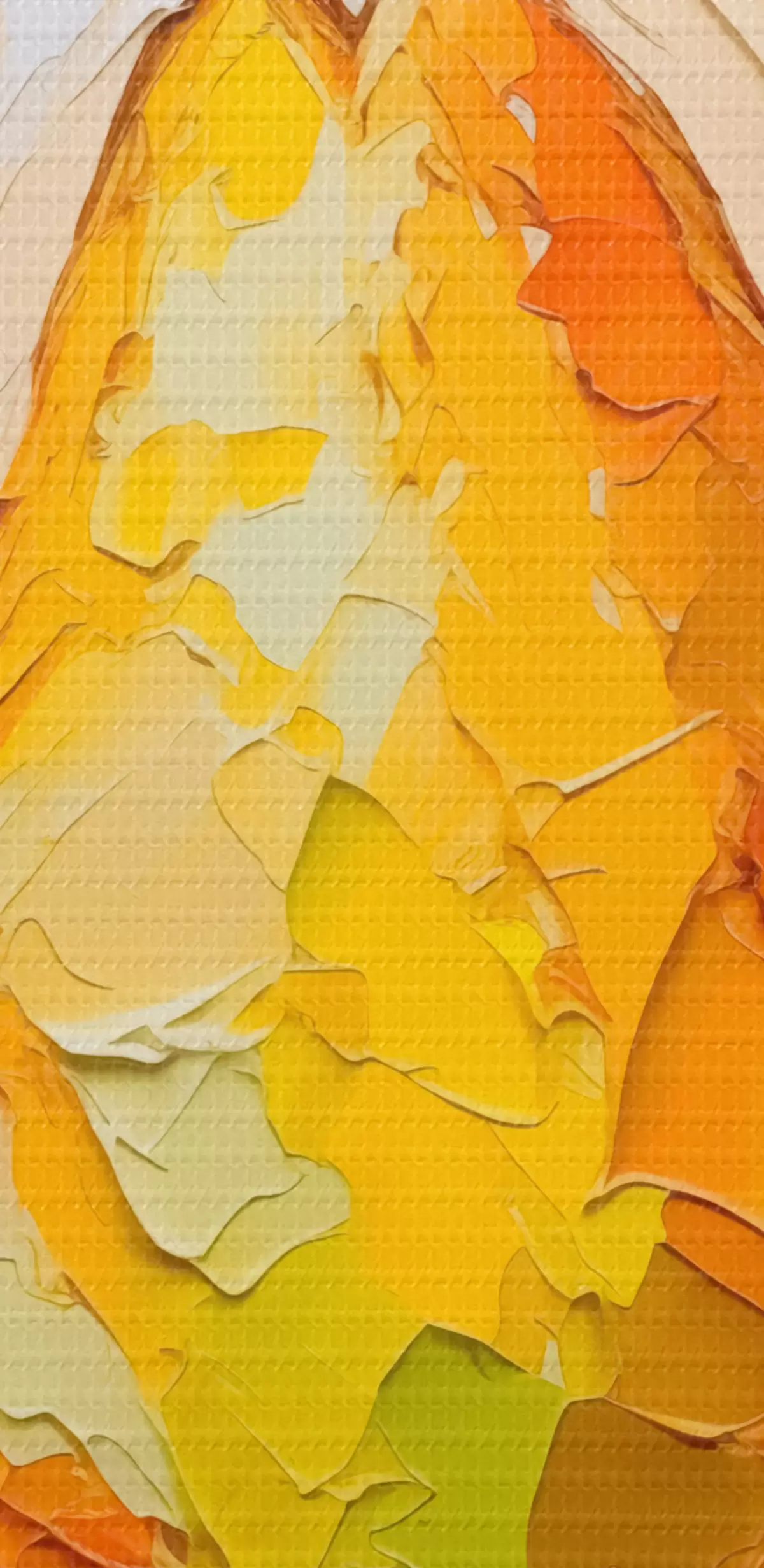 Het schilderij kan direct na ontvangst worden opgehangen. Het schilderij wordt opgespannen op een 2 cm breed houten spieraam.