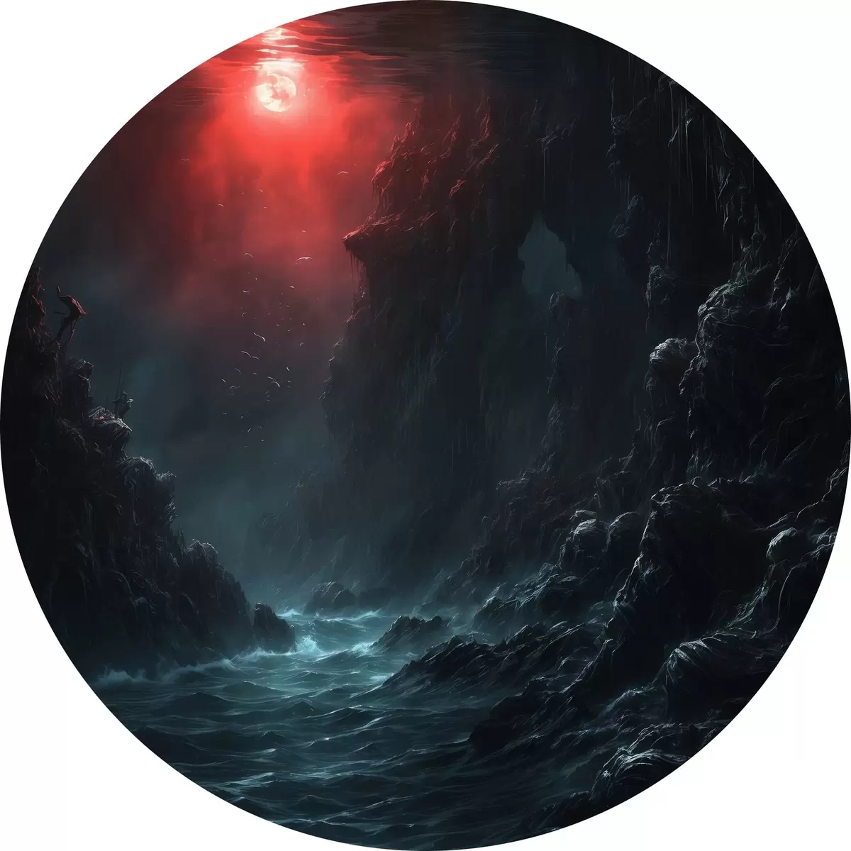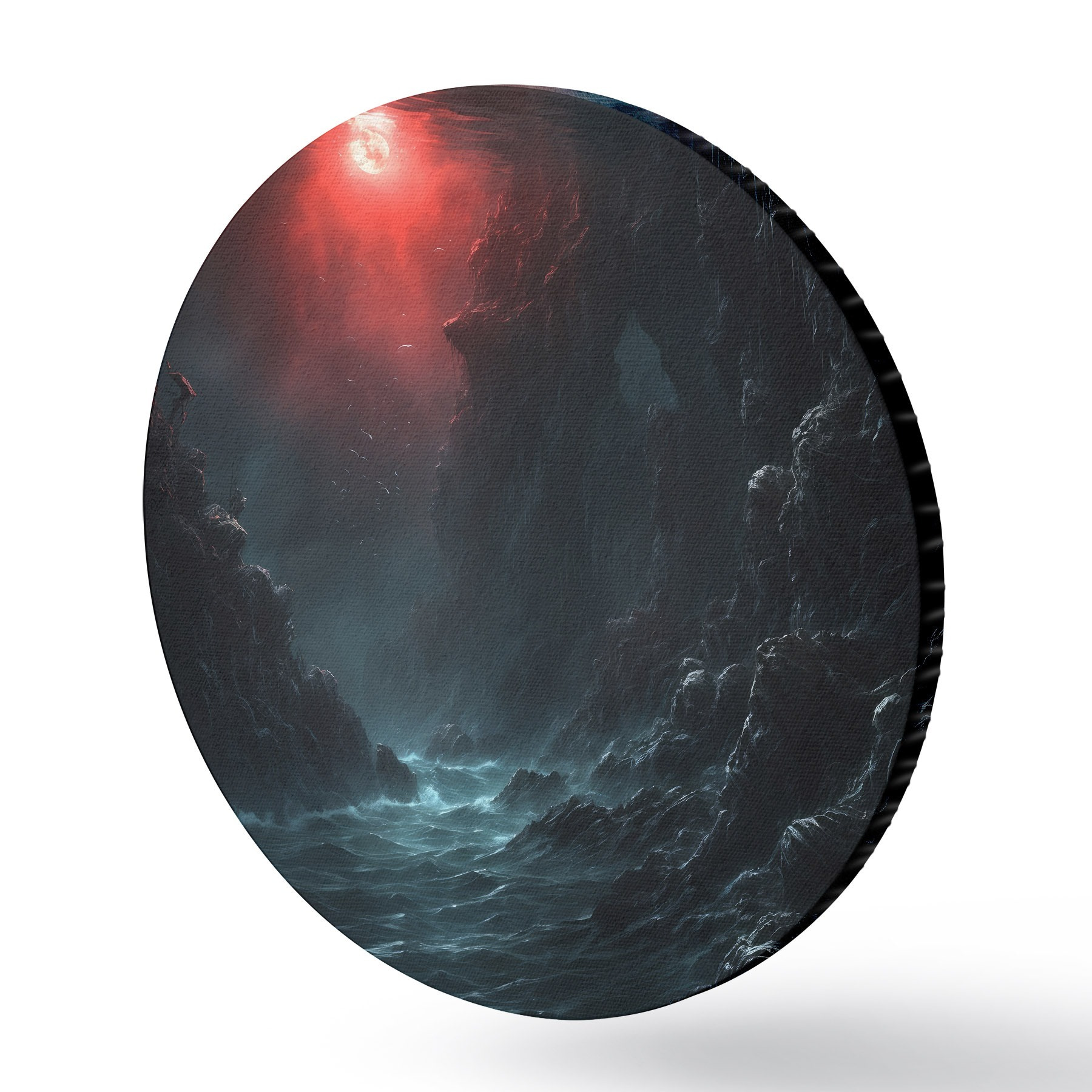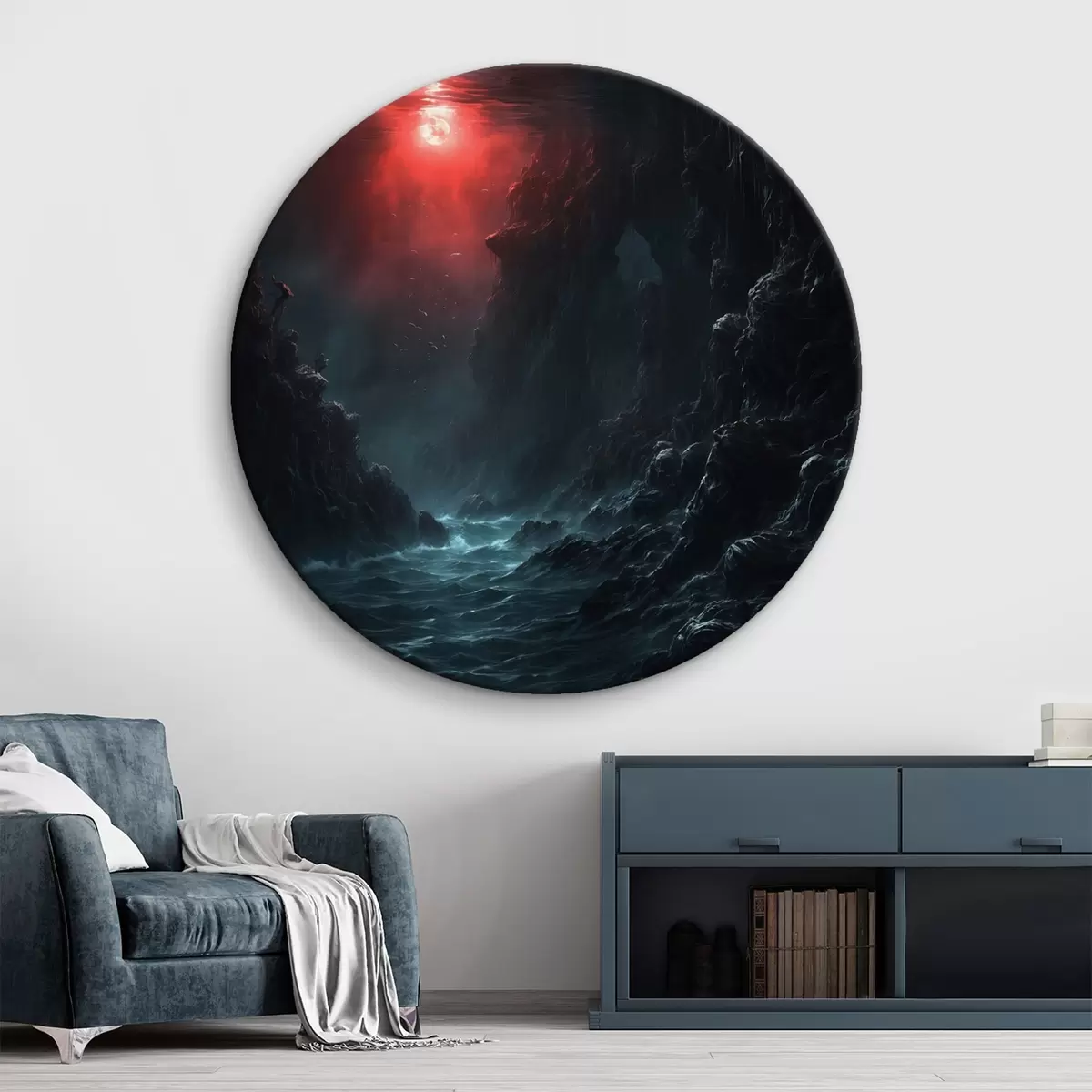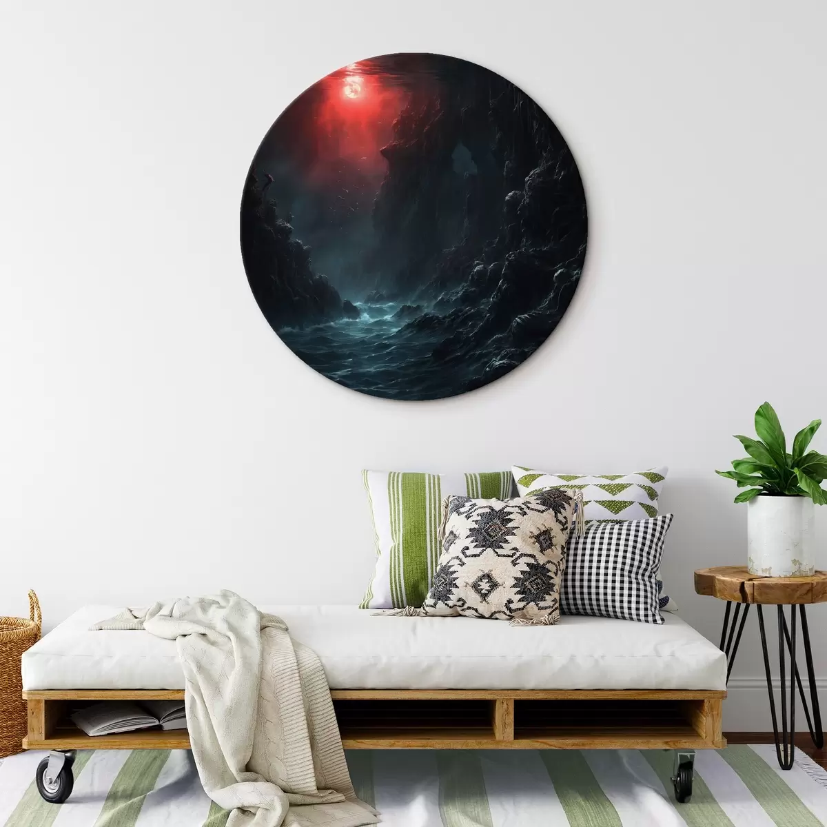 Ronde schilderijen Donkere zeekloof met rood licht van boven r44870