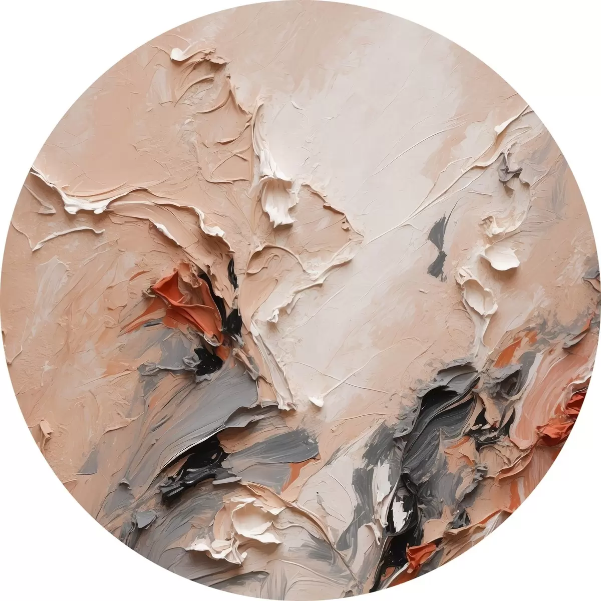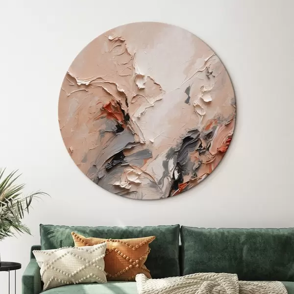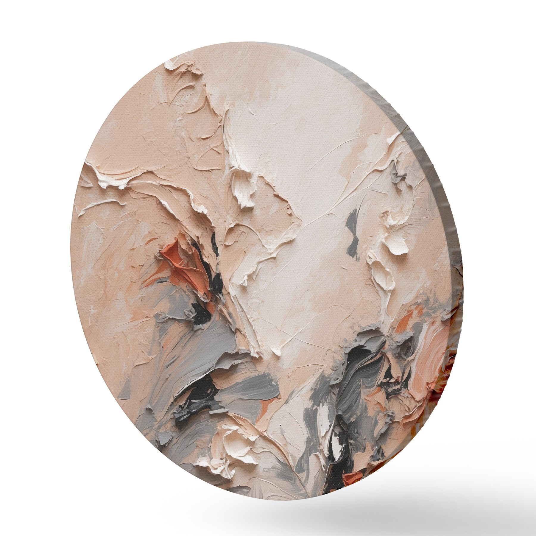 Ronde schilderijen Abstract in perzikkleurige grijstinten met structuurstrepen r44873