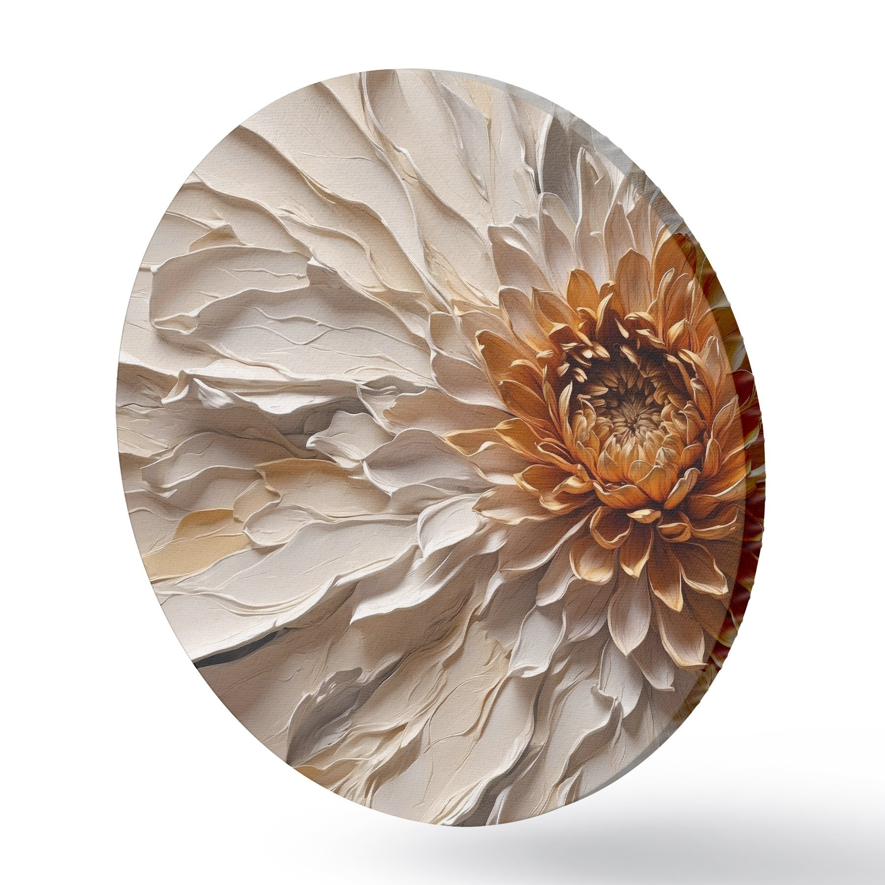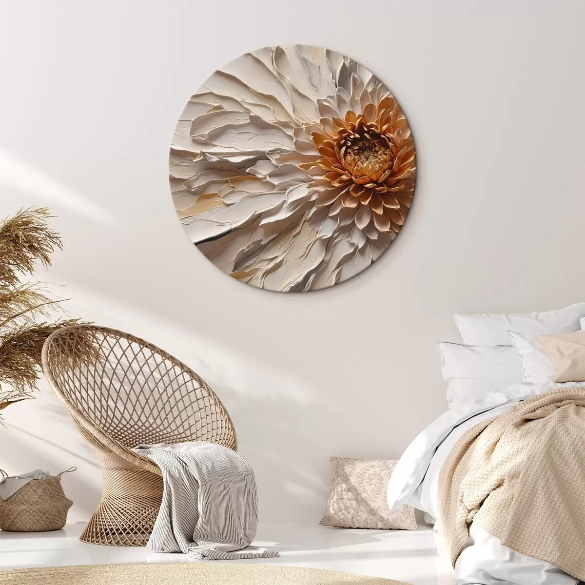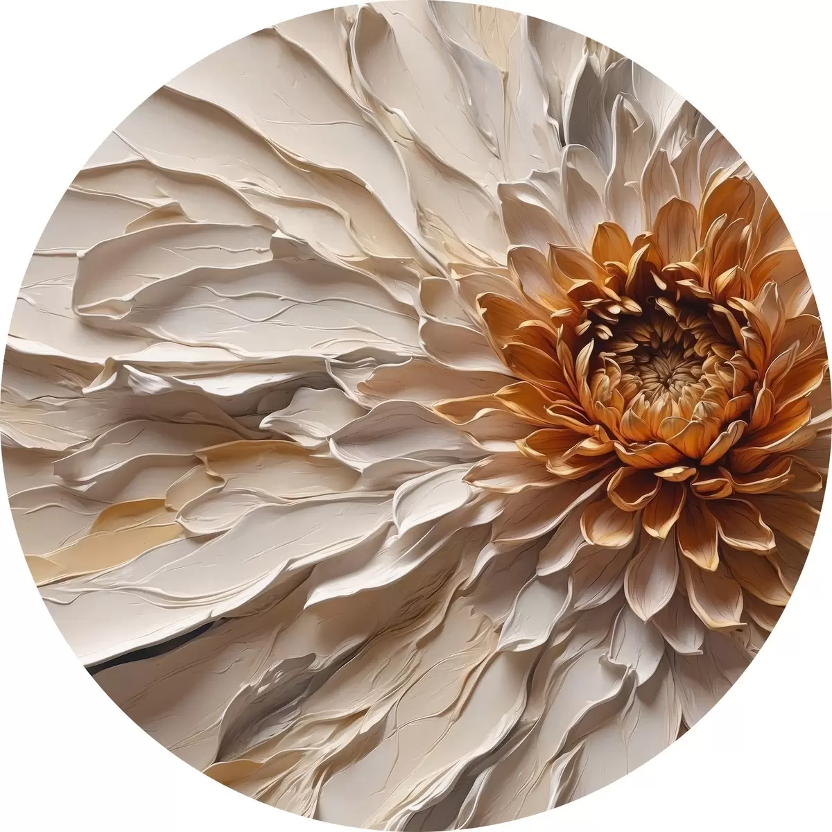 Ronde schilderijen Volumetrische bloem met crèmekleurige bloemblaadjes en warme kern r44878