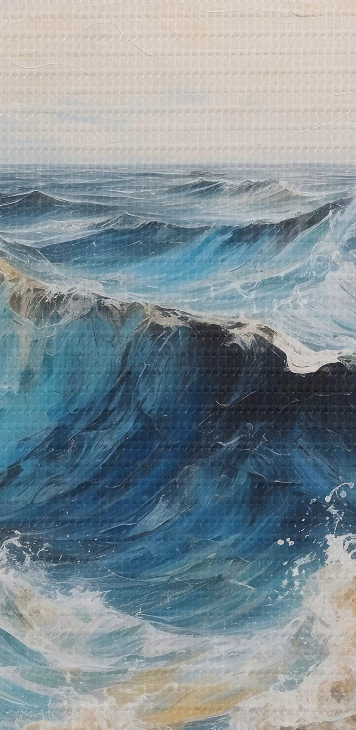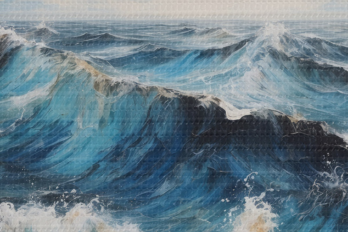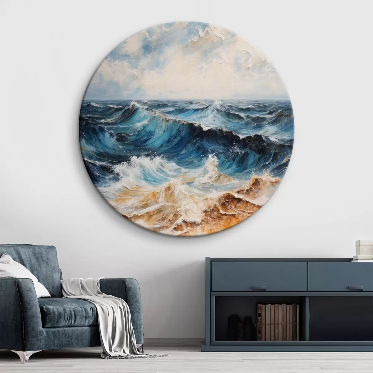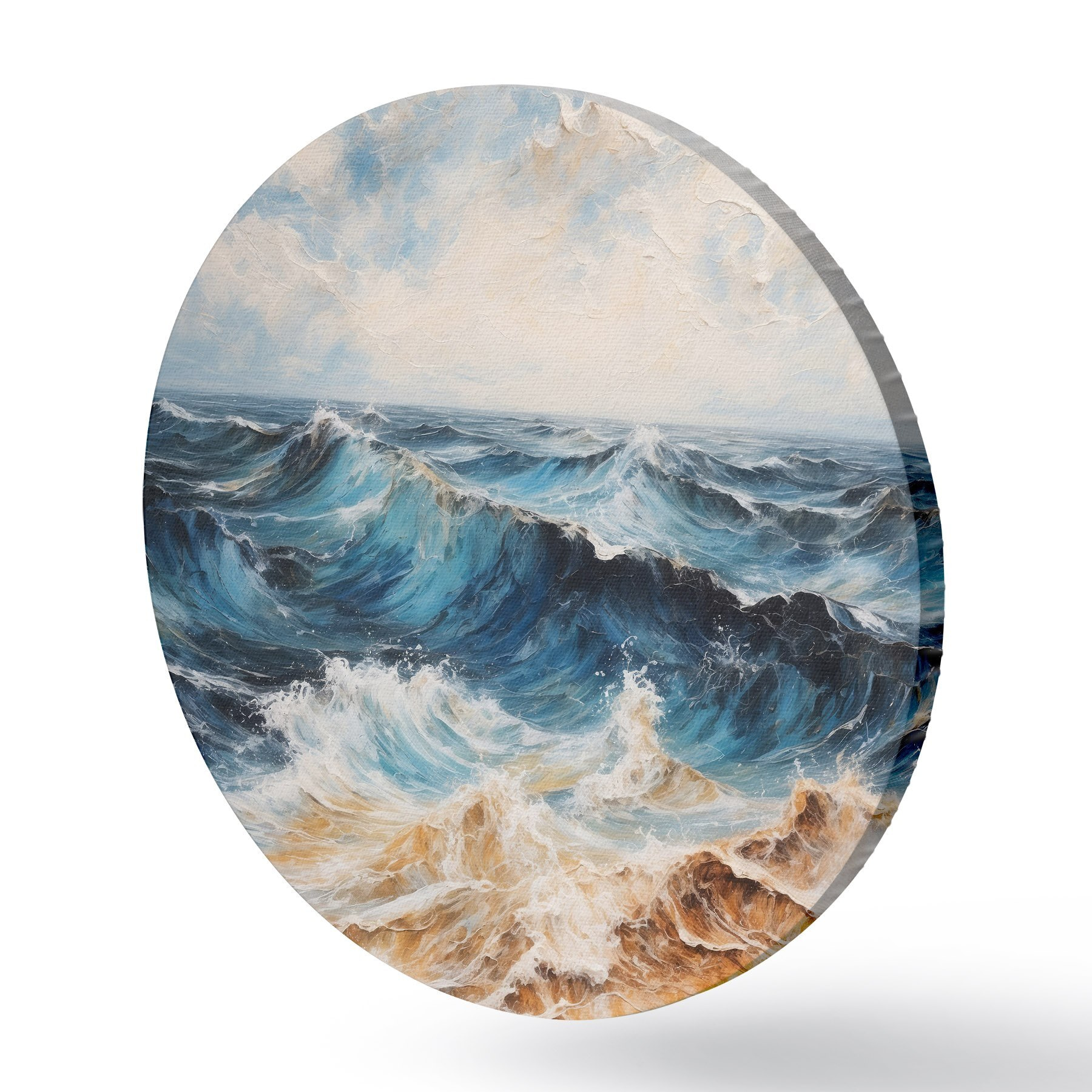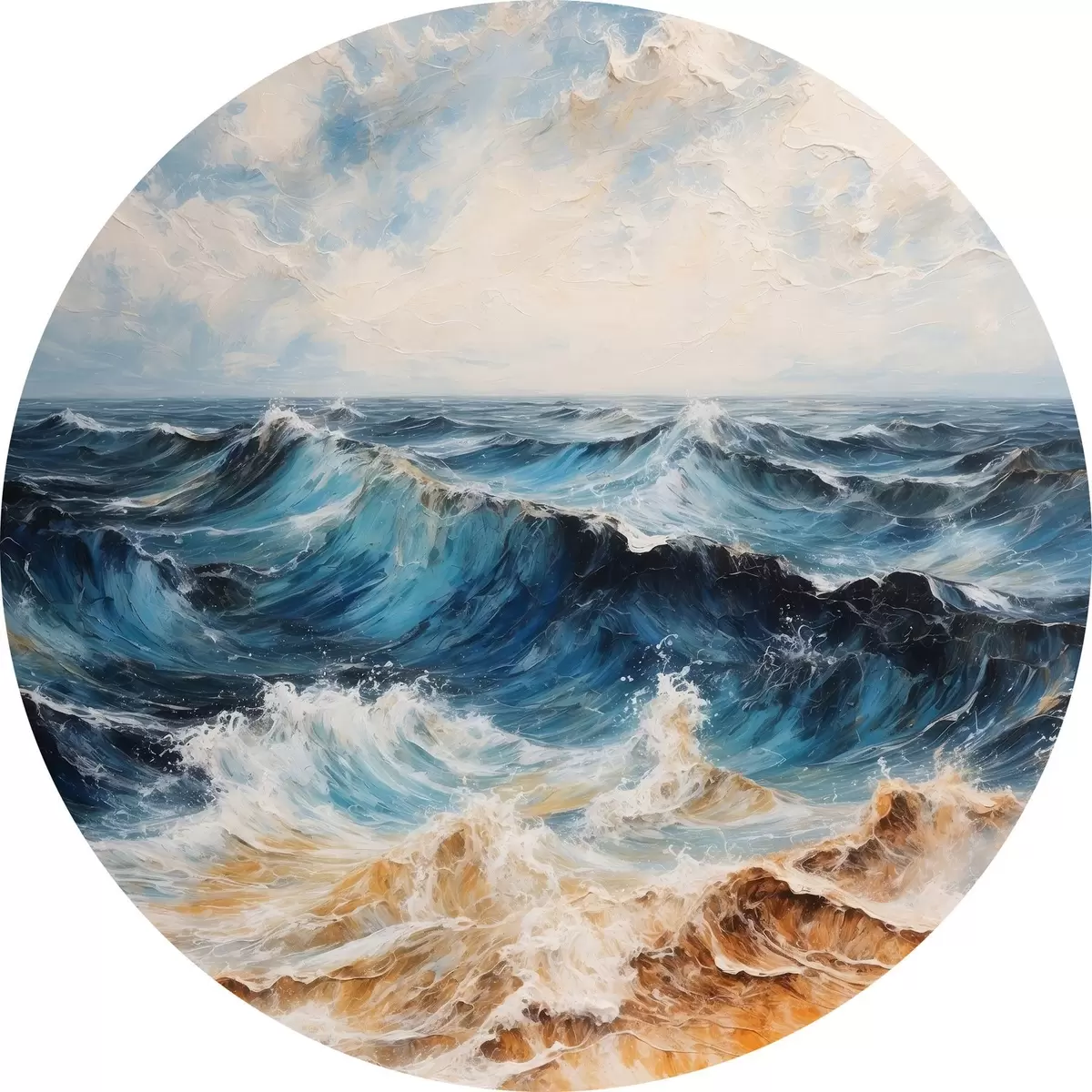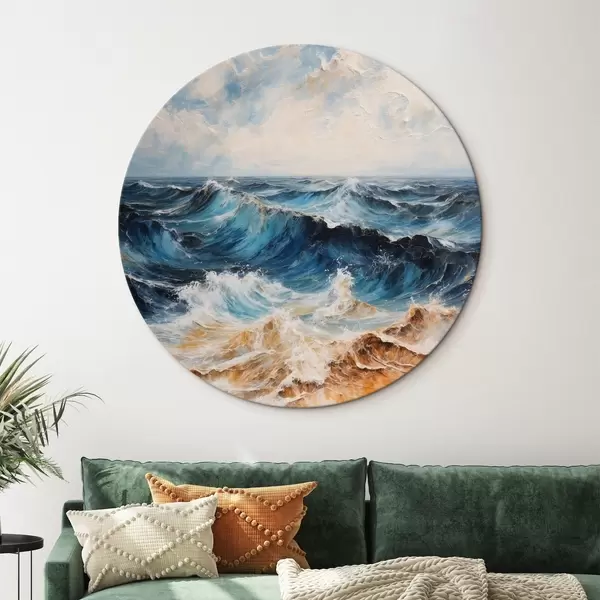 Ronde schilderijen Ruwe zee met golven onder een heldere hemel r44881