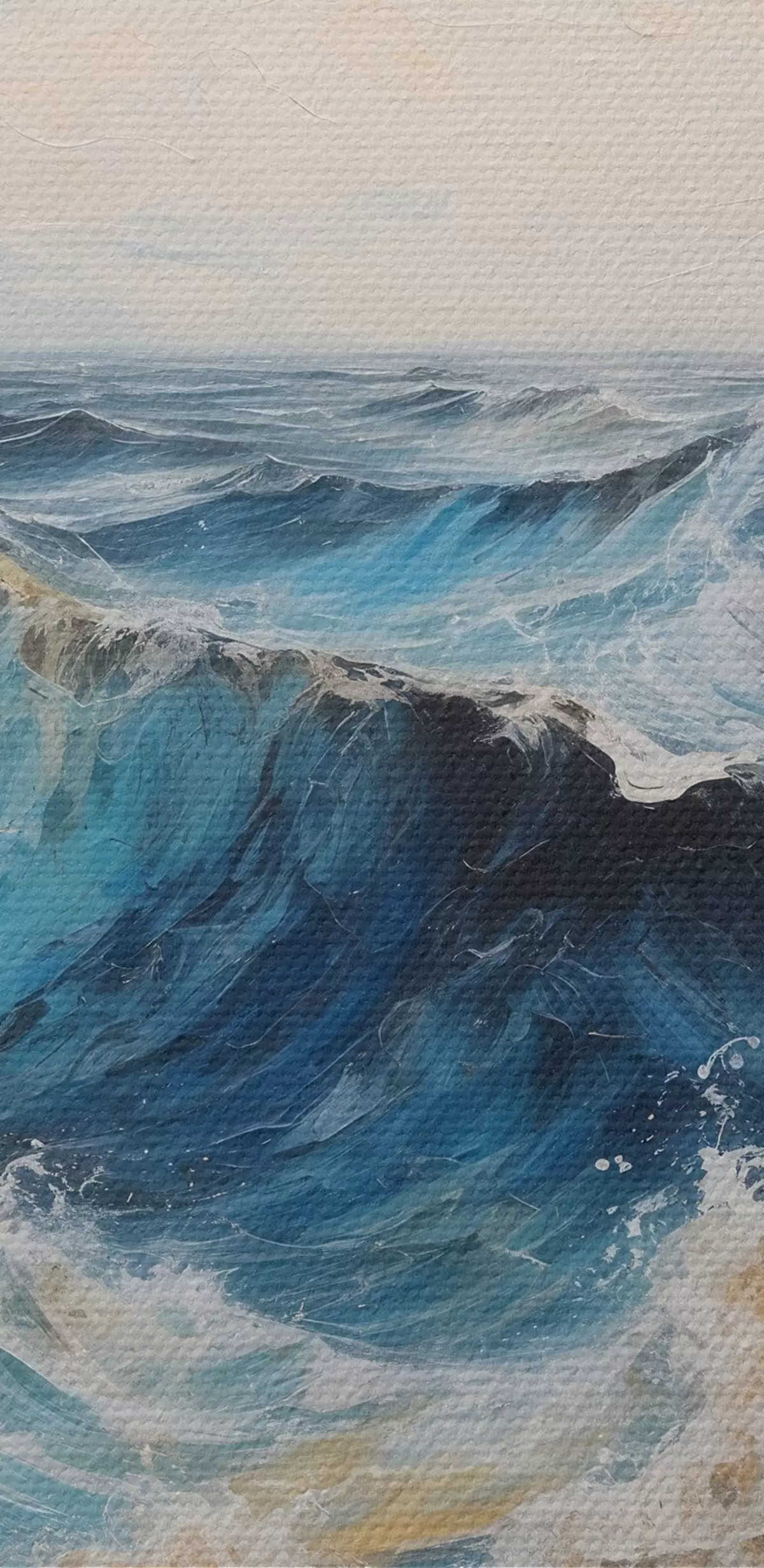 Het schilderij kan direct na ontvangst worden opgehangen. Het schilderij wordt opgespannen op een 2 cm breed houten spieraam.