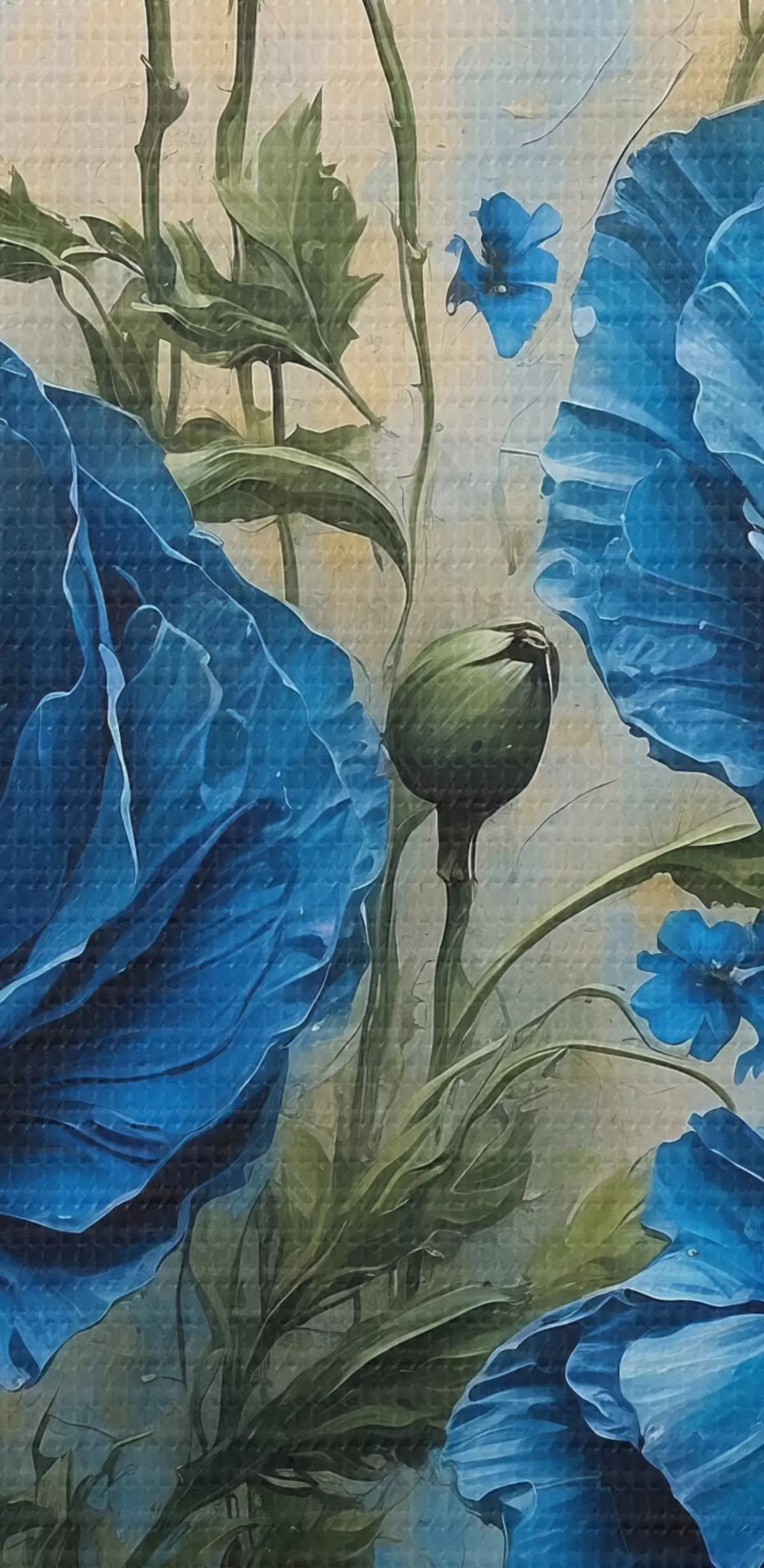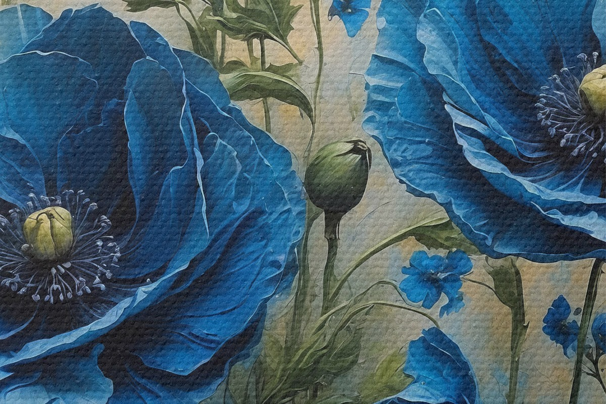 Afbeelding Blauwe klaprozen op een pastelkleurige achtergrond met bladeren Nr r44882