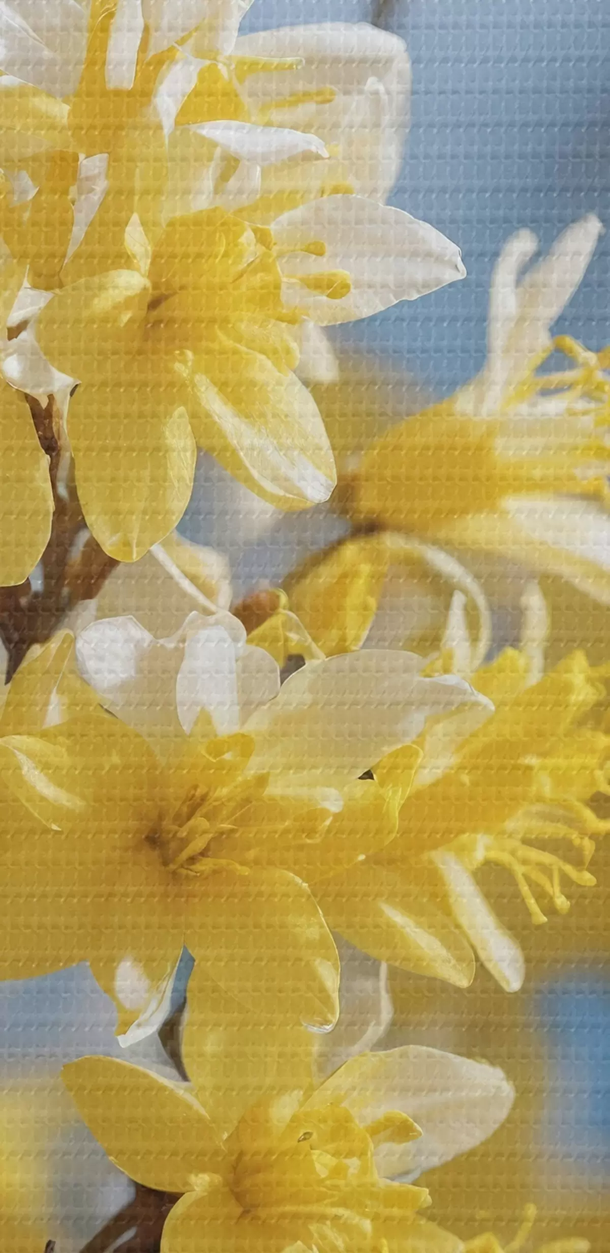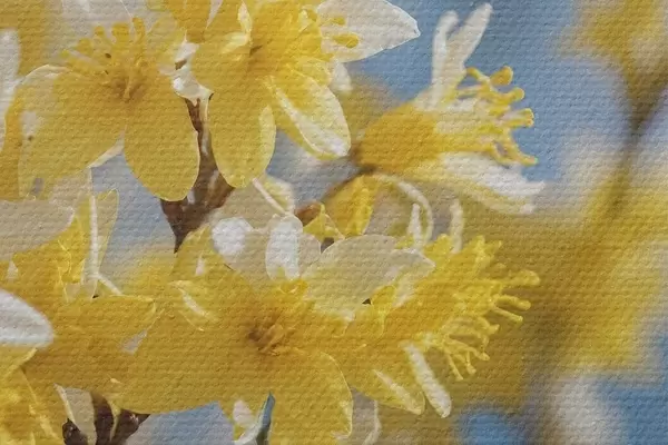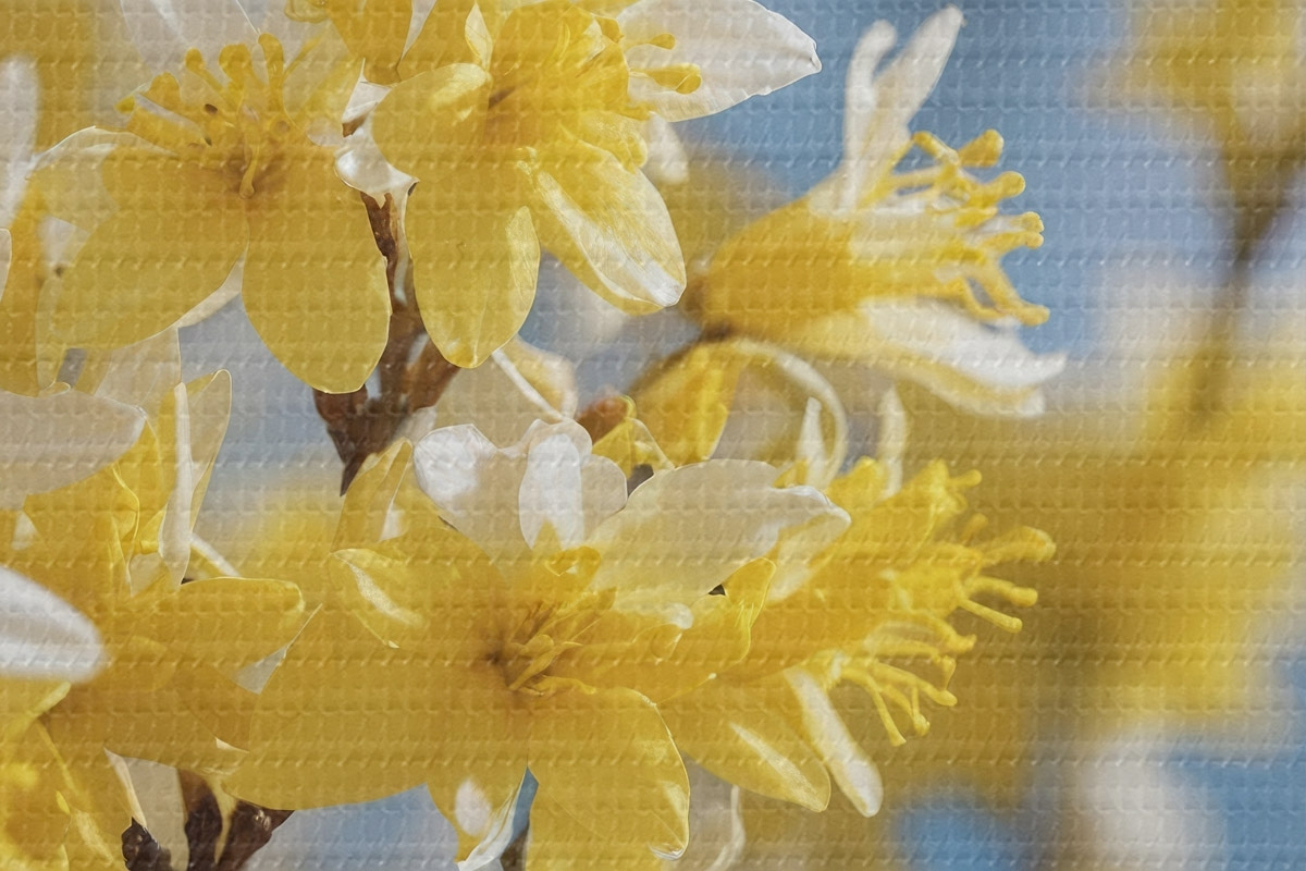 Afbeelding Gele bloemen op een blauwe achtergrond met zachte focus Nr r44894