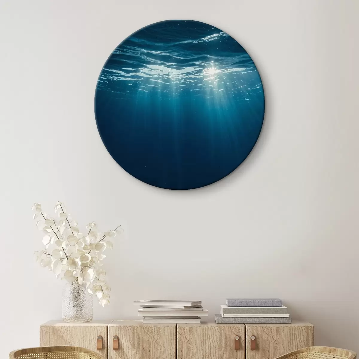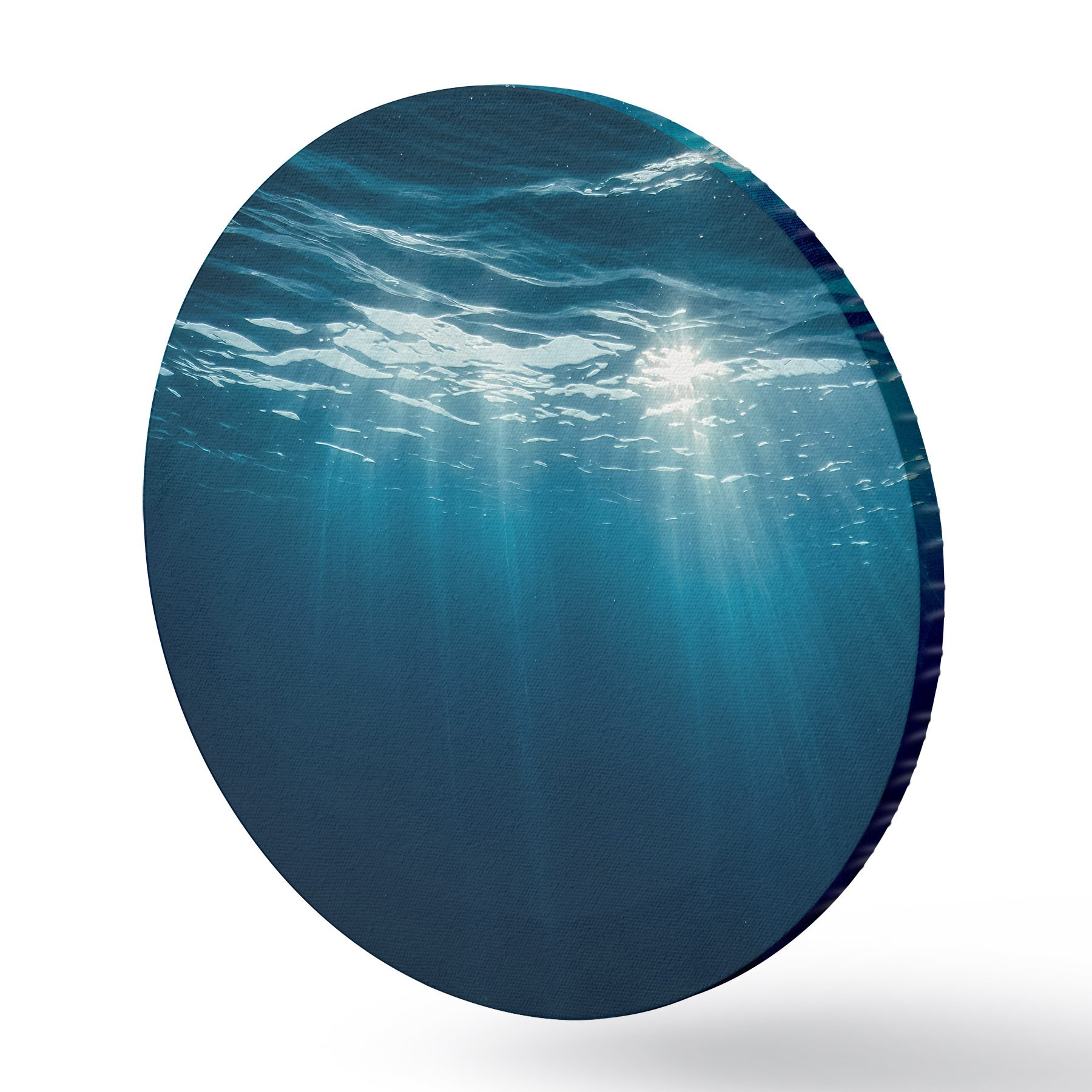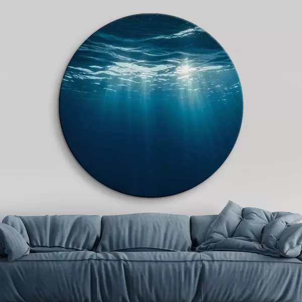 Ronde schilderijen Lichtstralen onder water in diepblauwe oceaan r44897