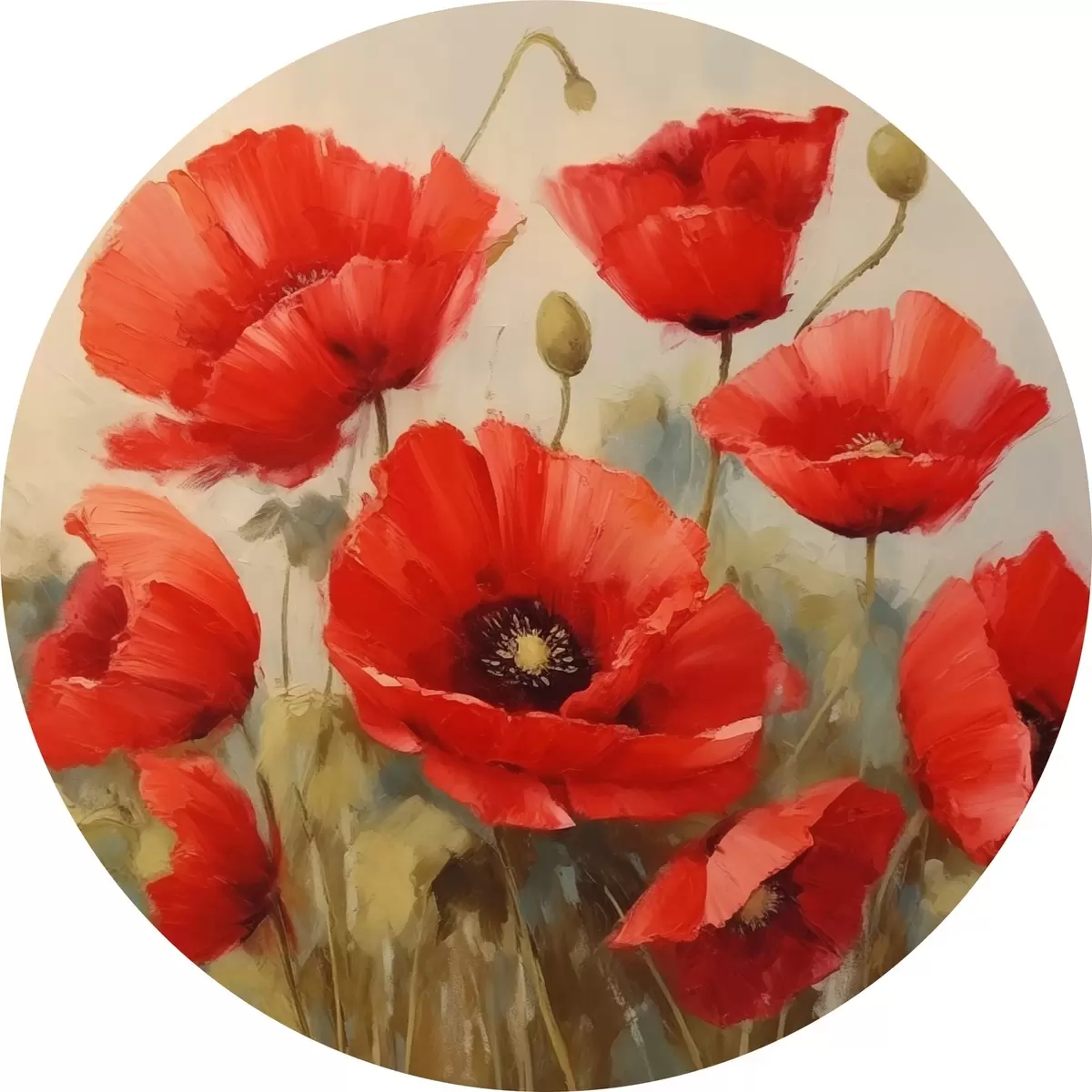 Ronde schilderijen Rode klaprozen r44905