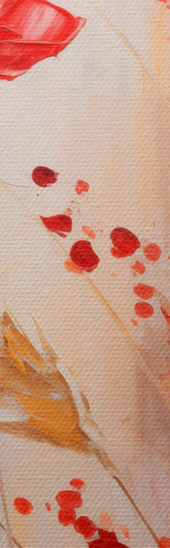 Afbeelding Rode papaverbloemen met gele tarwestengels, tegen een zachte, neutrale achtergrond met spetters rode verf Nr r44926