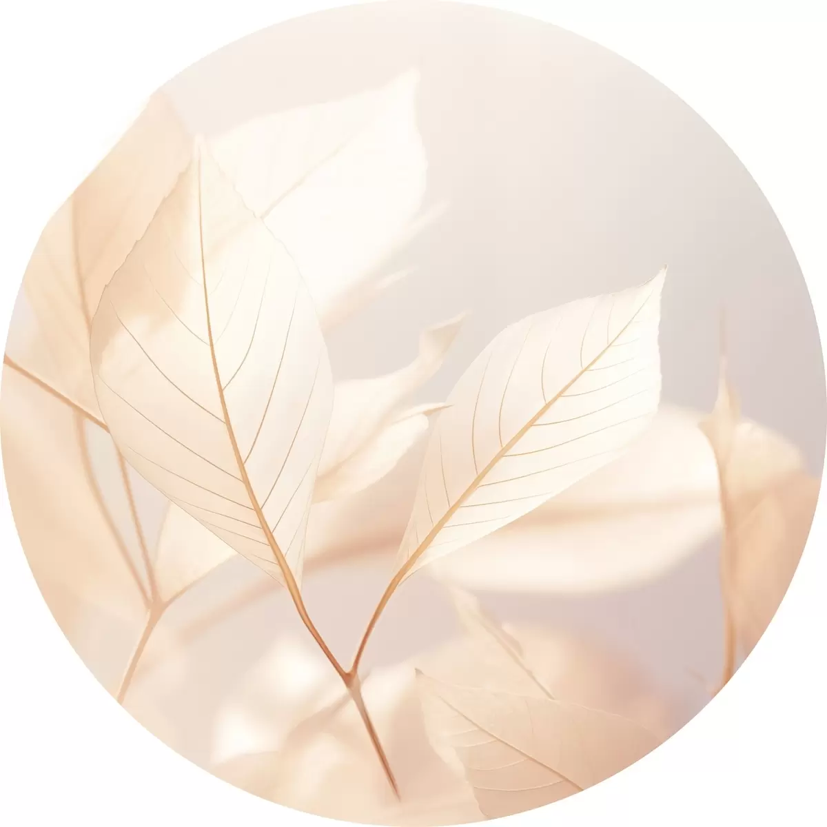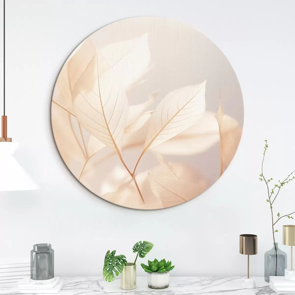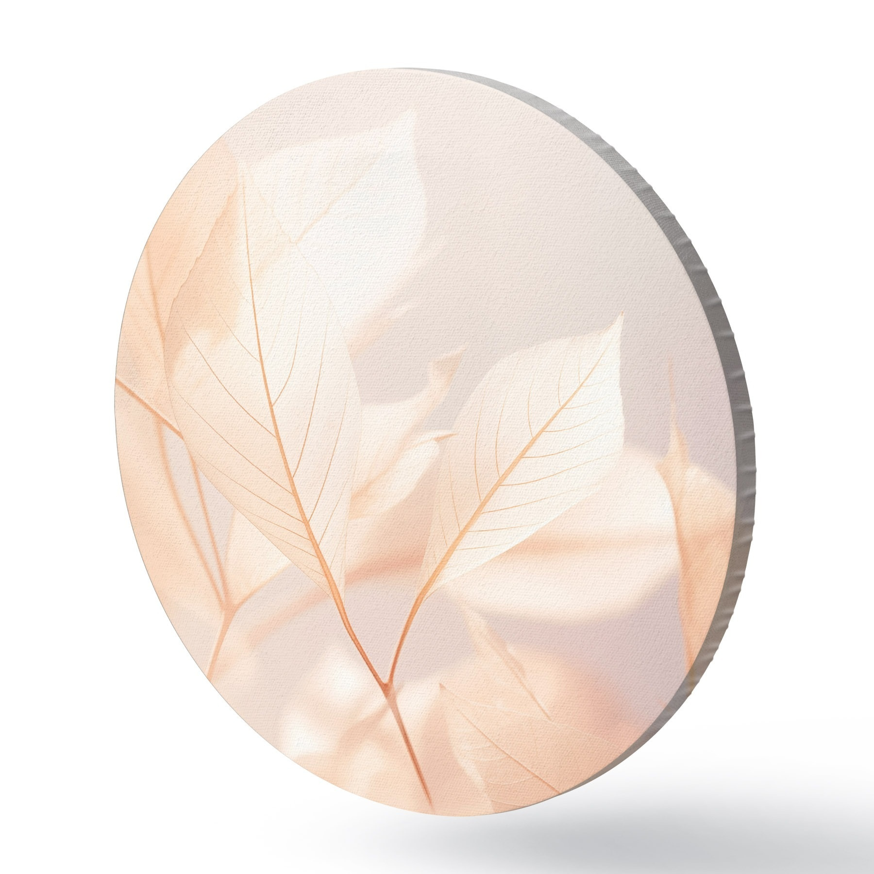 Ronde schilderijen Doorschijnende bladeren met ingewikkelde aderpatronen, zacht pastelkleurenpalet, etherische verlichting, minimalistische compositie r44928