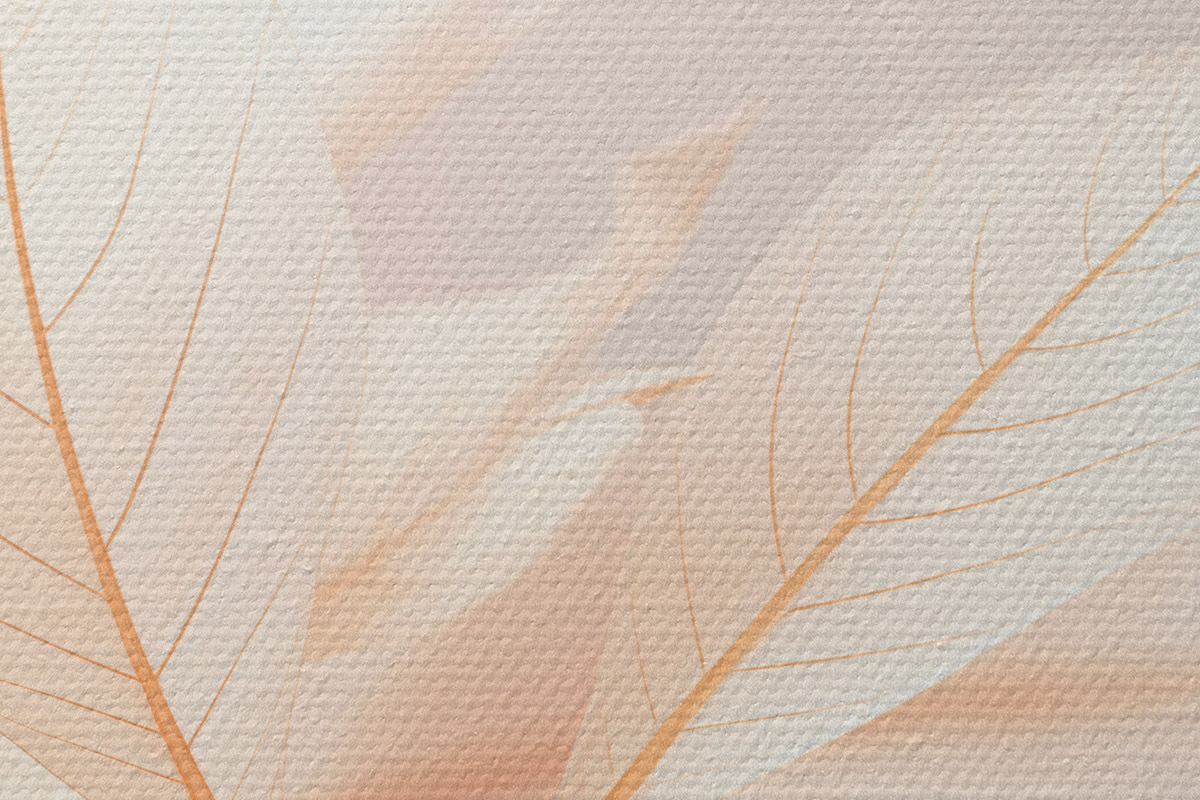 Afbeelding Doorschijnende bladeren met ingewikkelde aderpatronen, zacht pastelkleurenpalet, etherische verlichting, minimalistische compositie Nr r44928