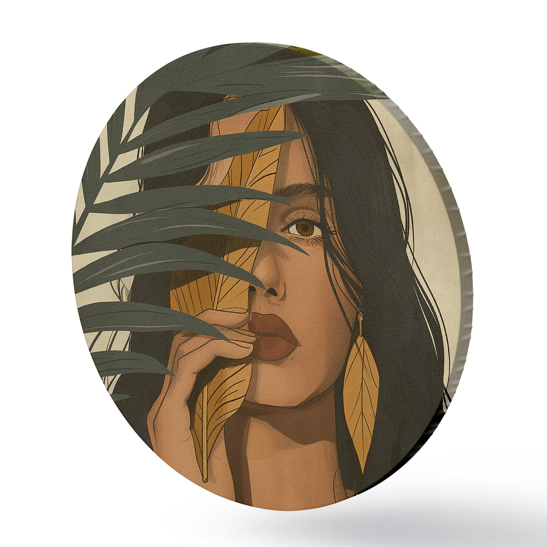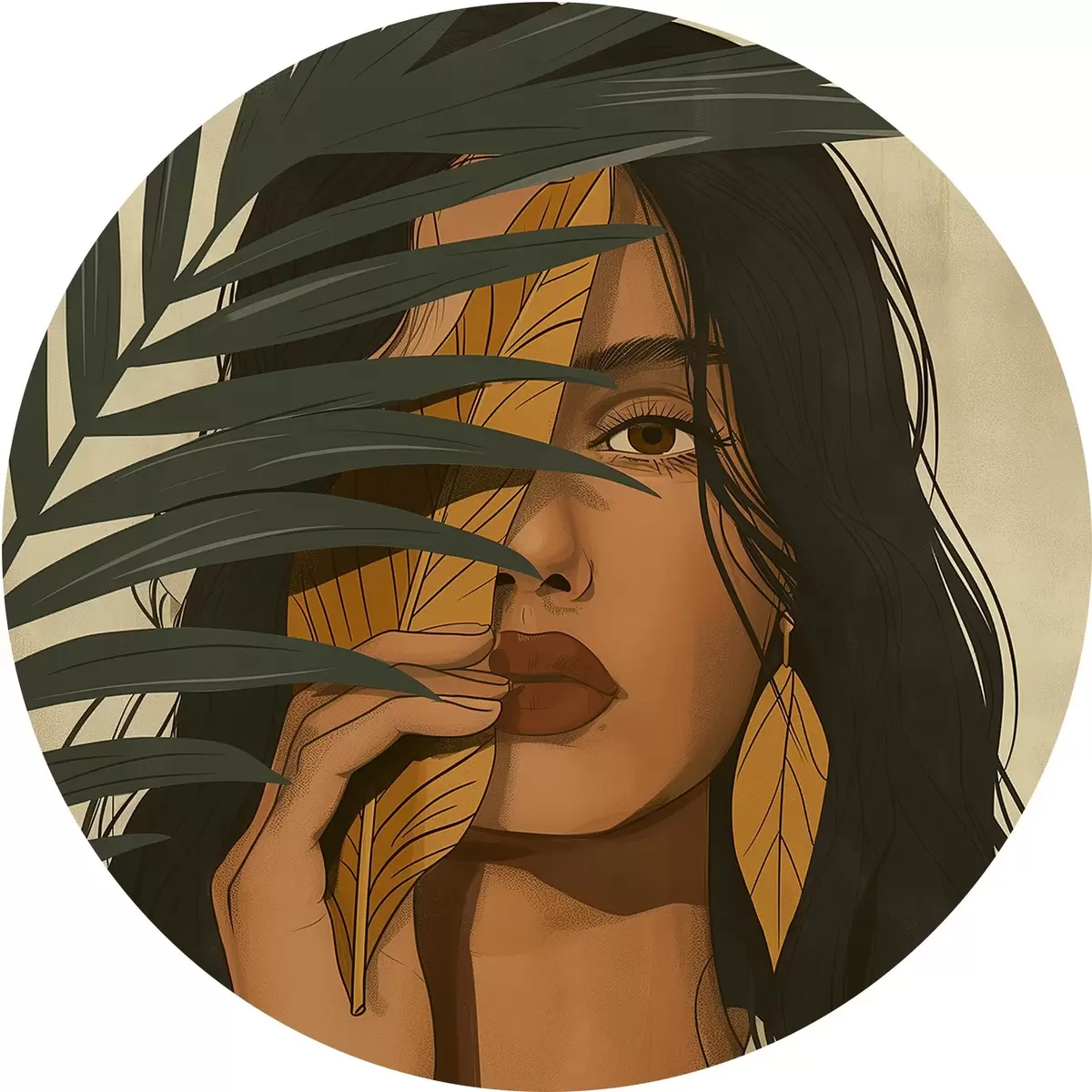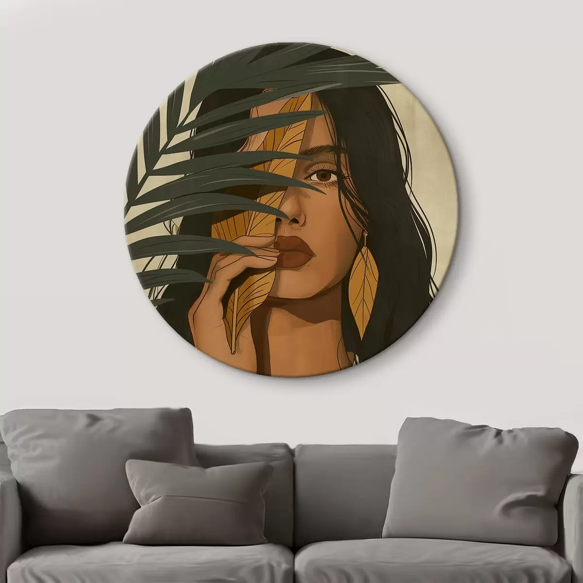 Ronde schilderijen Gezicht verborgen achter bladeren r44960