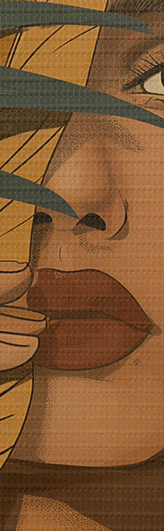 Om het doek op te spannen op spielatten zonder de afbeelding te beschadigen, gebruiken we gespiegeld beeld.