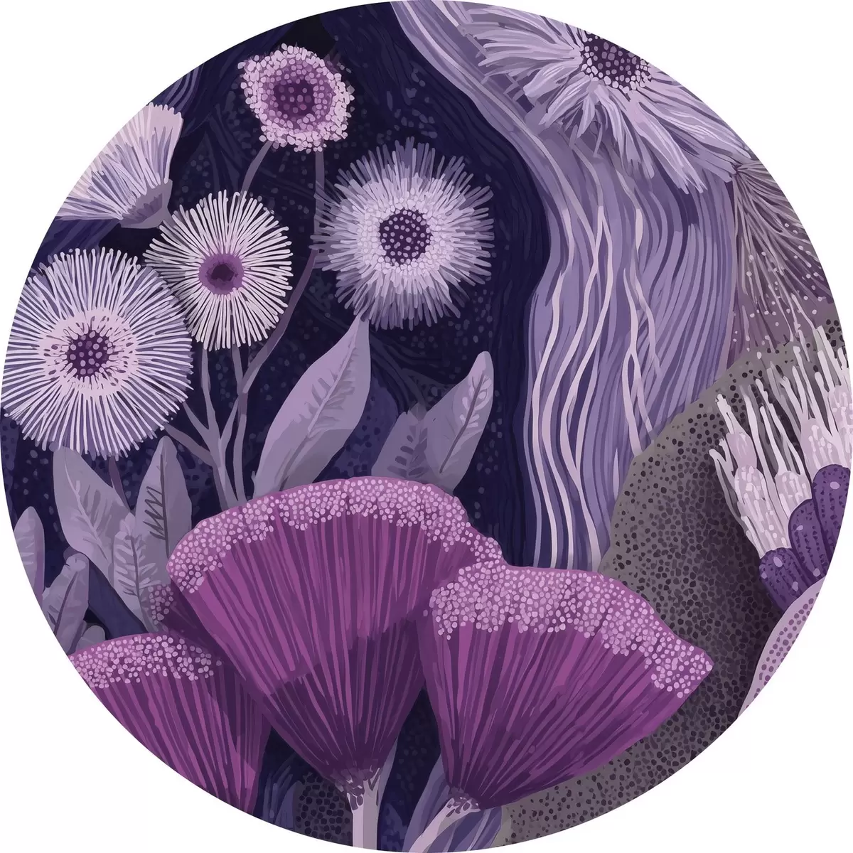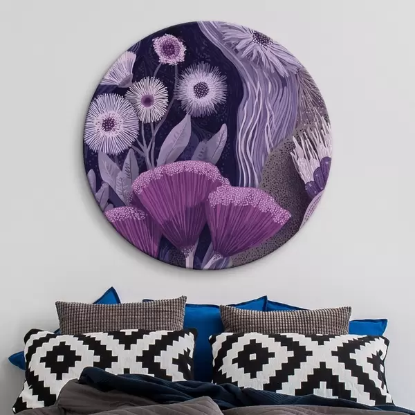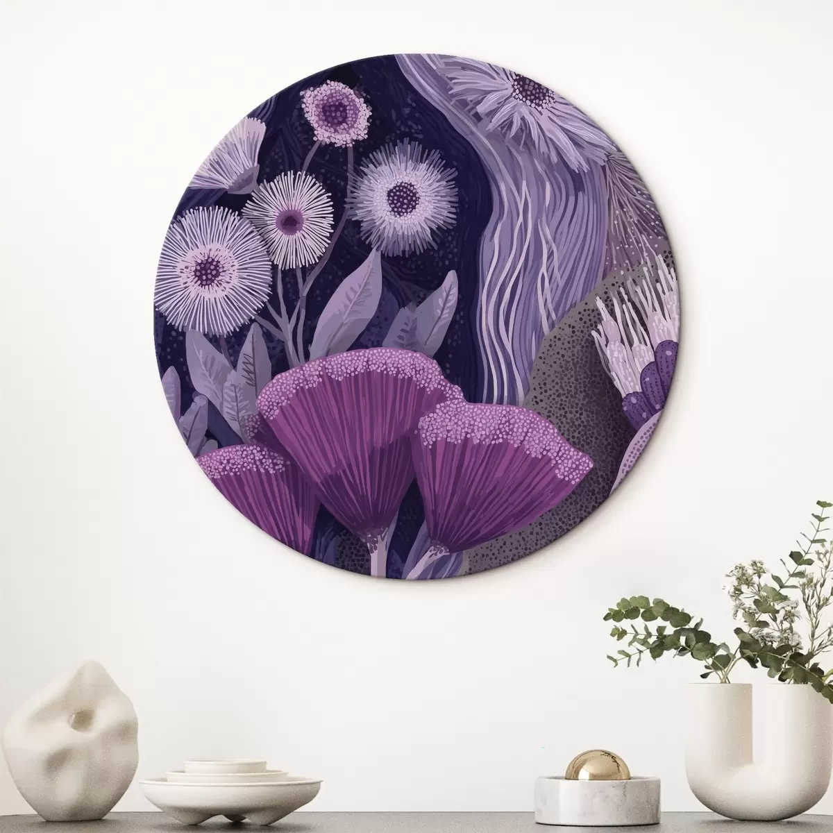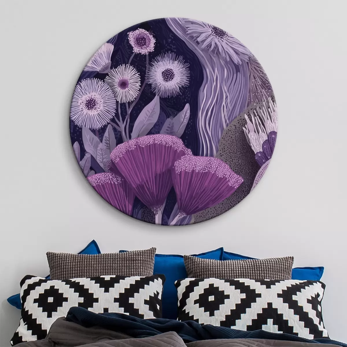 Ronde schilderijen Bloemenontwerp in paarse kleuren, gedetailleerde tekening r44984