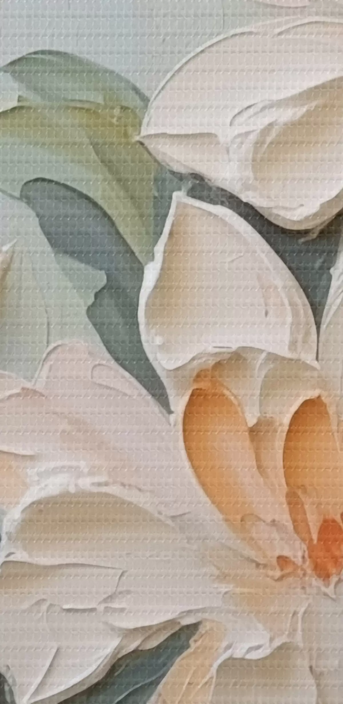 Het schilderij kan direct na ontvangst worden opgehangen. Het schilderij wordt opgespannen op een 2 cm breed houten spieraam.