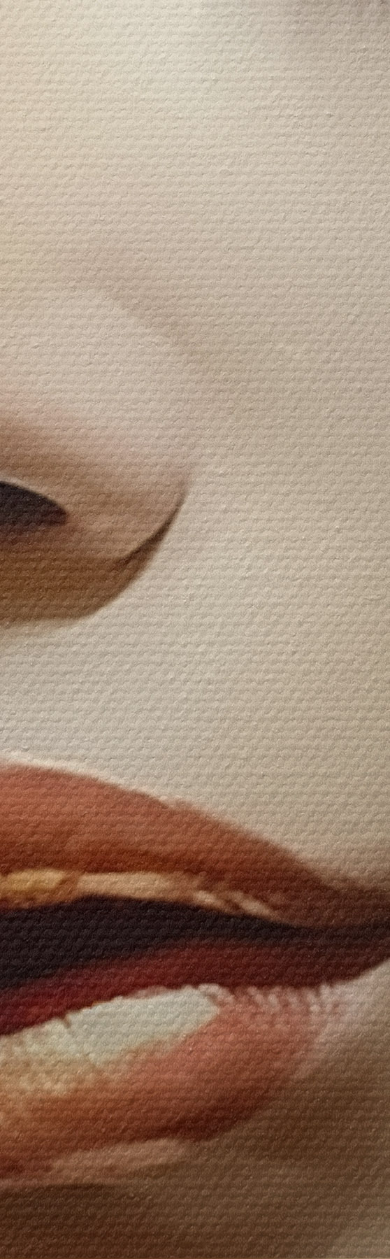 De fijne weving van draden op dit doek lijkt op het oppervlak van professionele schildersdoeken.