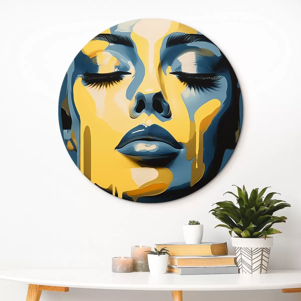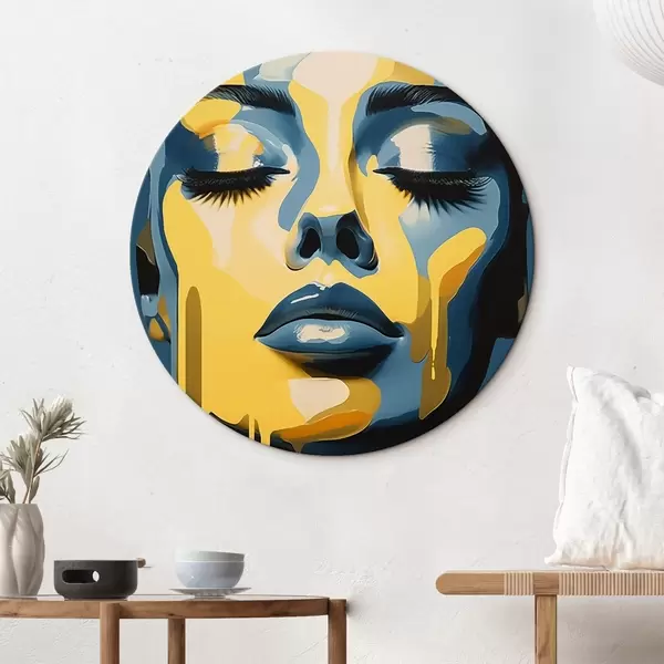 Ronde schilderijen Portret van vrouw met gesloten ogen r45006