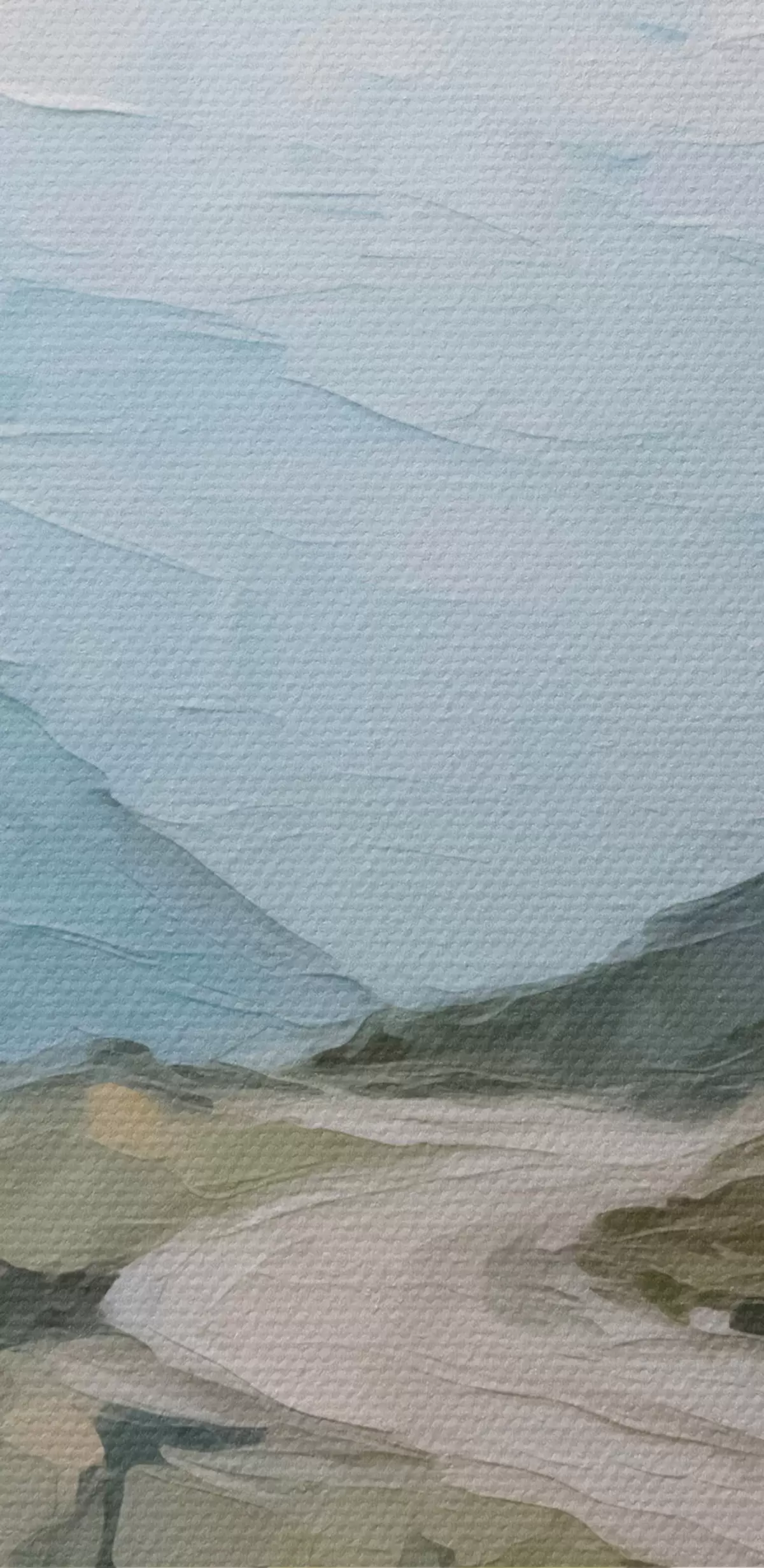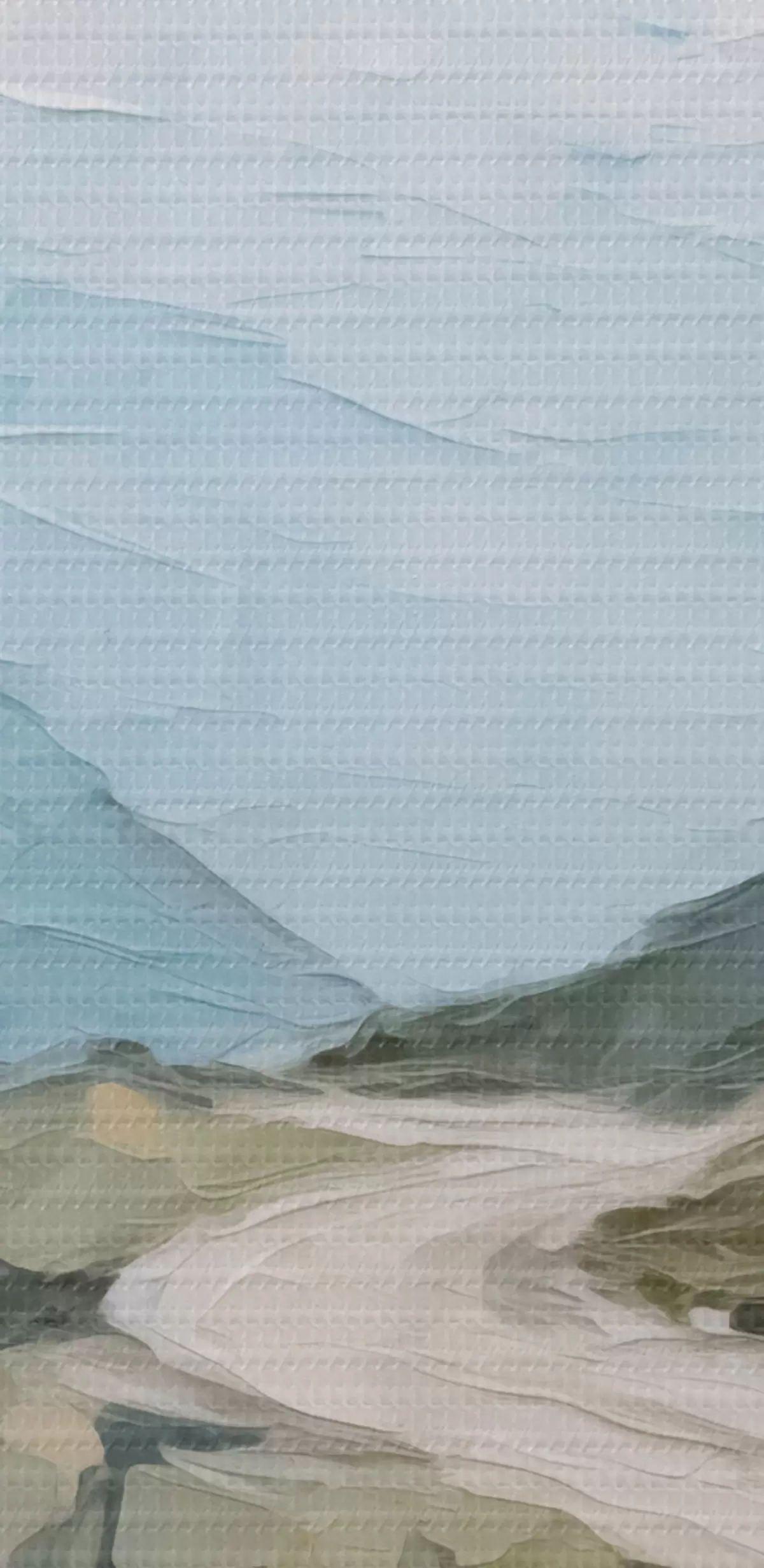 Het schilderij kan direct na ontvangst worden opgehangen. Het schilderij wordt opgespannen op een 2 cm breed houten spieraam.