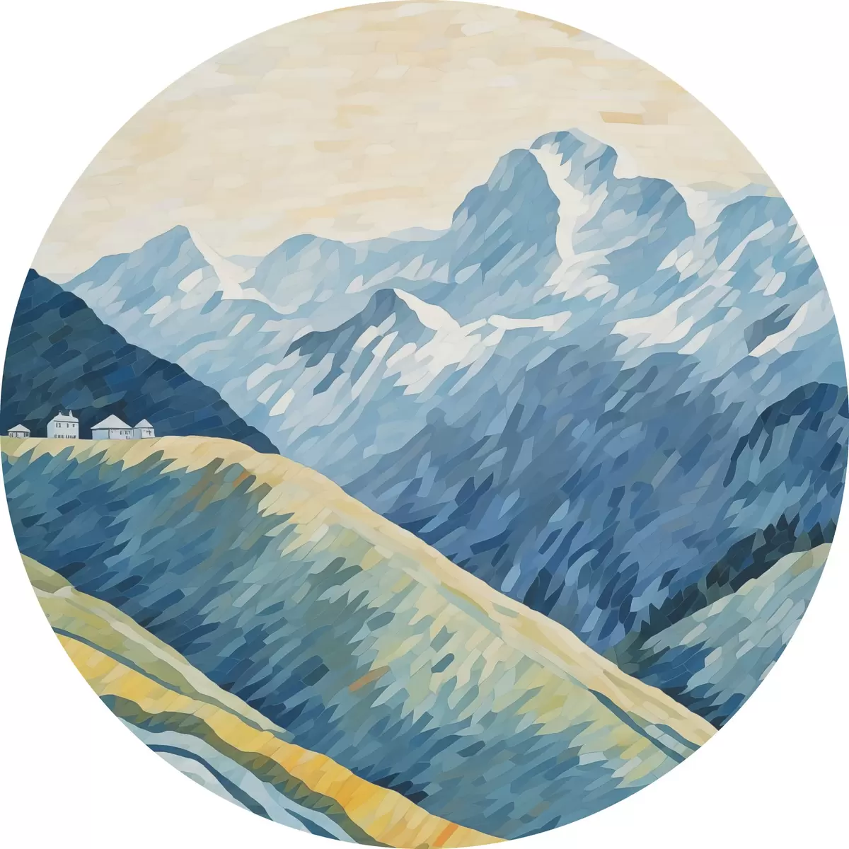 Ronde schilderijen Berglandschap r45027