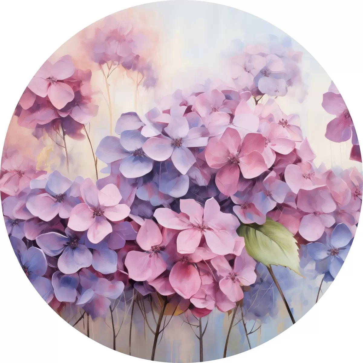 Ronde schilderijen Veld met delicate hortensia's in pasteltinten r45057