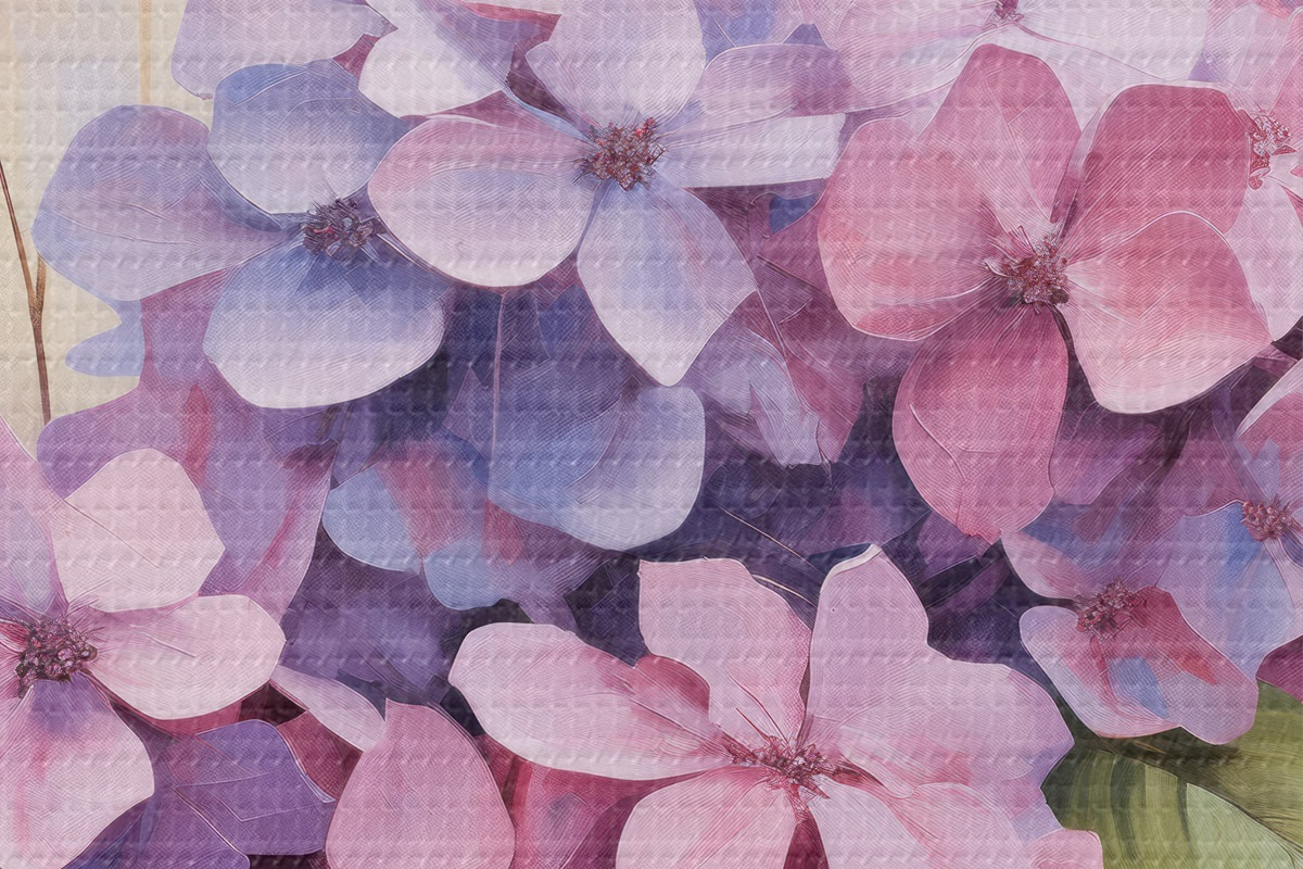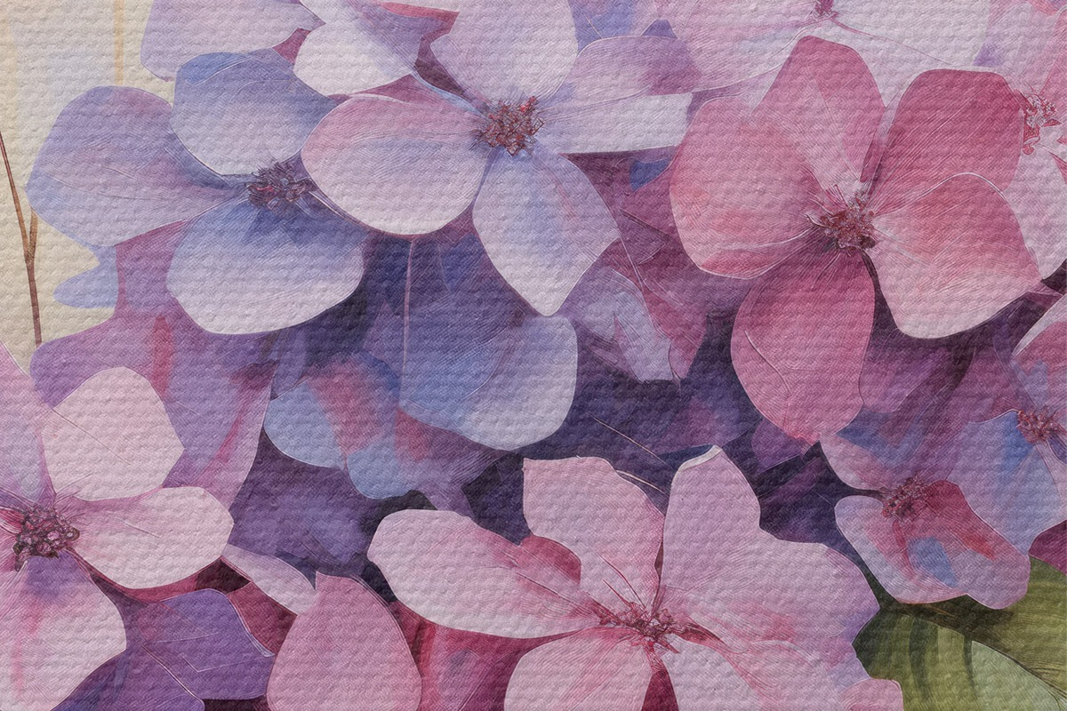Afbeelding Veld met delicate hortensia's in pasteltinten Nr r45057