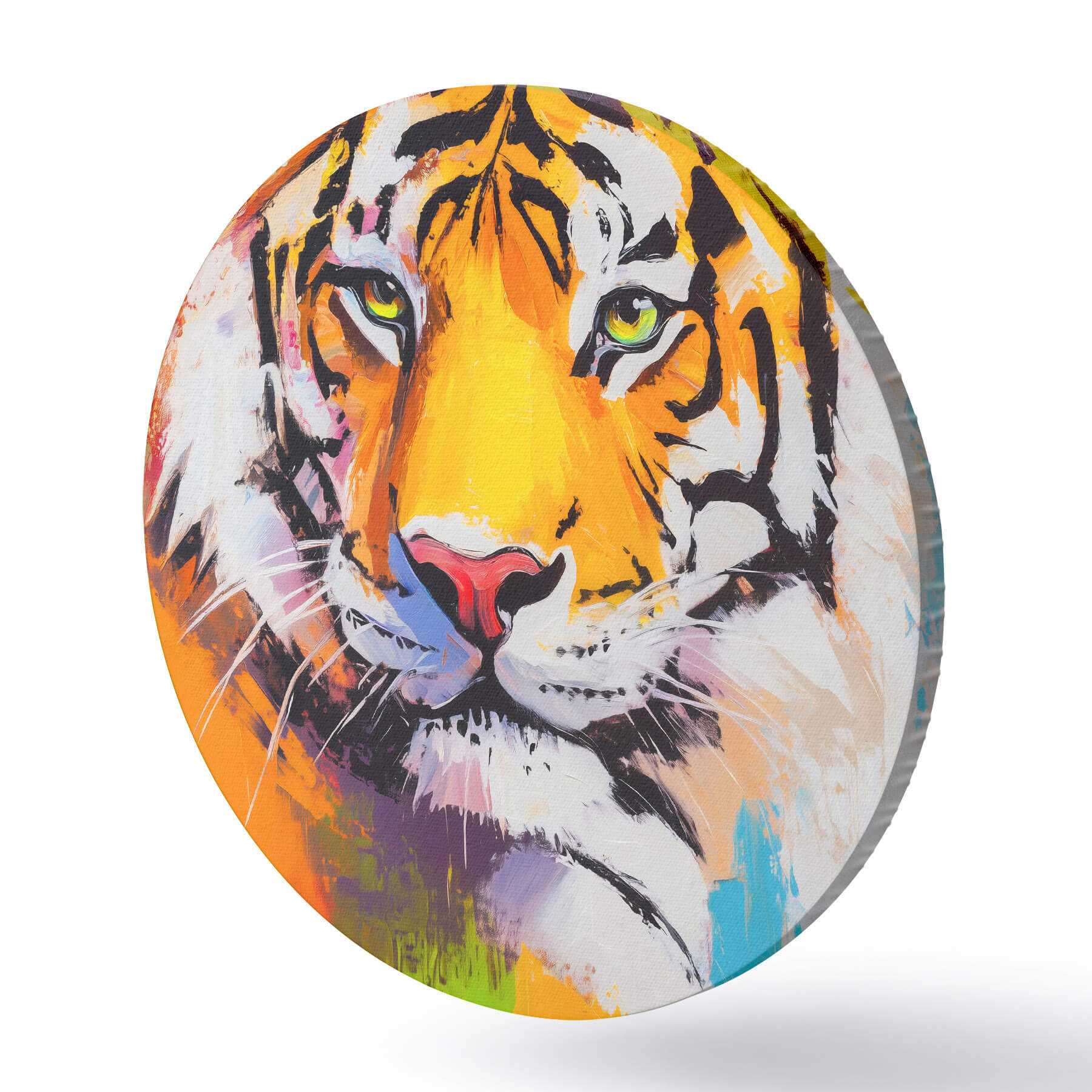 Het schilderij kan direct na ontvangst worden opgehangen. Het schilderij wordt opgespannen op een 2 cm breed houten spieraam.