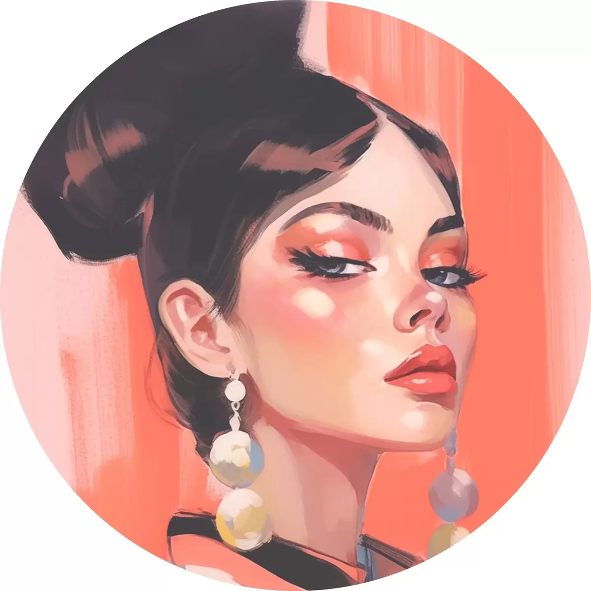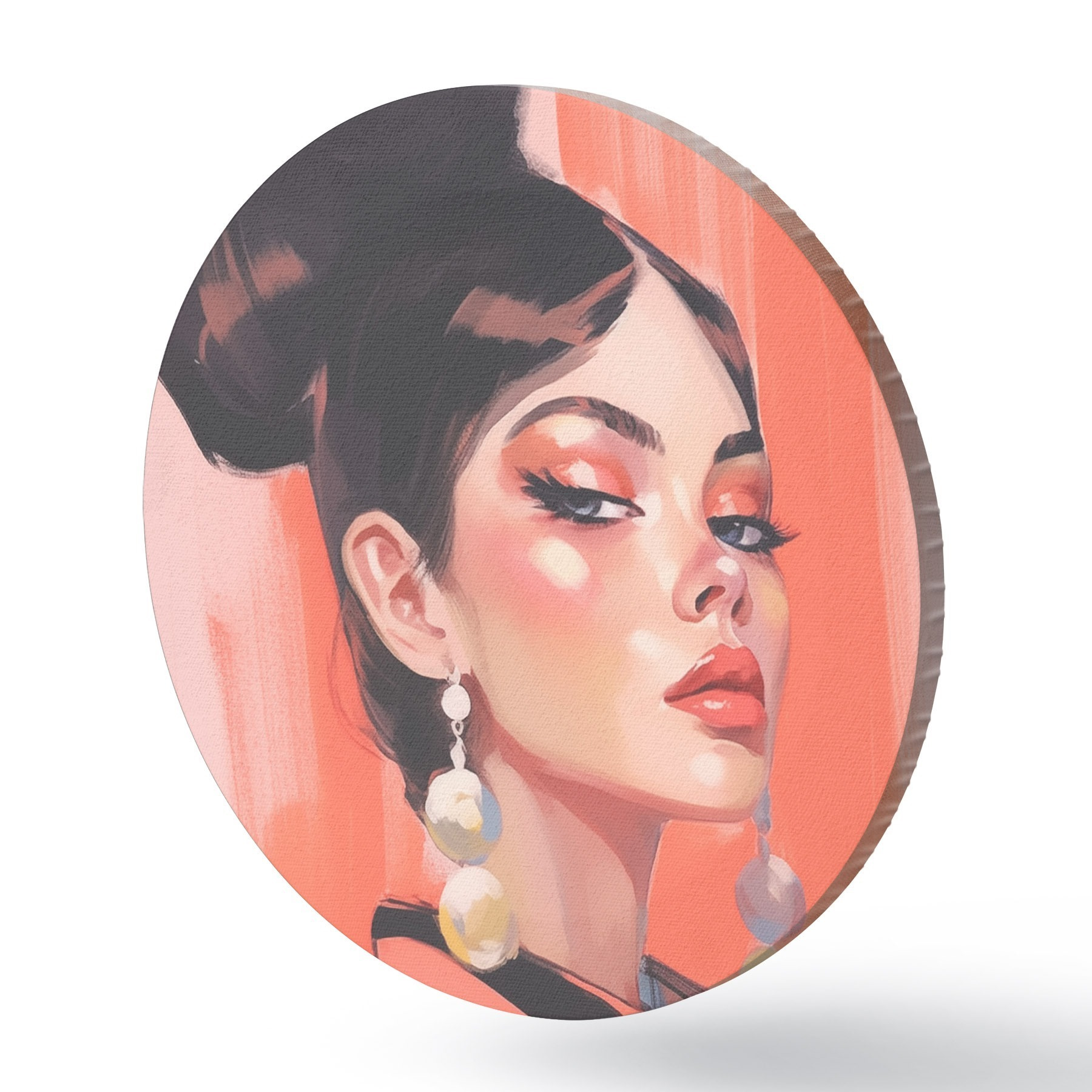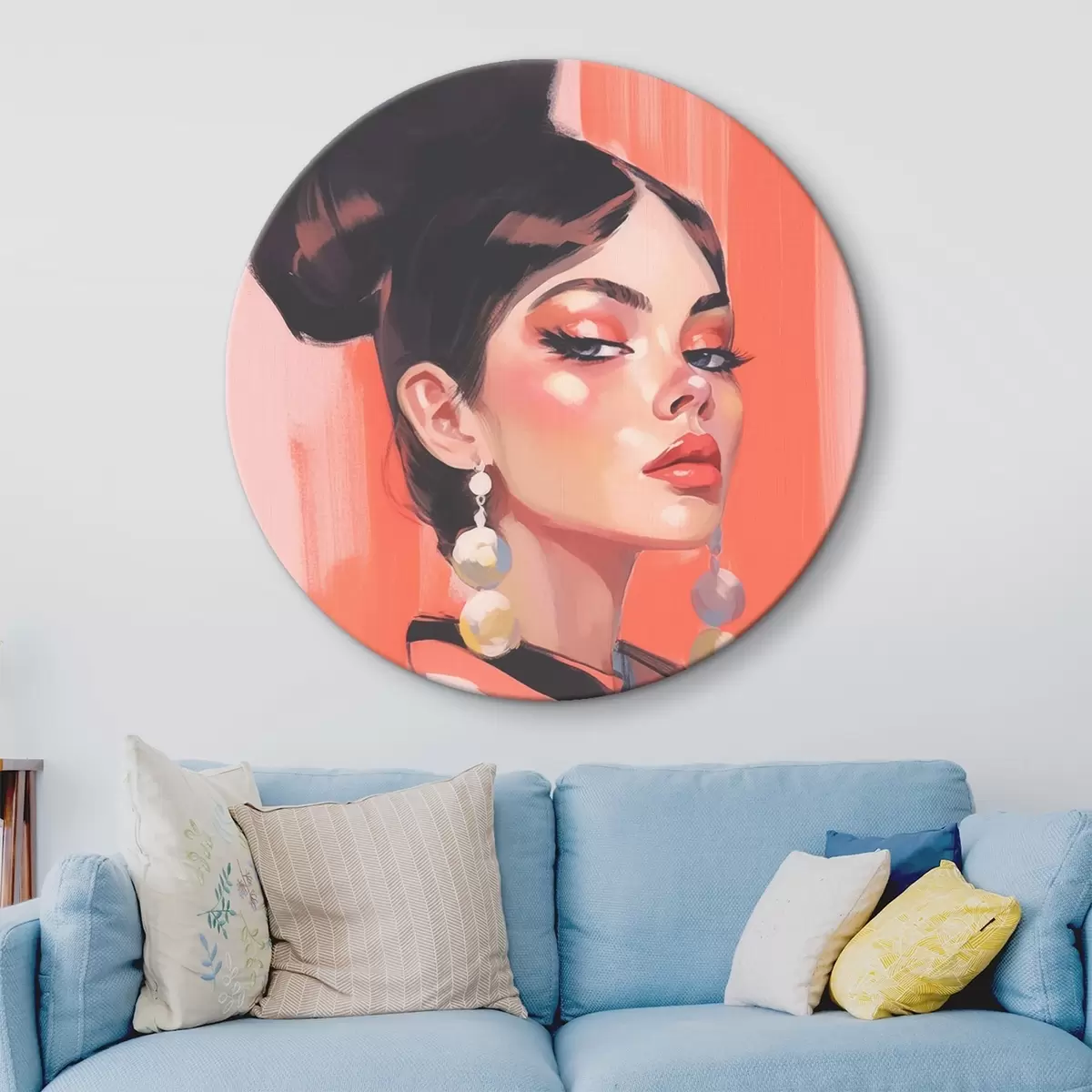 Ronde schilderijen Portret van vrouw in gestreept shirt r45079