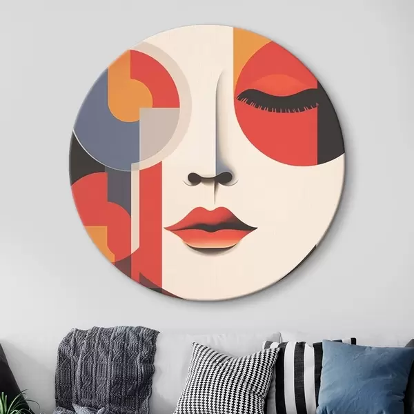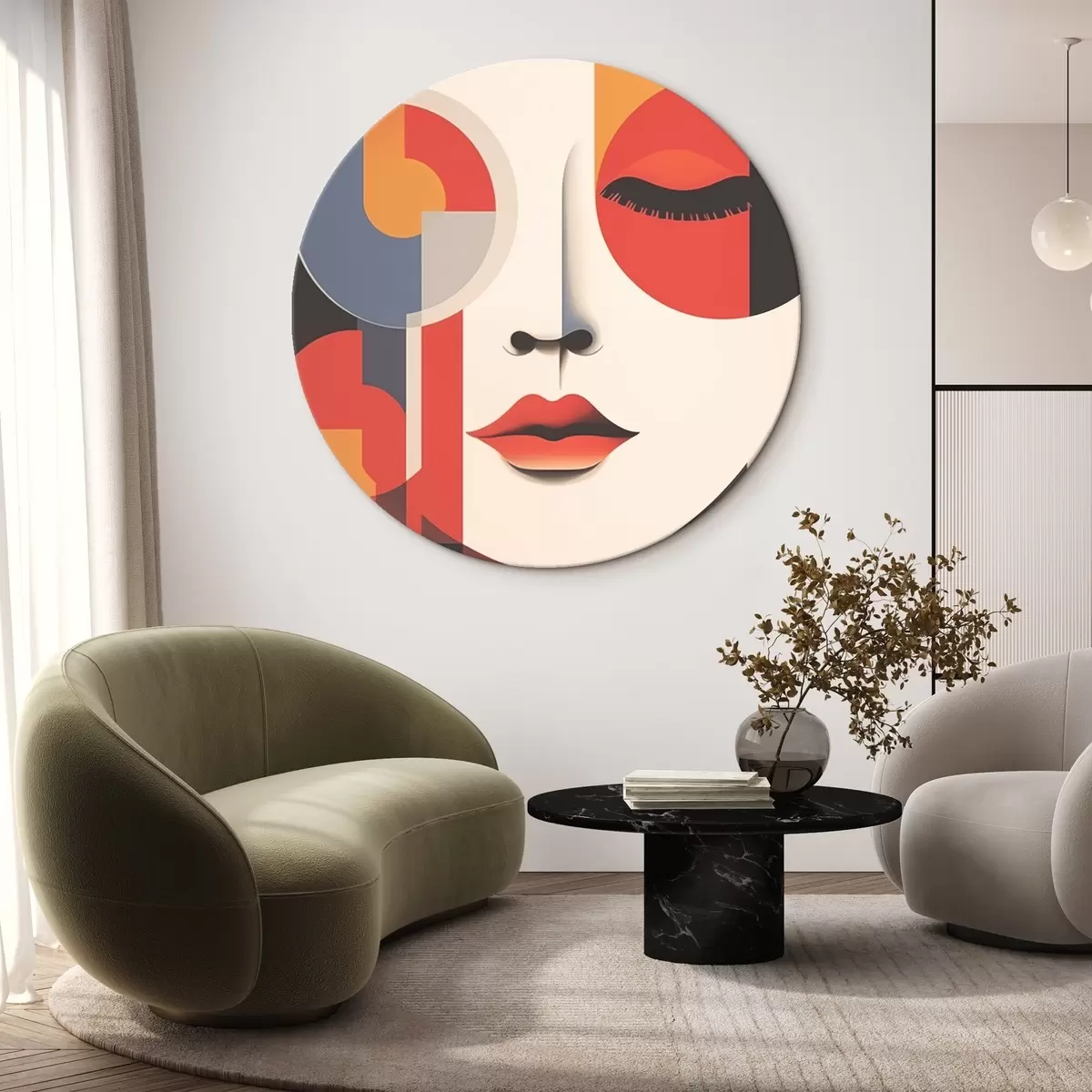 Ronde schilderijen Abstract gezicht in geometrische vormen r45086