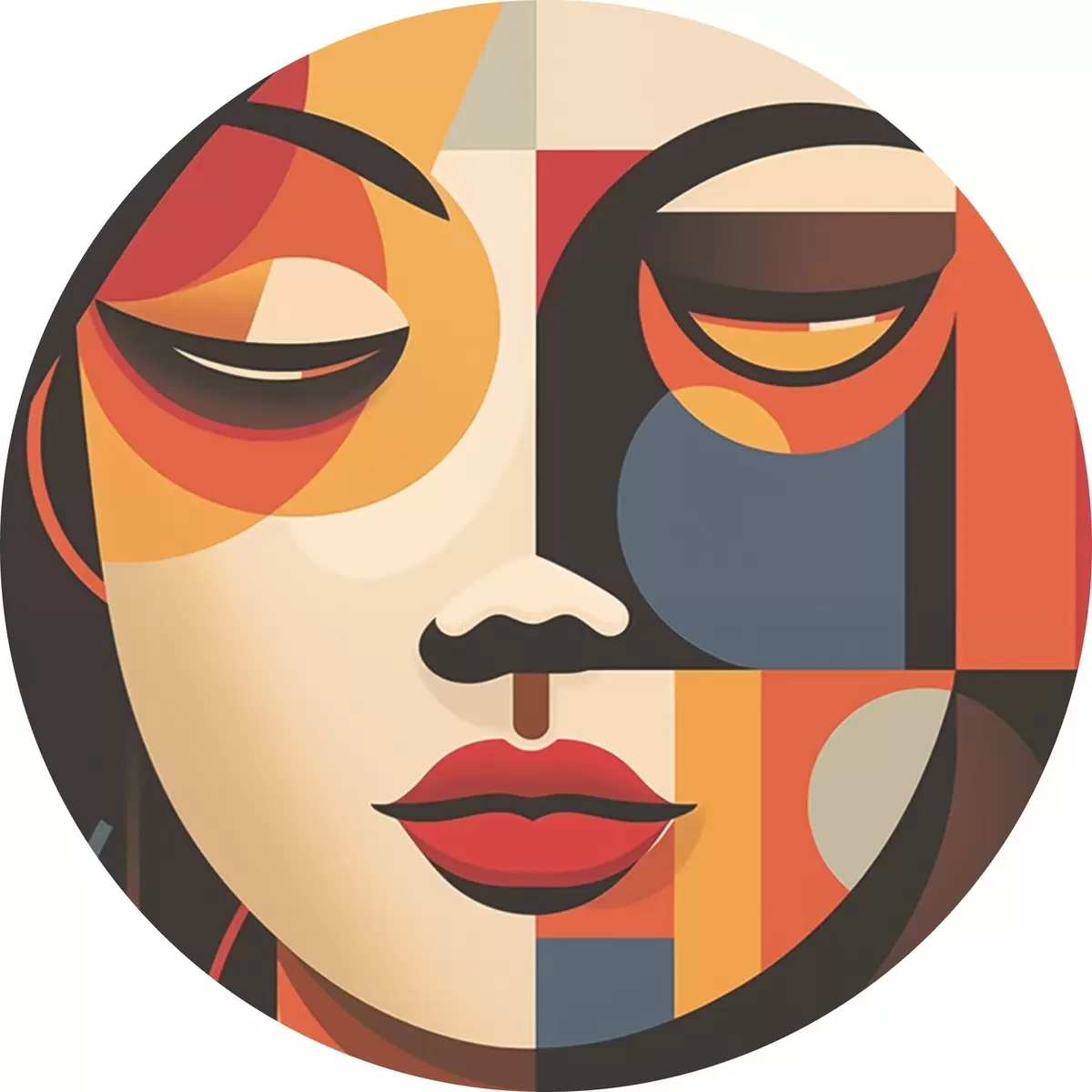 Afbeelding Geometrisch vrouwelijk gezicht in warme kleuren Nr r45087