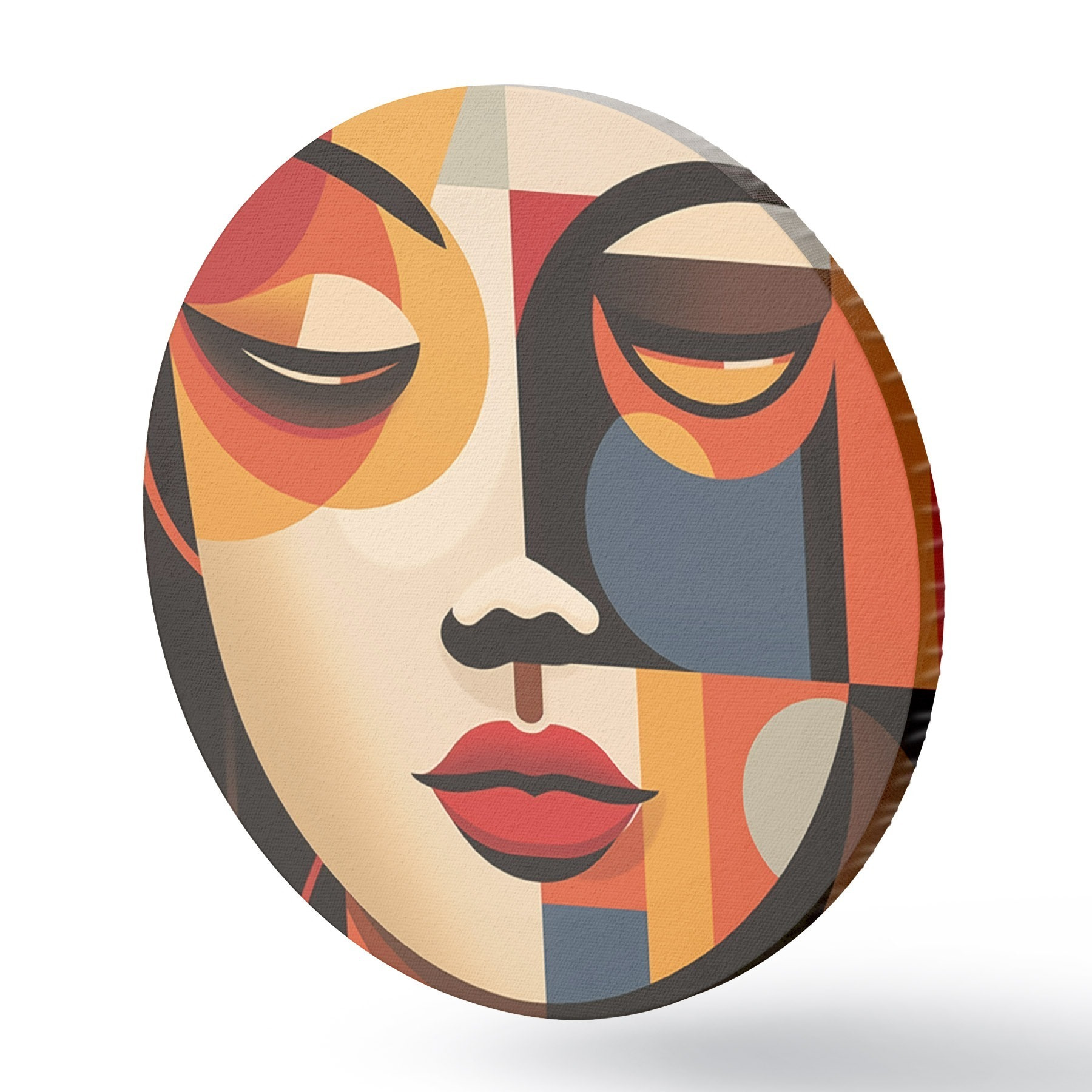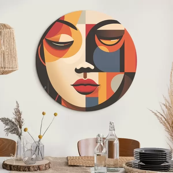 Ronde schilderijen Geometrisch vrouwelijk gezicht in warme kleuren r45087