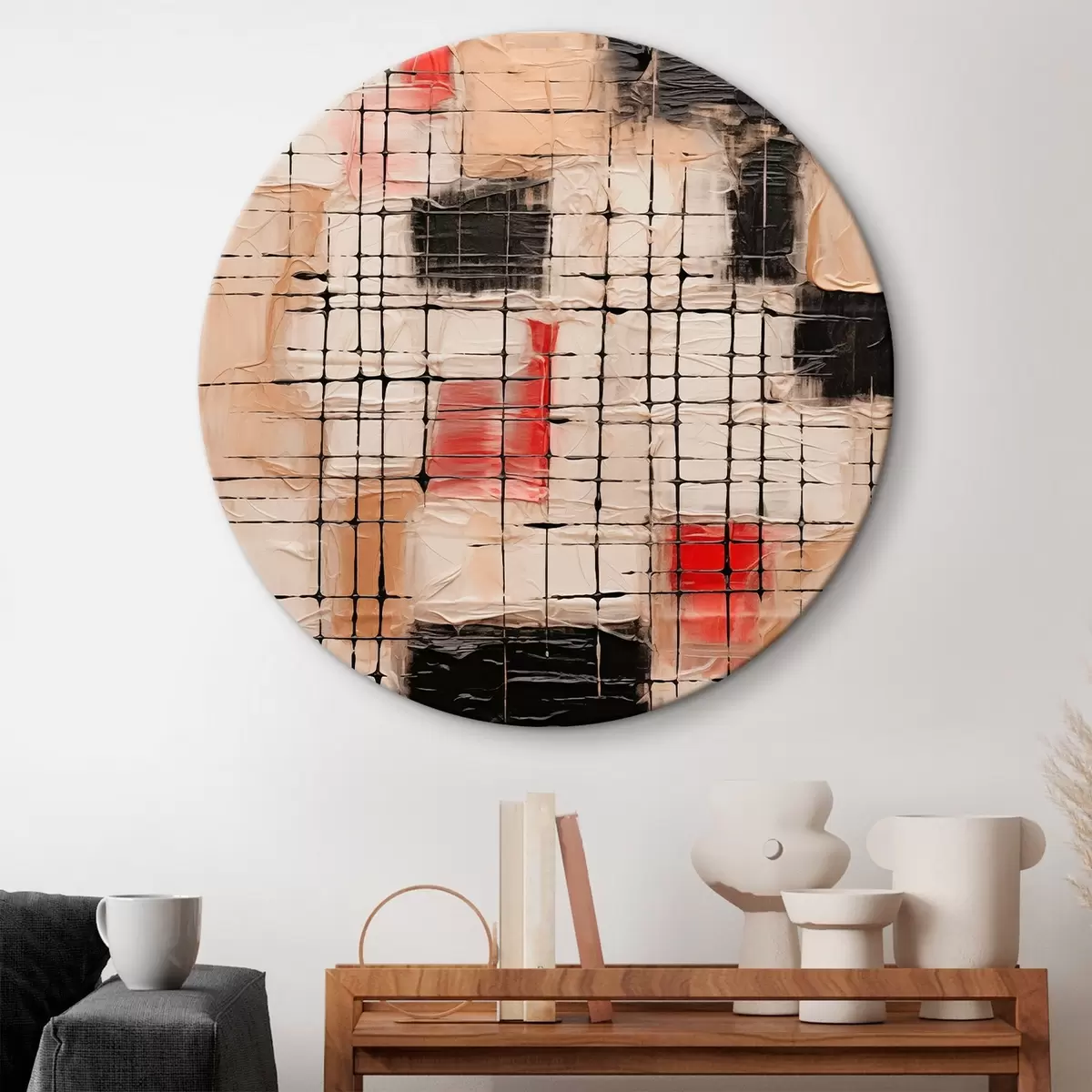 Ronde schilderijen Abstractie met lijnen en imitatie van penseelstreken r45122