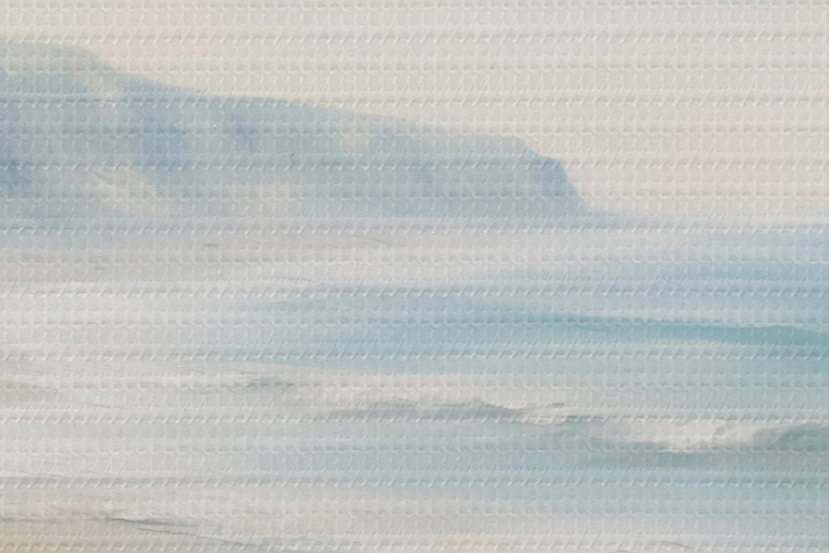 De fijne weving van draden op dit doek lijkt op het oppervlak van professionele schildersdoeken.