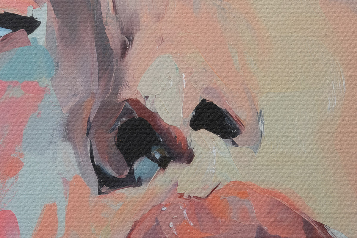 Het schilderij kan direct na ontvangst worden opgehangen. Het schilderij wordt opgespannen op een 2 cm breed houten spieraam.