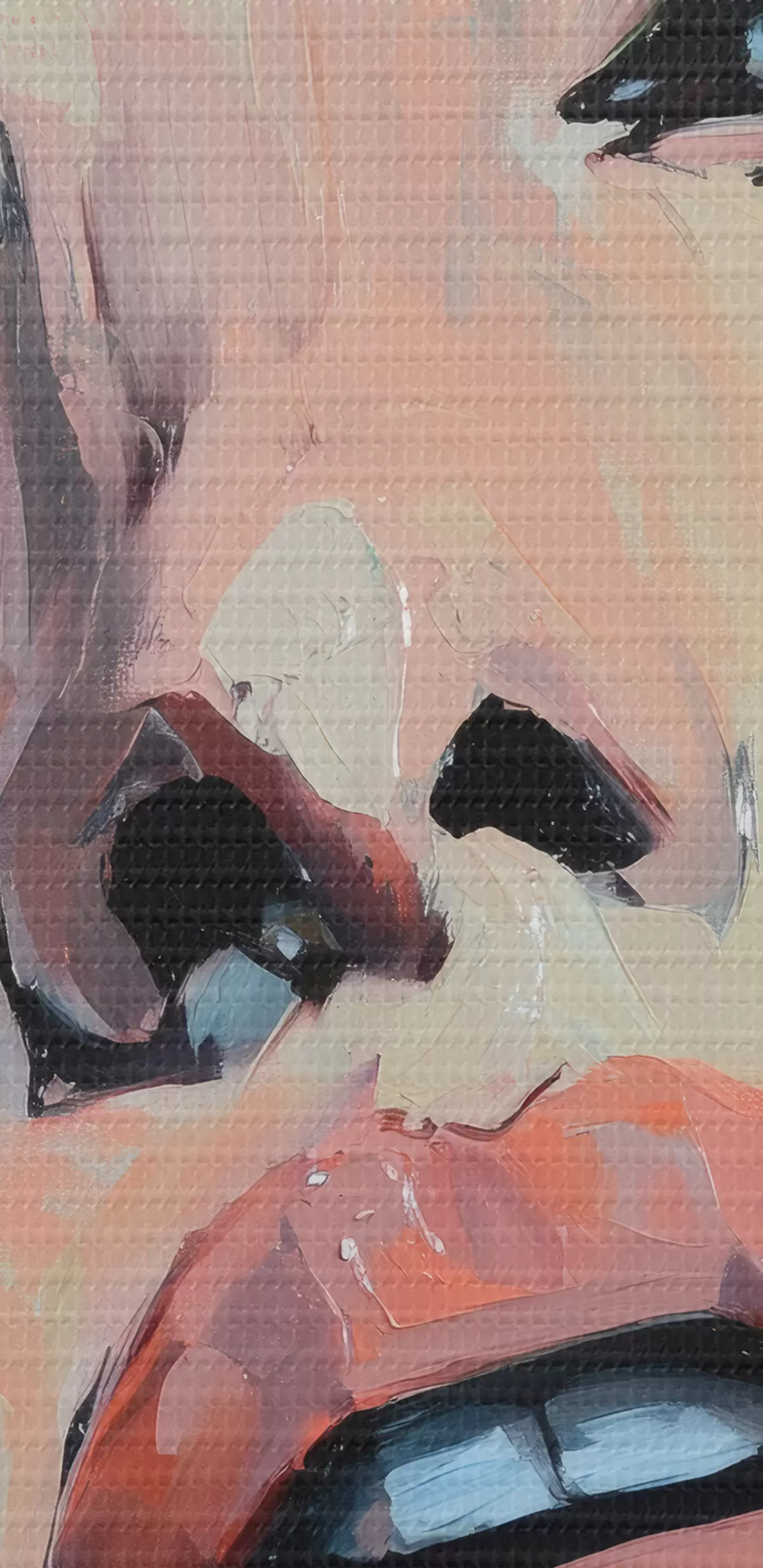 De fijne weving van draden op dit doek lijkt op het oppervlak van professionele schildersdoeken.