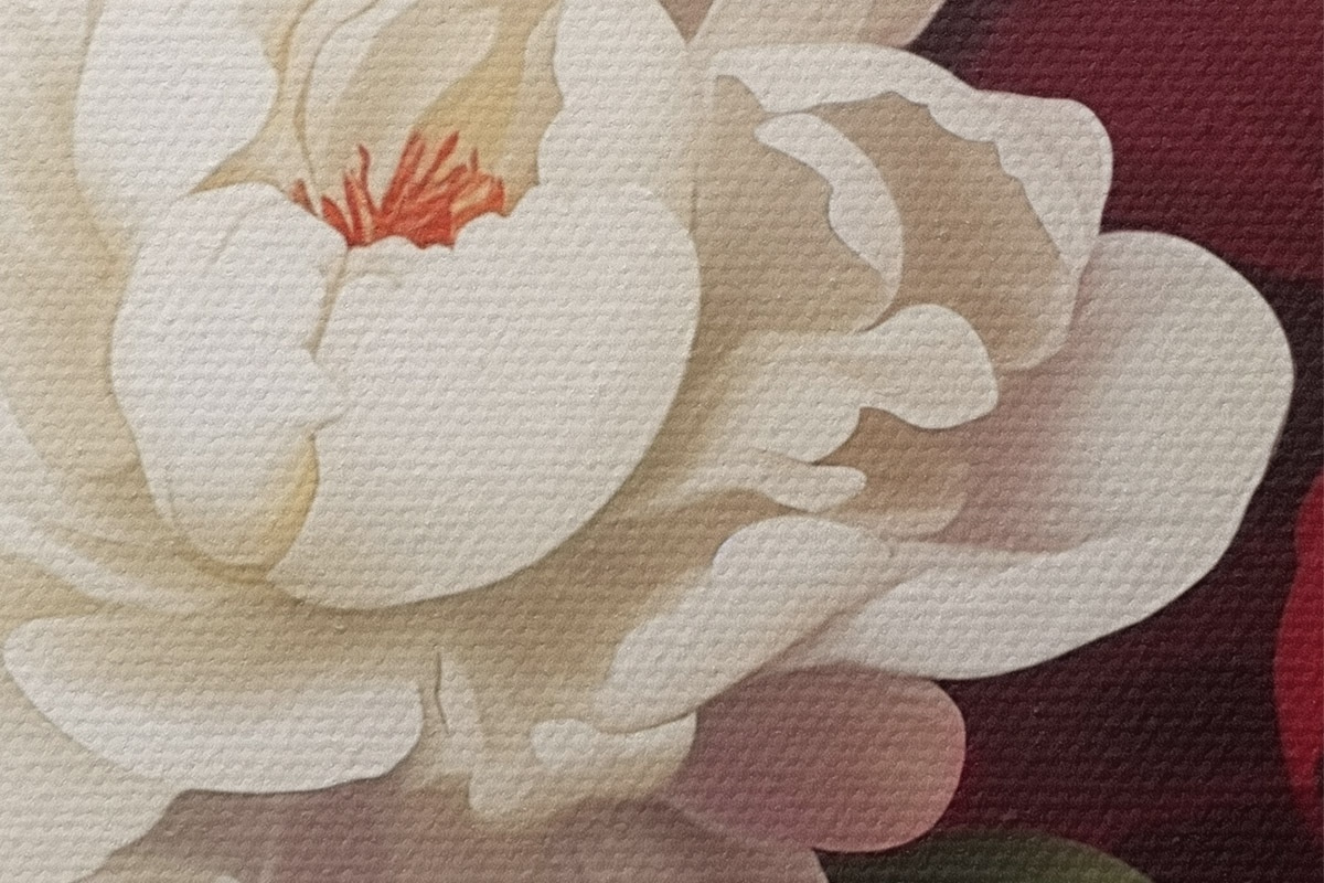 Er zijn drie soorten materiaal te bestellen: Economic Canvas - een dicht en duurzaam materiaal voor digitaal printen, identiek aan schildersdoek, waterdicht oppervlak, realistische weergave van details, materiaal met gemiddelde korrel. Premium Canvas - de textuur lijkt op die van schildersdoek (verweven kleine draden). Zachte, gedetailleerde reproductie van de afbeelding op een mat oppervlak. Eco-Premium - hoogwaardige 100% katoenen stof. Dankzij de natuurlijke katoenvezels is het materiaal duurzaam en slijtvast. Uitstekende kleurweergave en detail.